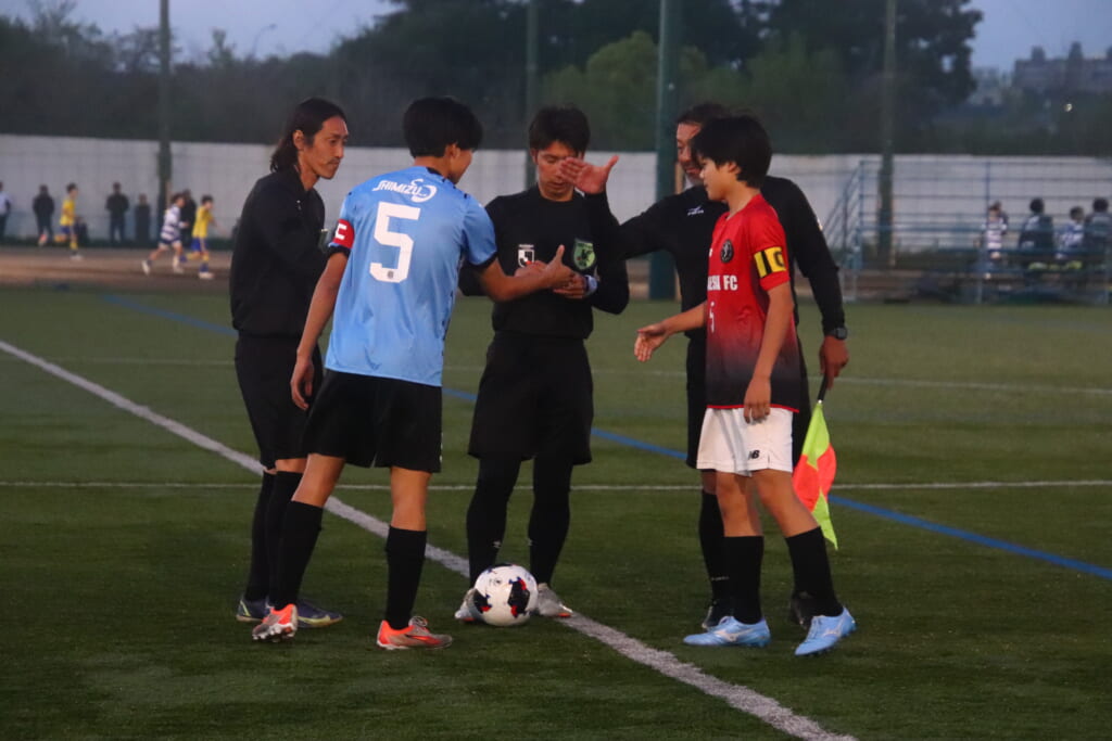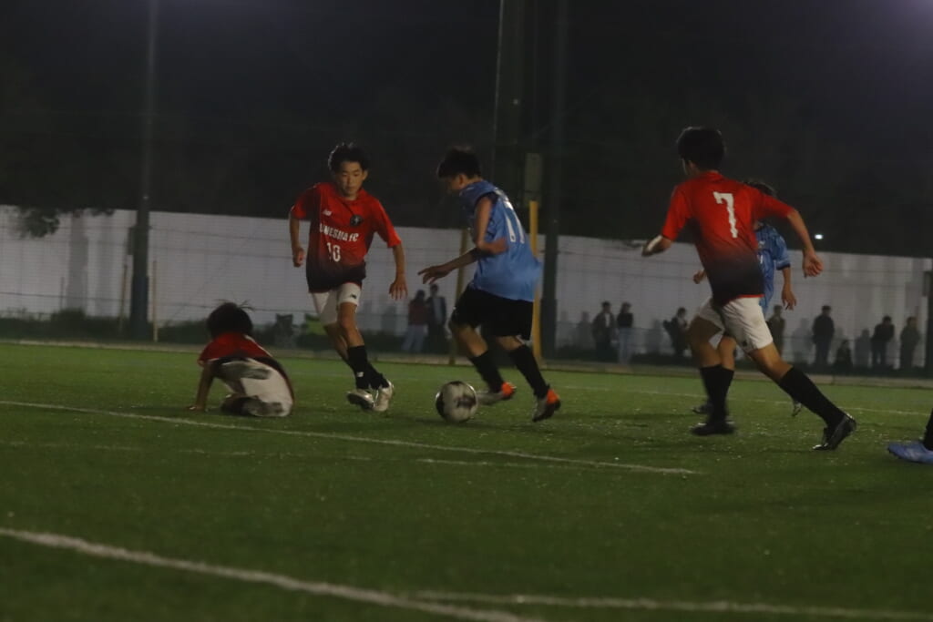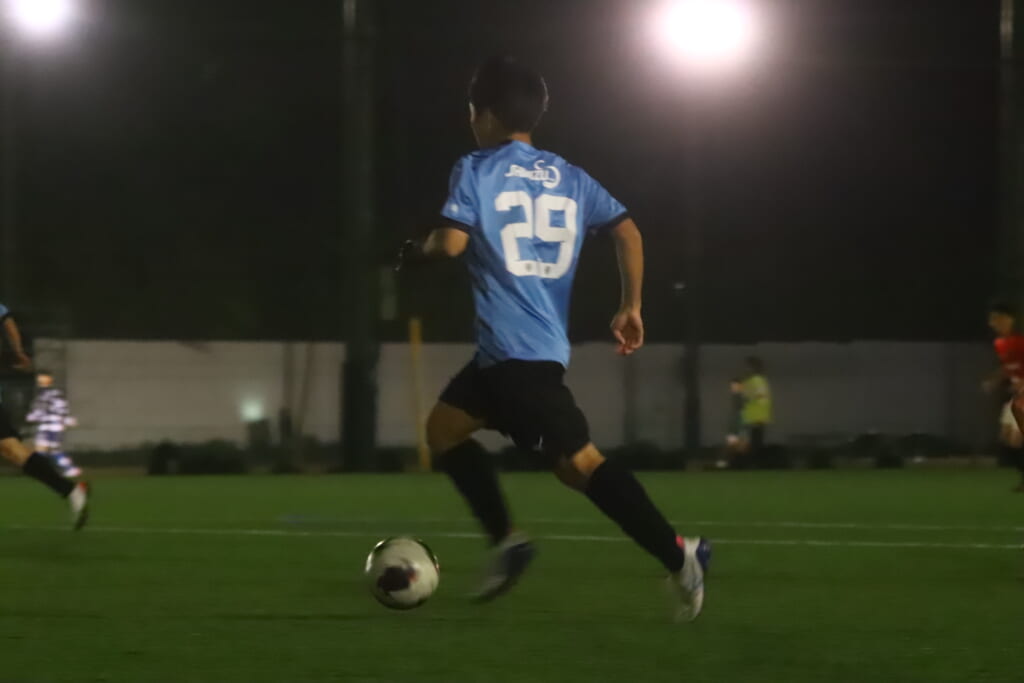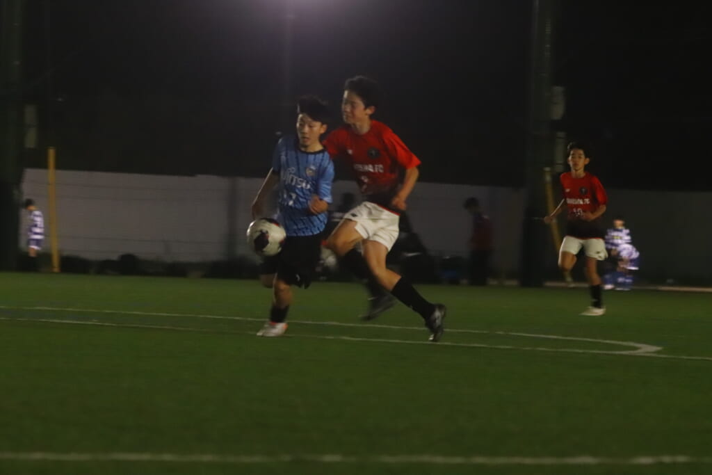 夜のとばりが落ちつつある等々力第一サッカー場。両チームの選手の家族らが見守る中、キックオフの時を迎えました。