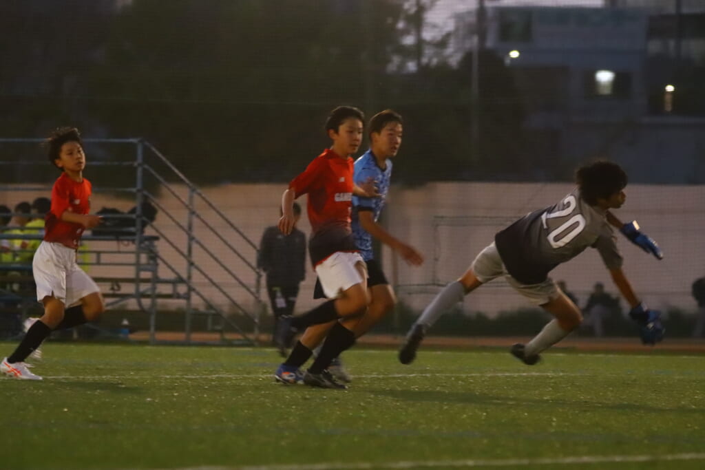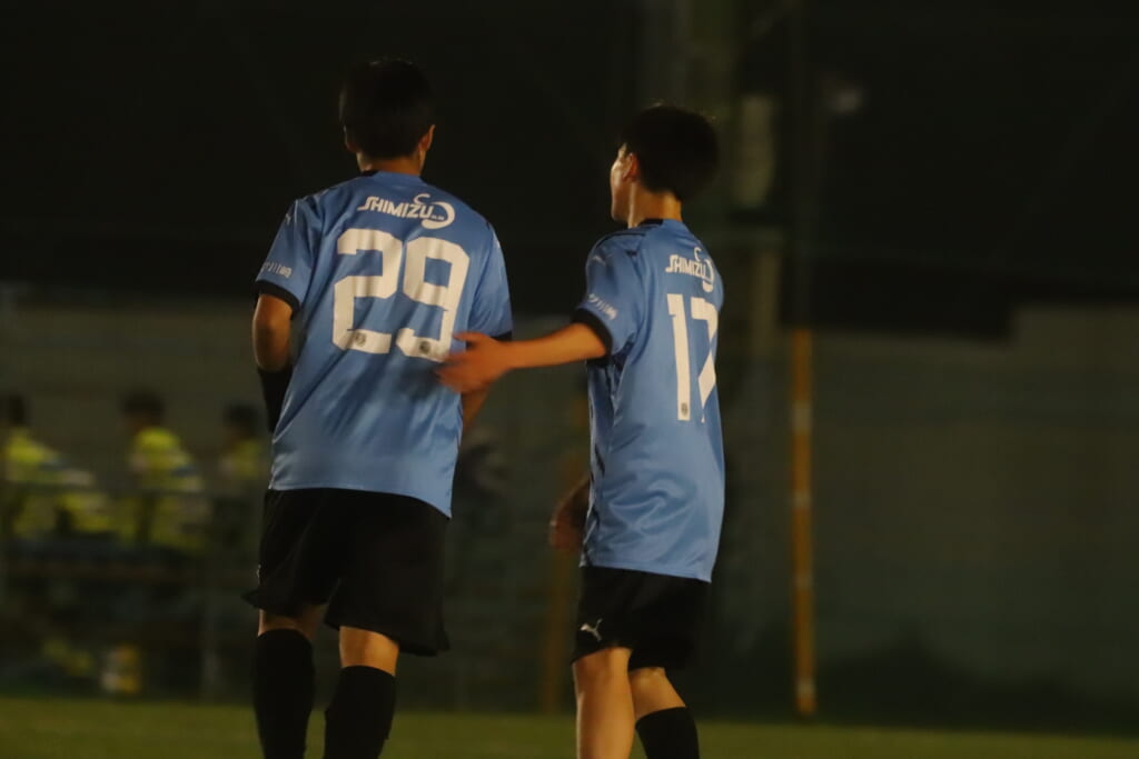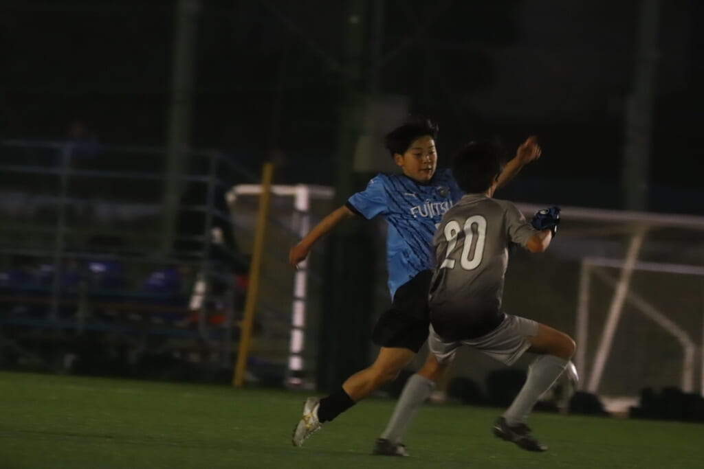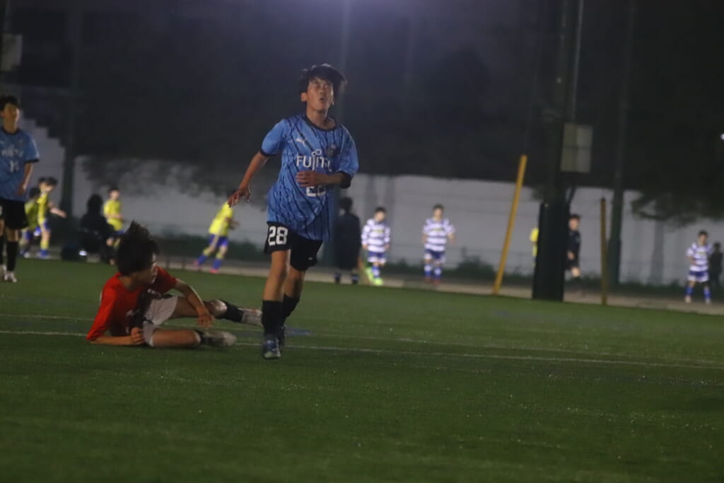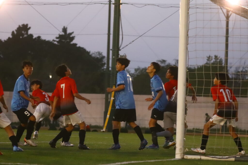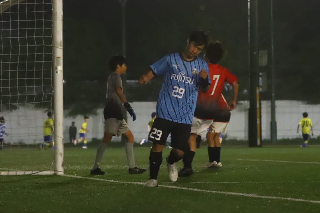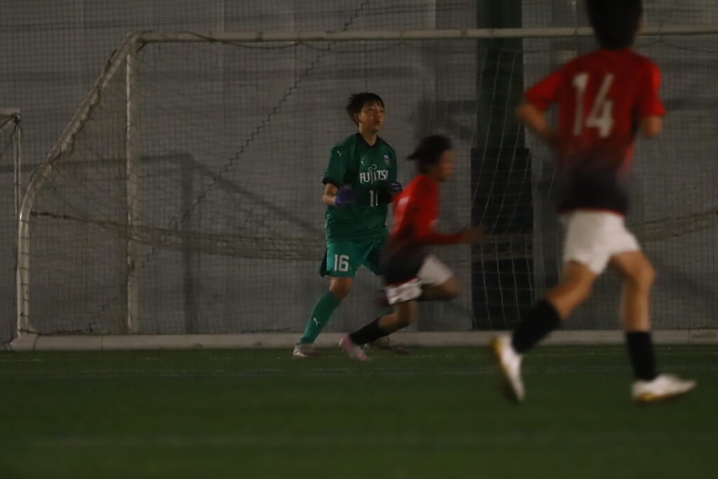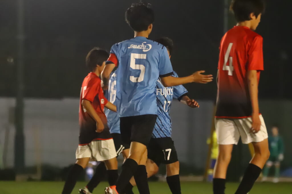 西川が折り返すと正面でシュートを打ったのは荻原。これが決まり、4-0。フロンターレ等々力がさらに追加点を挙げます。