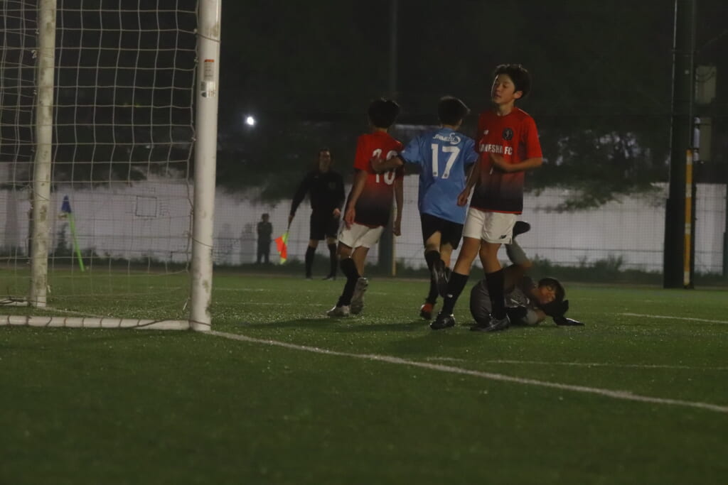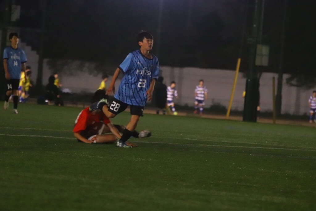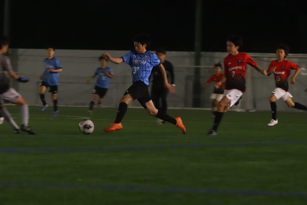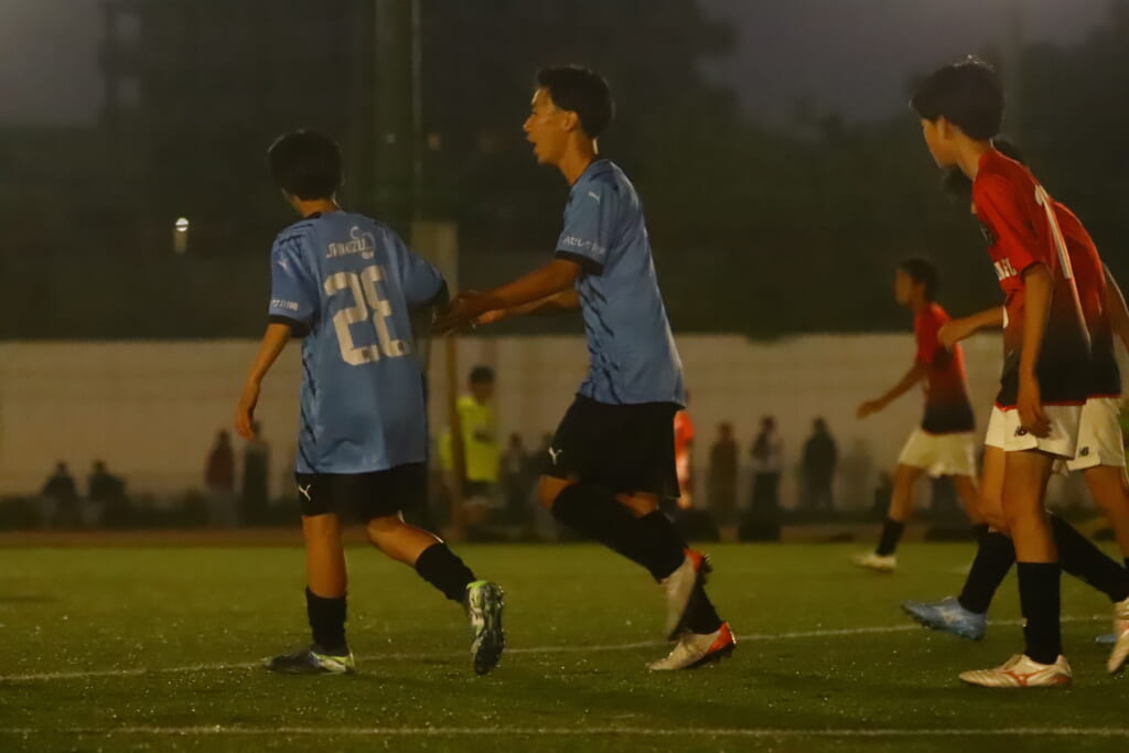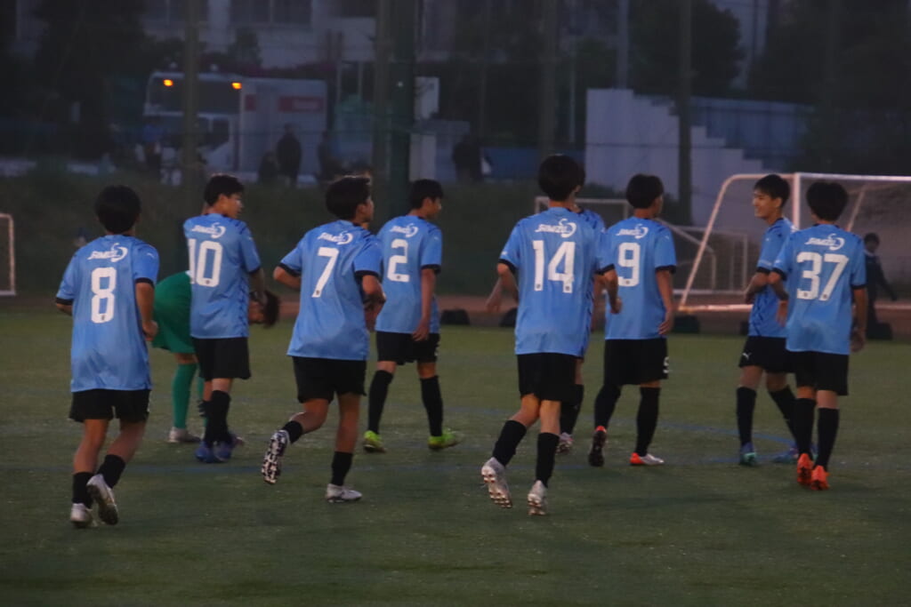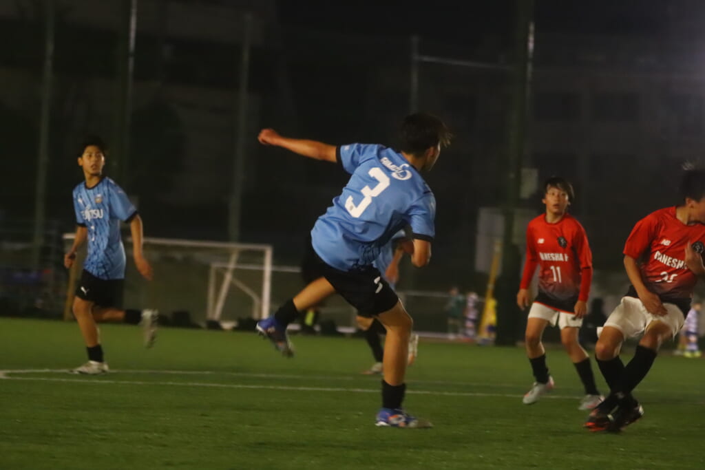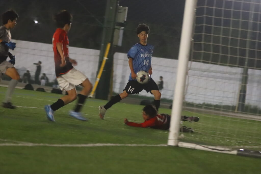西川が折り返すと正面でシュートを打ったのは荻原。これが決まり、4-0。フロンターレ等々力がさらに追加点を挙げます。