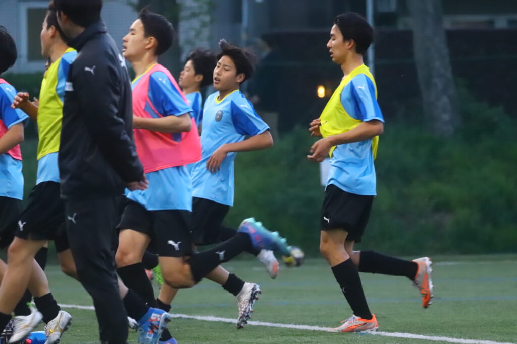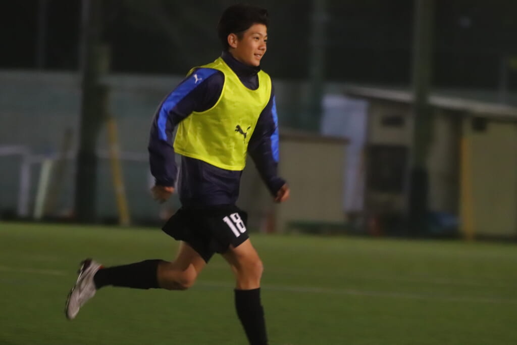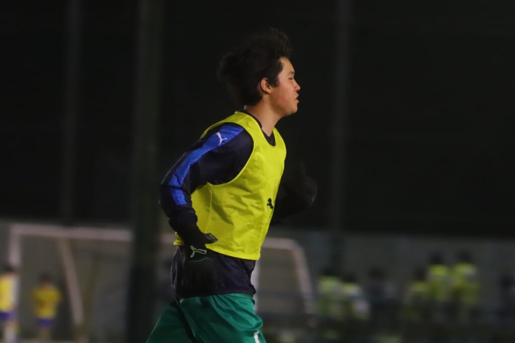 先発はGK20吉元皐太、最終ラインは右から14小林竜之介、7山本晃大、キャプテンの5大庭謙仁、10小見山嘉人、ボランチは9高浜遥輝、15赤岩亮汰、右MF3森陽翔、左MF23渡辺善樹、前線には28半田尚大、11加藤楓。