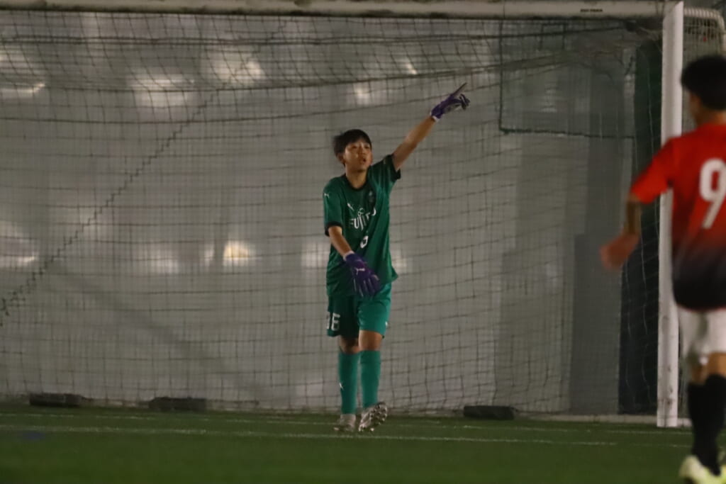 2分には、再び左サイド、永田のパスに荻原が正面へ。いい飛び出しを見せますが、GK吉元が前に出て阻む好守。