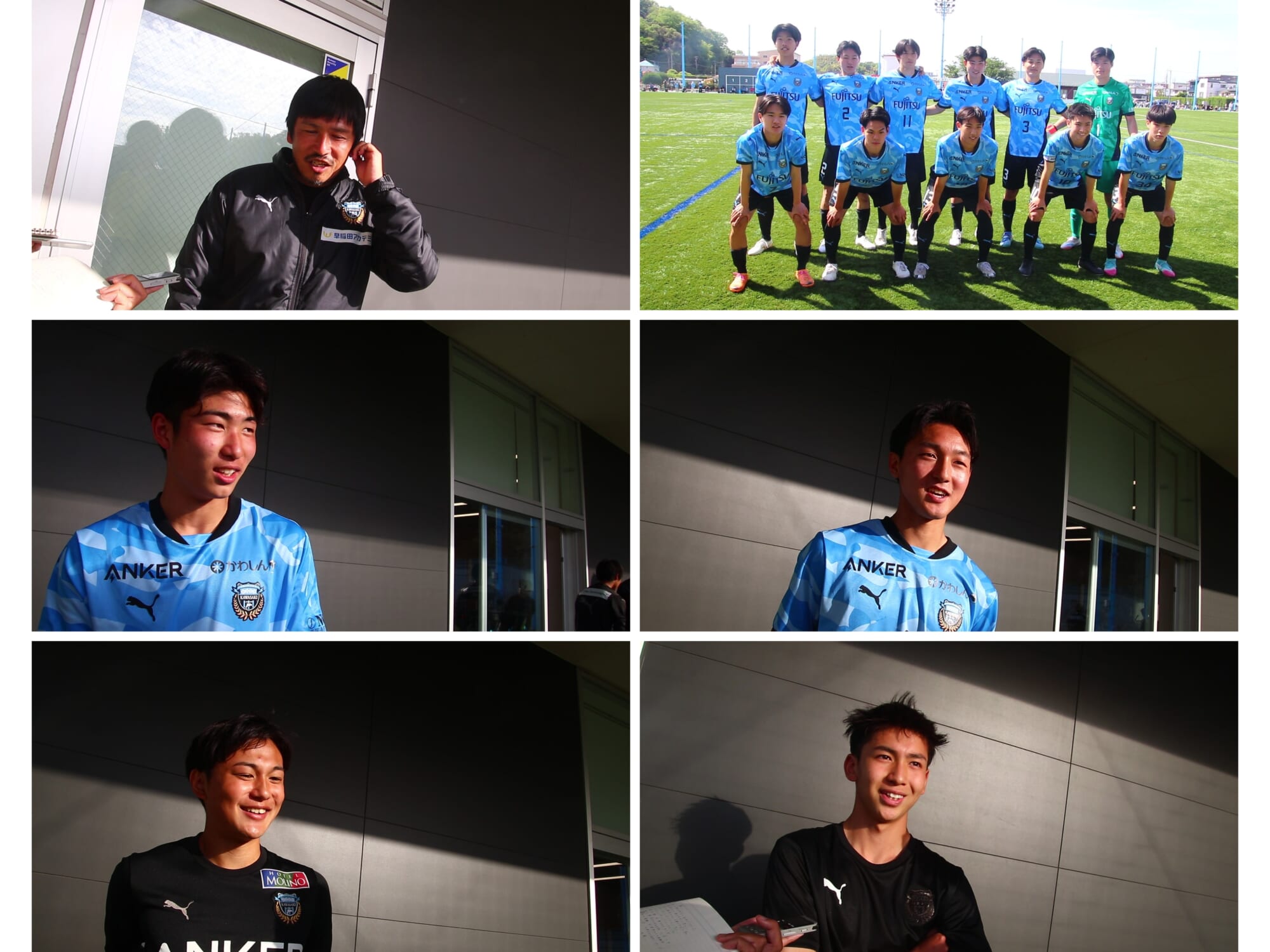 4月18日、Anker フロンタウン生田で行われたプレミアリーグEAST第3節、昌平高校に3-1、今季初勝利を挙げた川崎フロンターレU-18。試合後に森勇介監督、2点にかかわる活躍を見せたMF8小川尋斗、勝ち越しゴールを決めたDF2山川陽平、3点目のゴールを決めたDF3藤田明日翔、同点ゴールを決めたキャプテンのMF10木下勝正に話を聞きました。