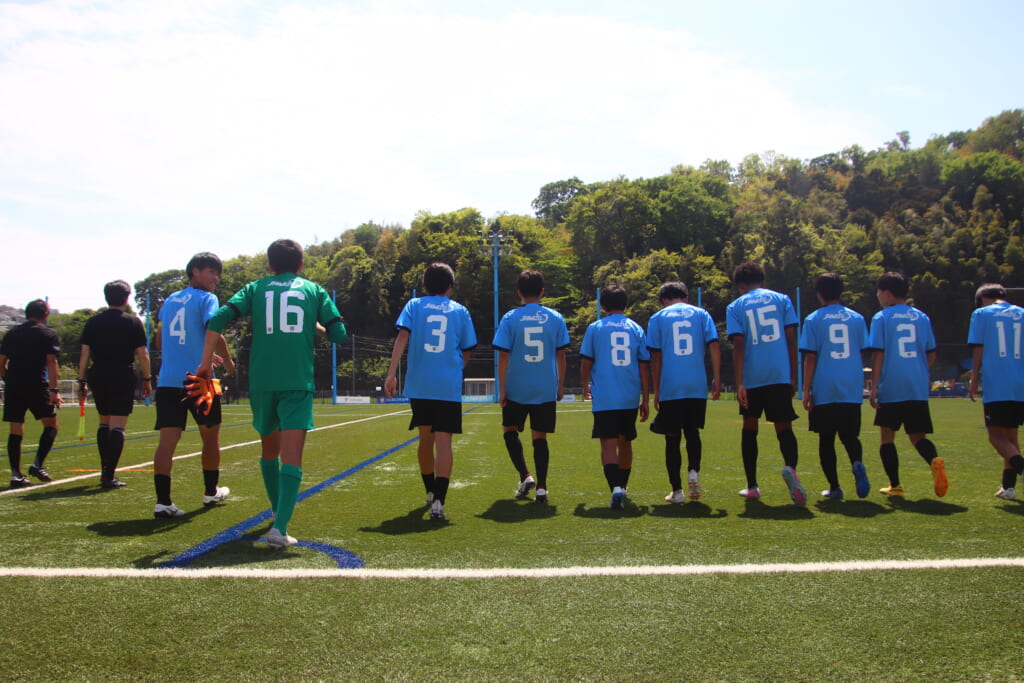 先発は、GK18平野陽太、最終ラインは右から4澤木真幸、15洪潤悟、キャプテンの3田中孝之介、右に23北里成琉、左に14佐野翔和、中盤は19井本泰幹、8細井斗眞、7井上斗蘭、前線には10北嶋太一、13大沢湊生。