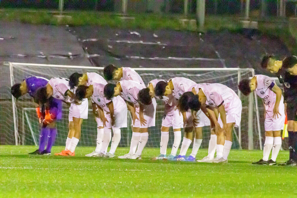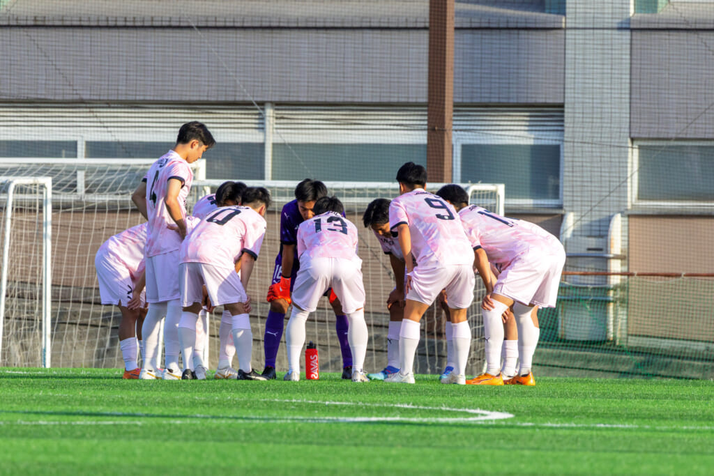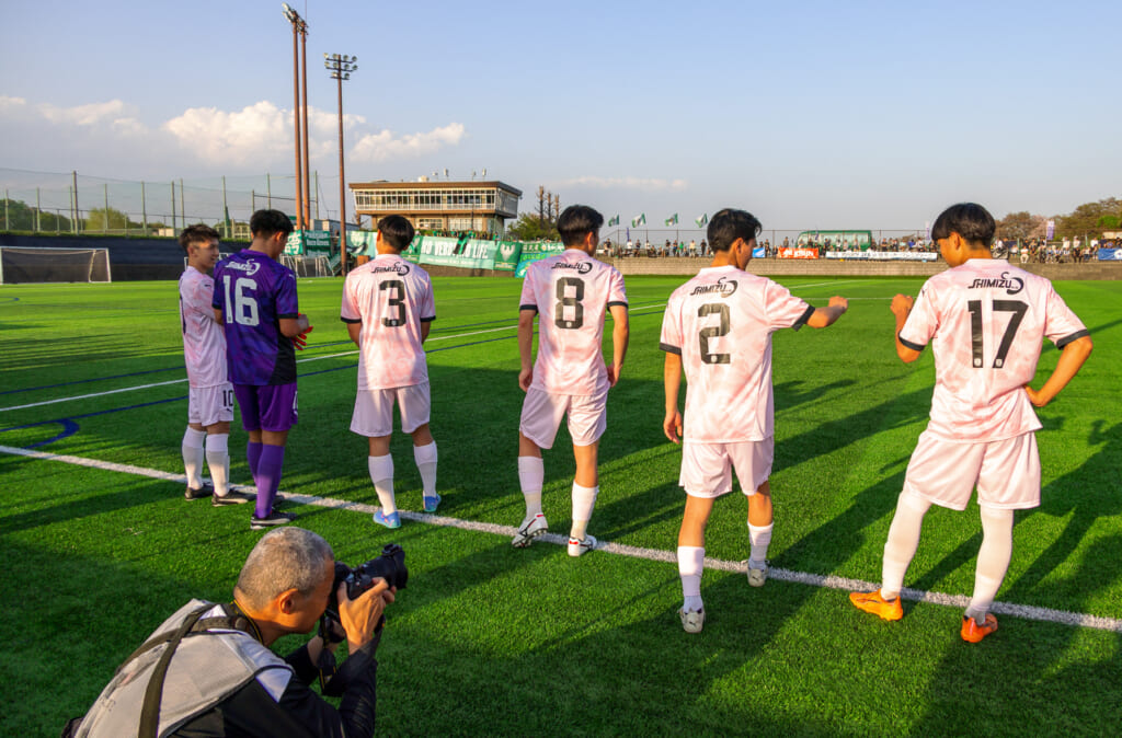 試合開始前の集合写真。掛け声は長崎亘佑選手。