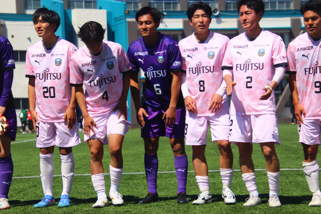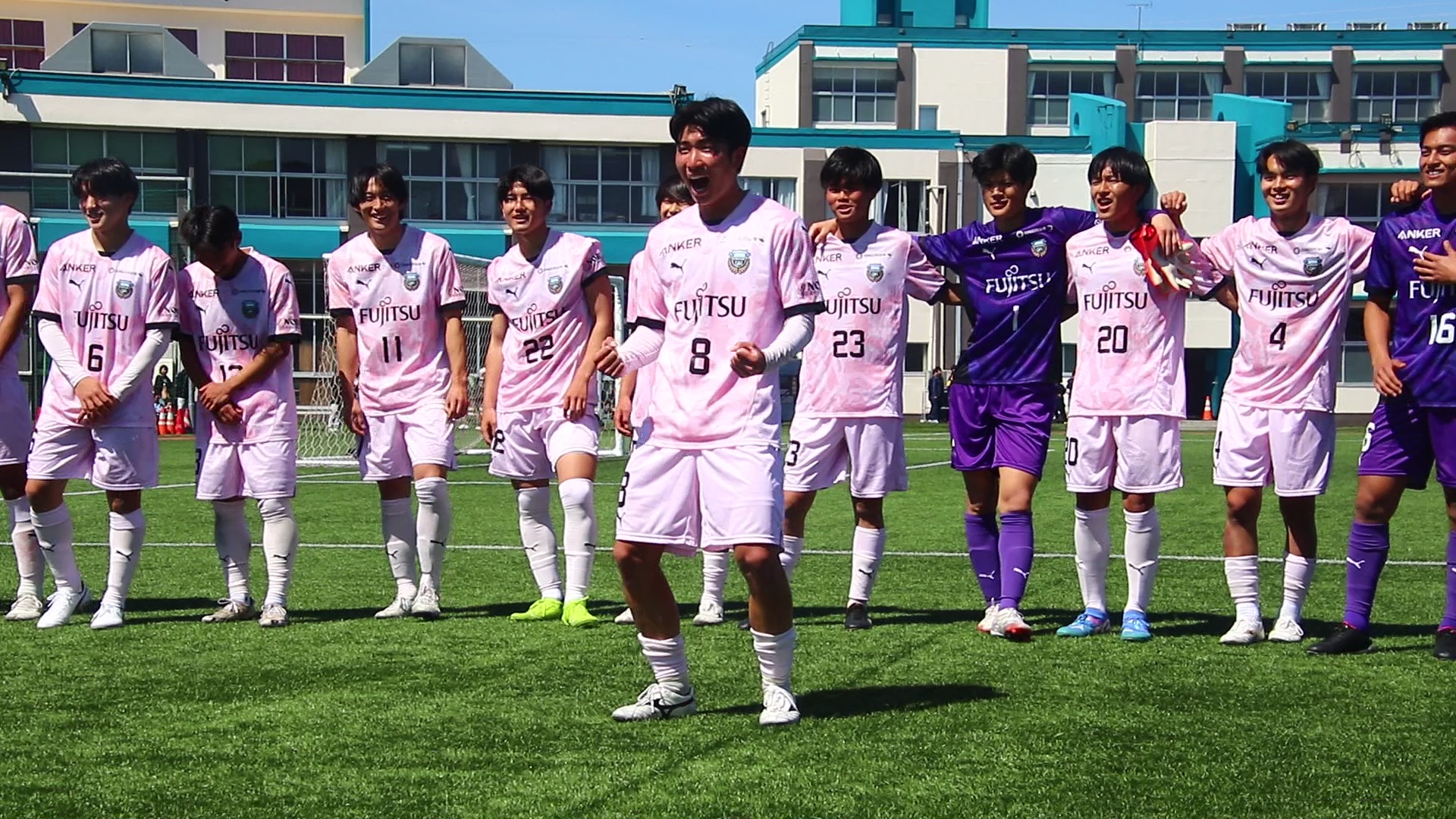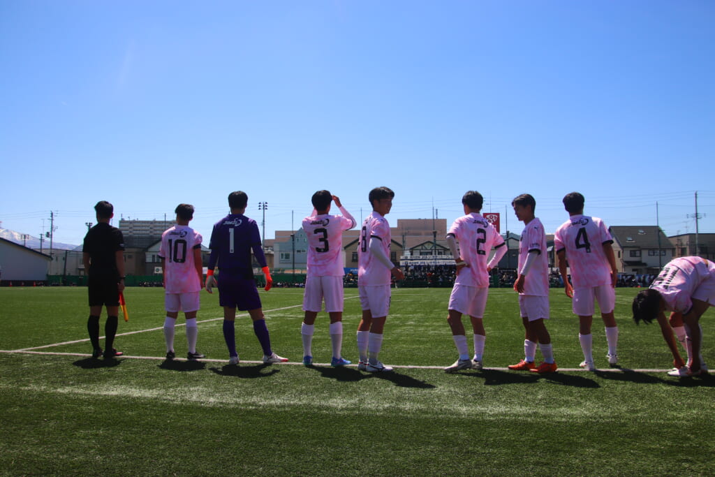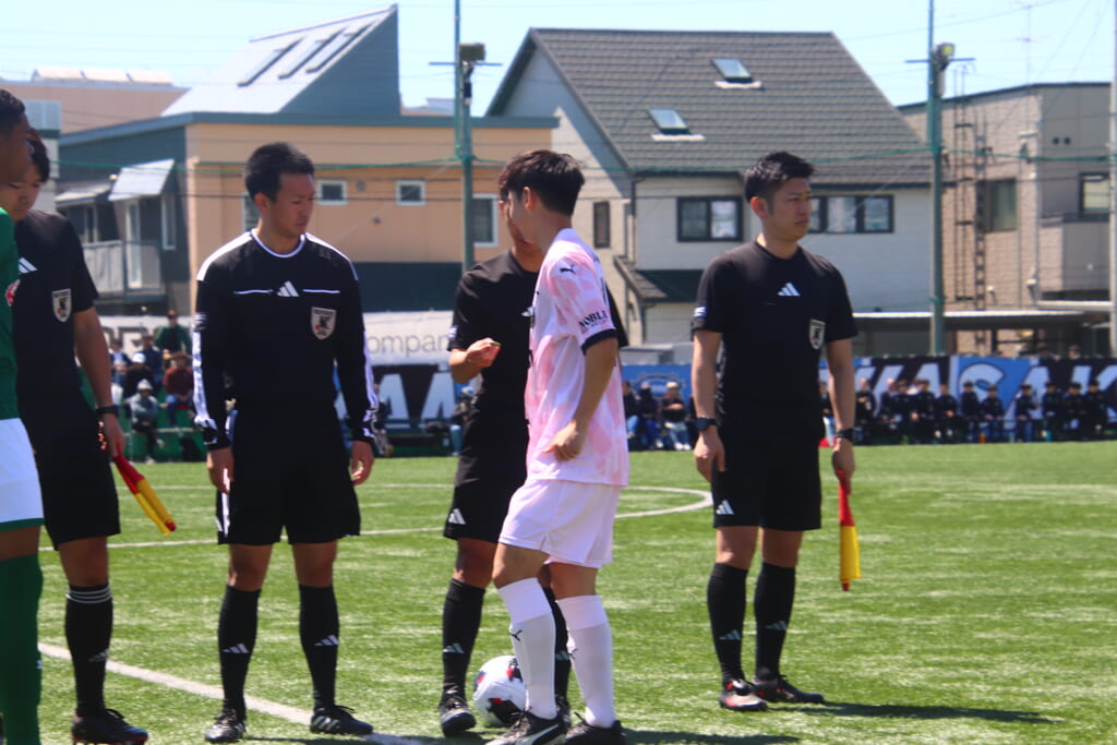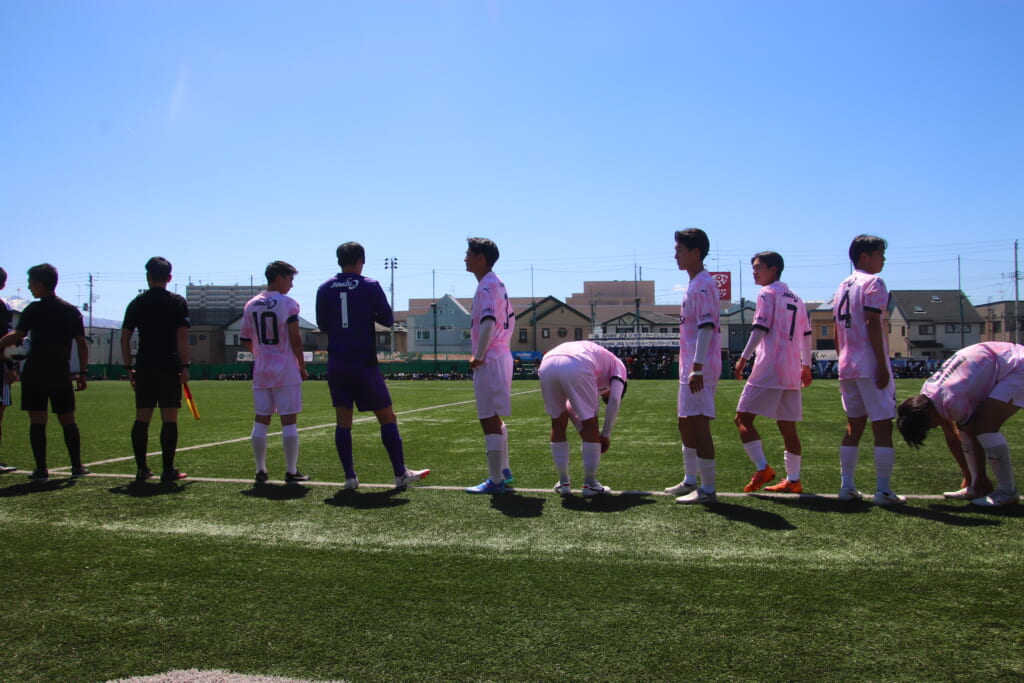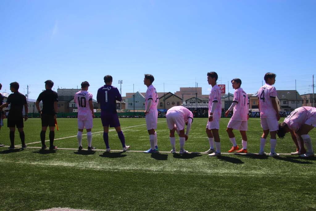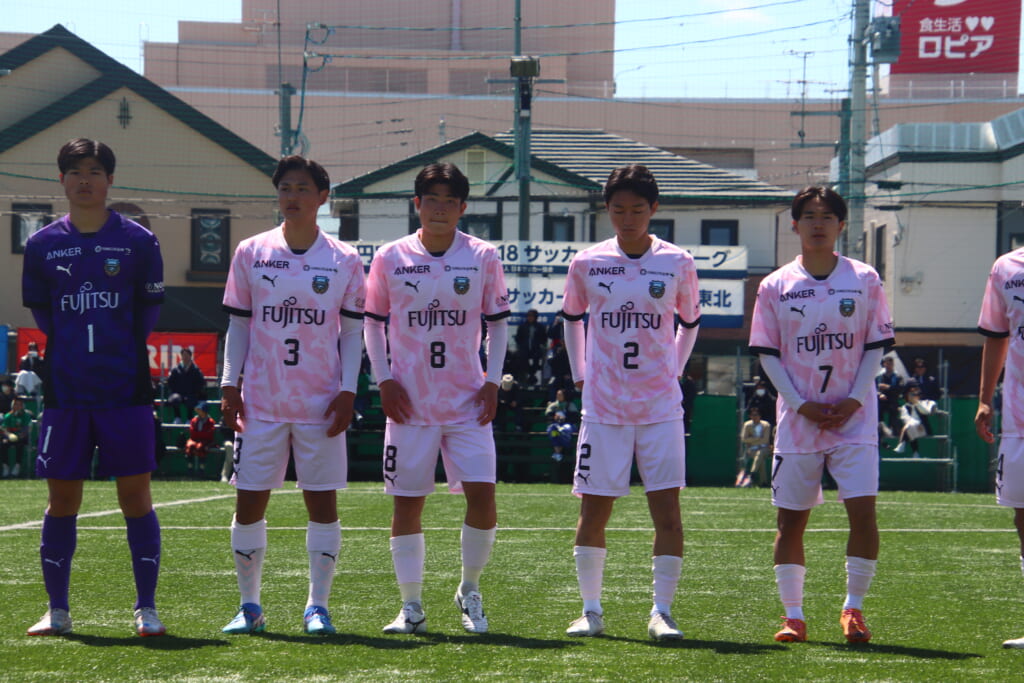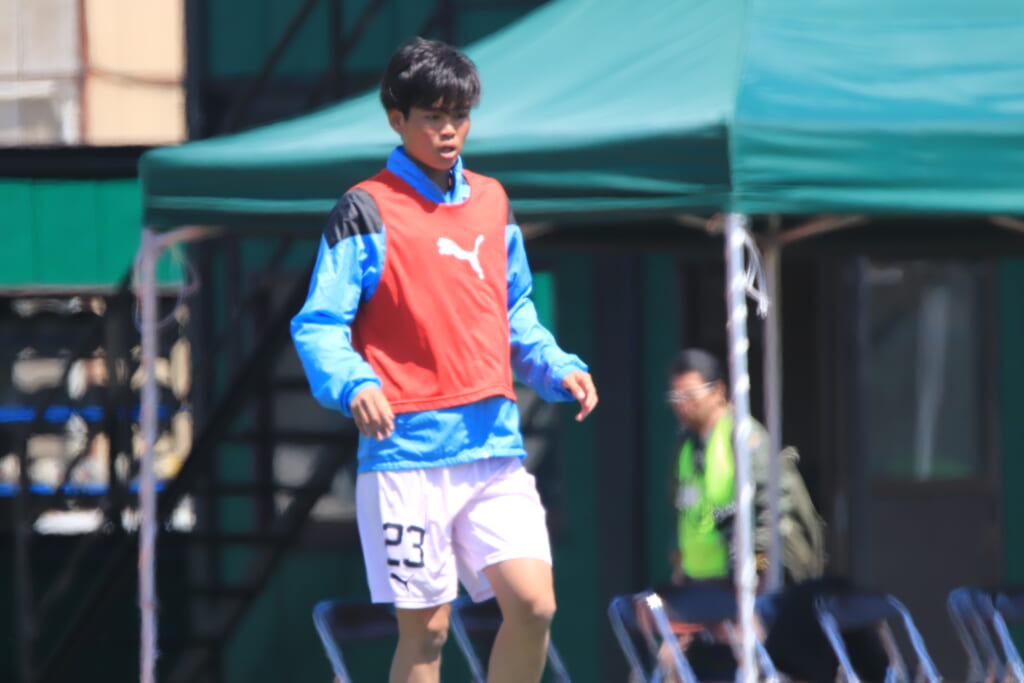 先発は、GK1ジョアオ・トニオル、最終ラインは右から6水谷鉄生、4木村魁心、3森明陽磨、2福地将太、ボランチは15照後大翔、14髙野侍助、右MFキャプテンの5三國ケースマンエブス、左MF22坂本悠人、前線には7石井珂那汰、11斉藤雅人。