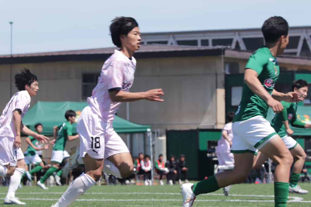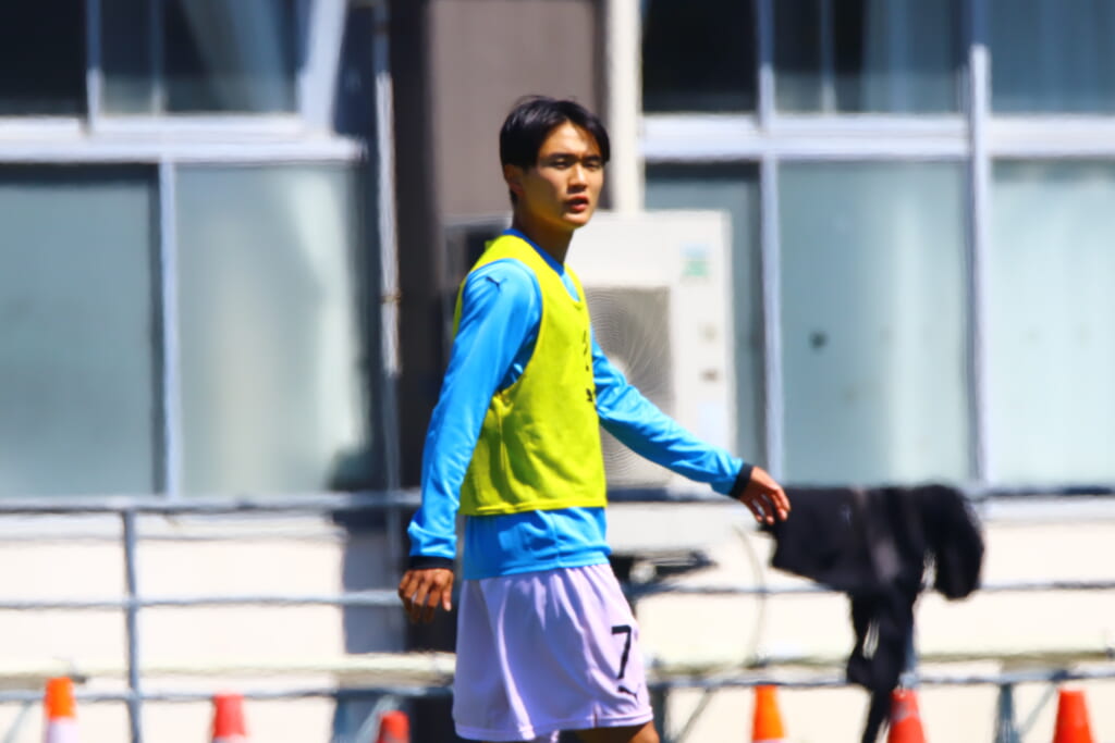 先発は、GK1岩田幹太郎、最終ラインは右から7小川翔太、18笹倉拓真、3藤田明日翔、2山川陽平、ボランチは4今廣遥碧、8小川尋斗、右MFキャプテンの10木下勝正、左MF13三上瑛大、前線には9川村求、11廣瀬寧生。