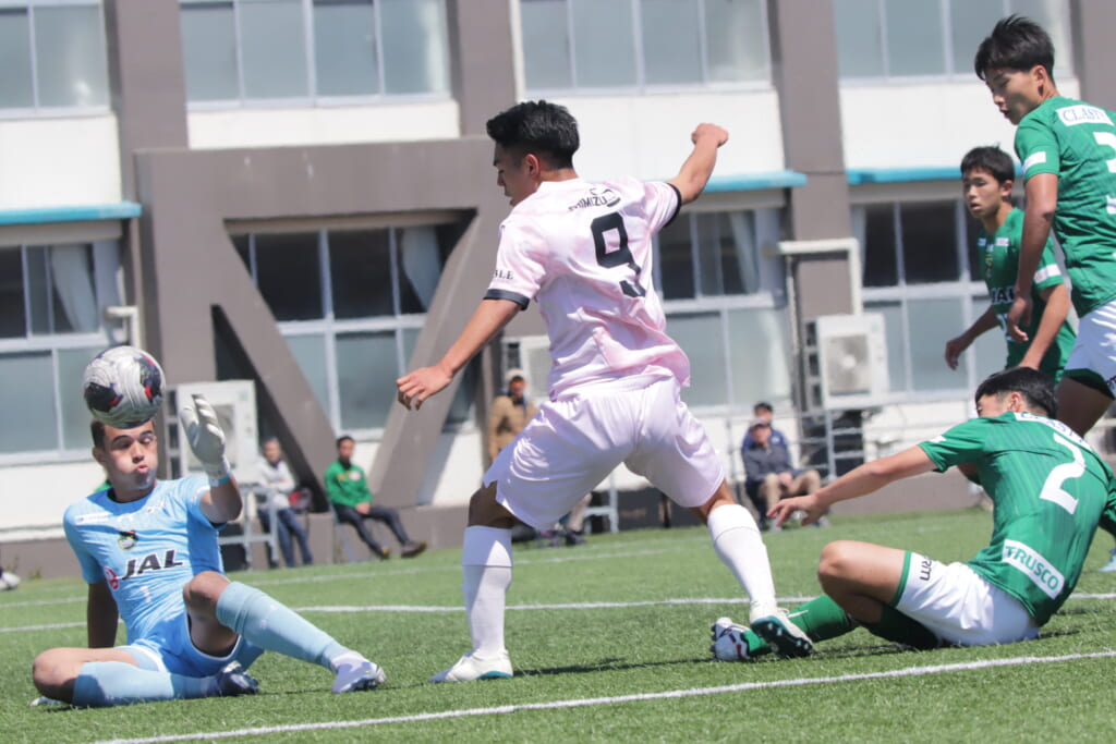 直後には、高い位置でカットした青森山田。石井のパスから正面で髙野がシュート。しかし、岩田がセーブ。