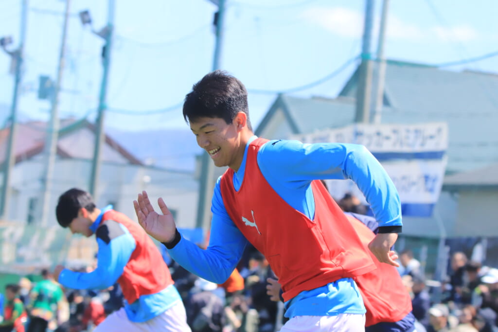 青森山田がカットしたところ、廣瀬がプレスバックでマイボールに。