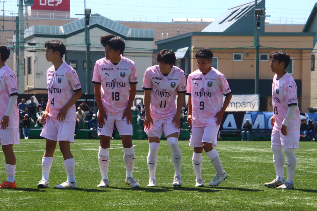フロンターレの先発:1岩田幹太郎 7小川翔太 18笹倉拓真 3藤田明日翔 2山川陽平 4今廣遥碧 8小川尋斗 10木下勝正(c) 13三上瑛大 9川村求 11廣瀬寧生交代:今廣→20加藤昊 川村→22十河晟央 小川翔太→30吉田琉海 木下→6小田脩人 三上→45吉澤映杜