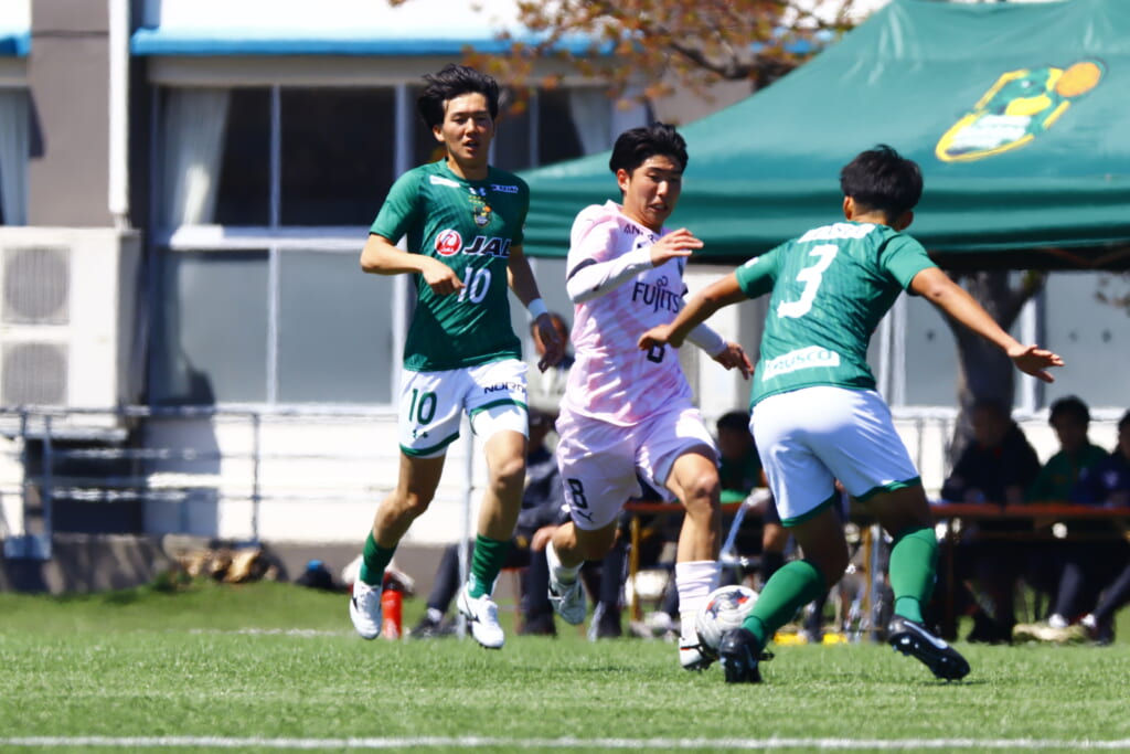 小田や吉澤、十河が高い位置からプレスをかけ、そこから自分たちでキープを図る時間をつくっていきます。