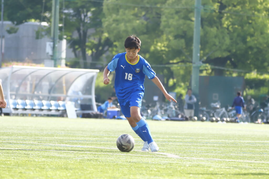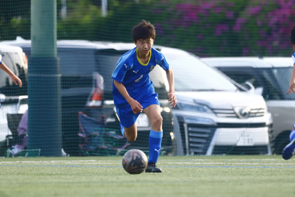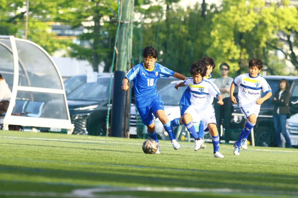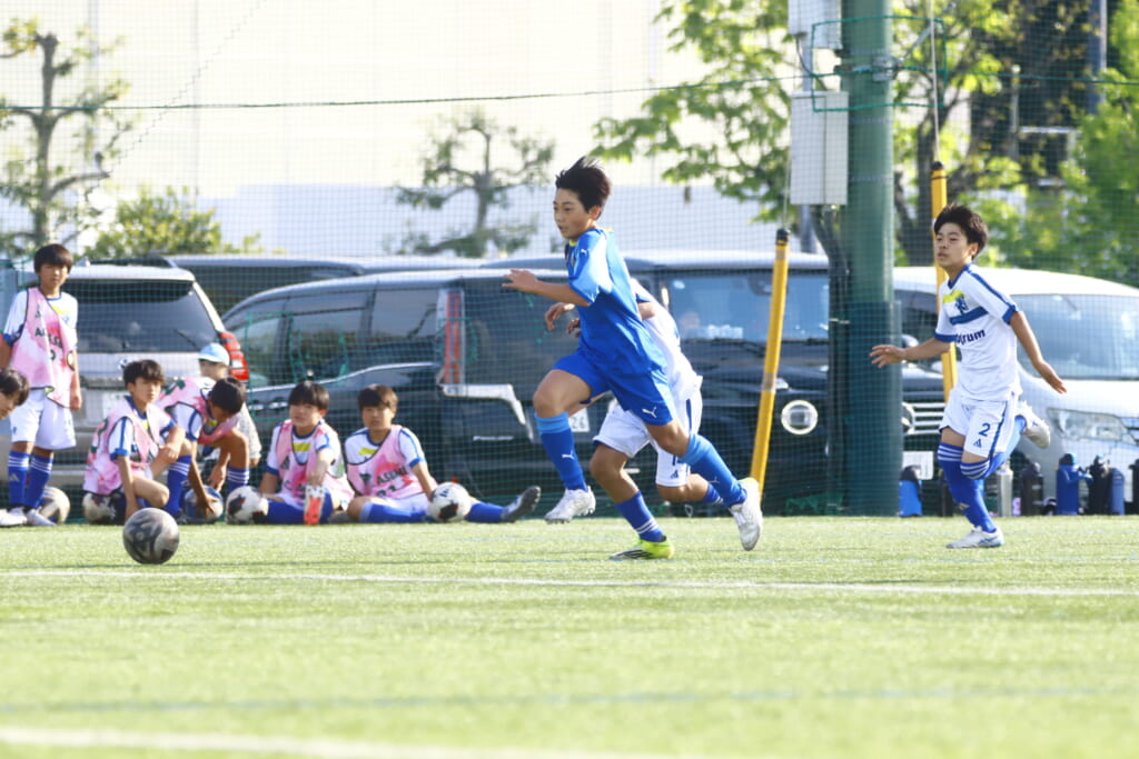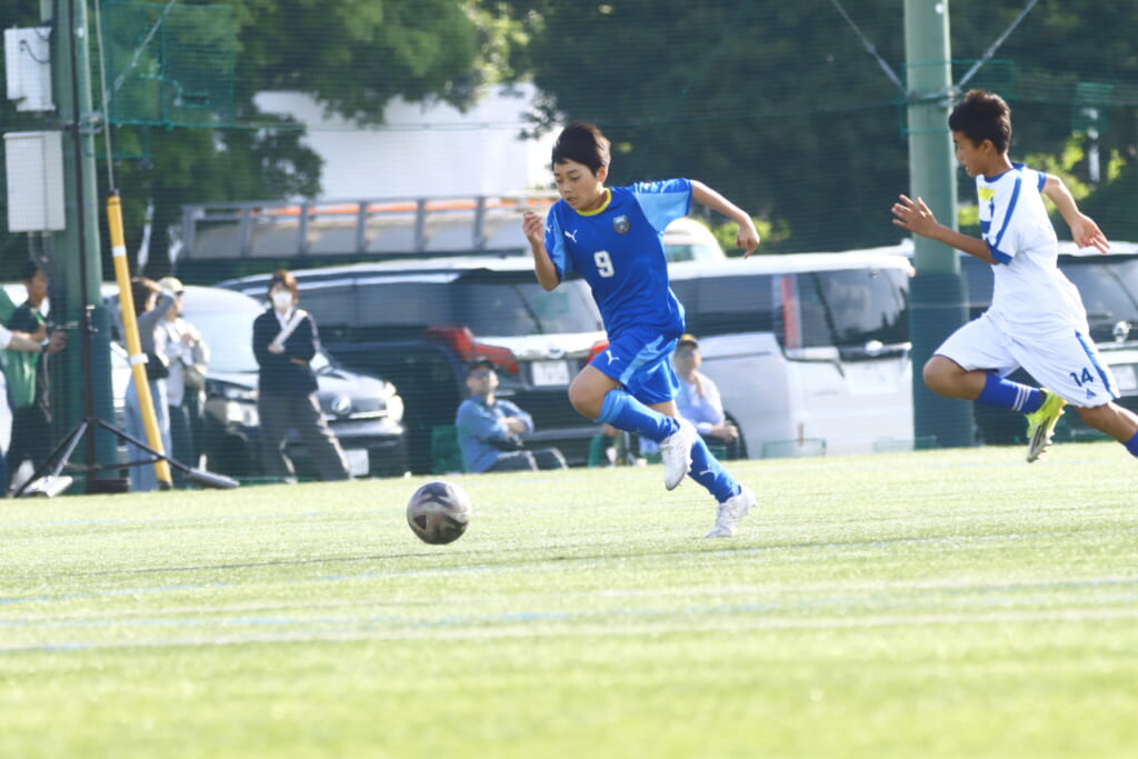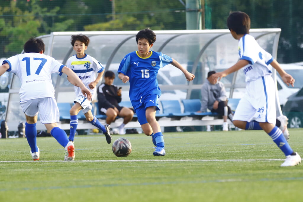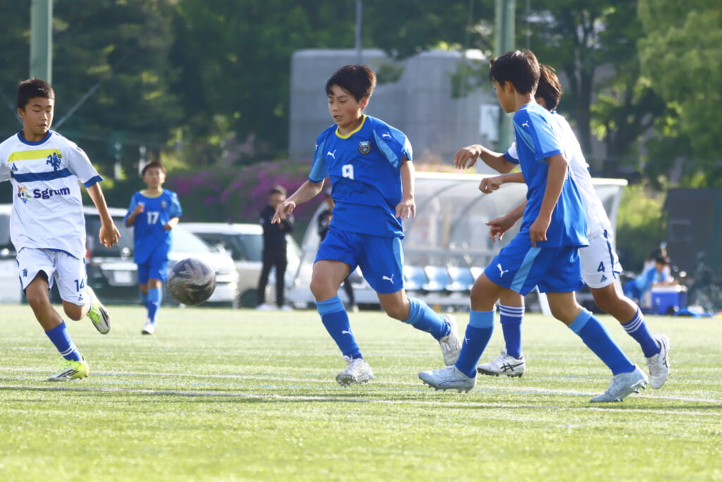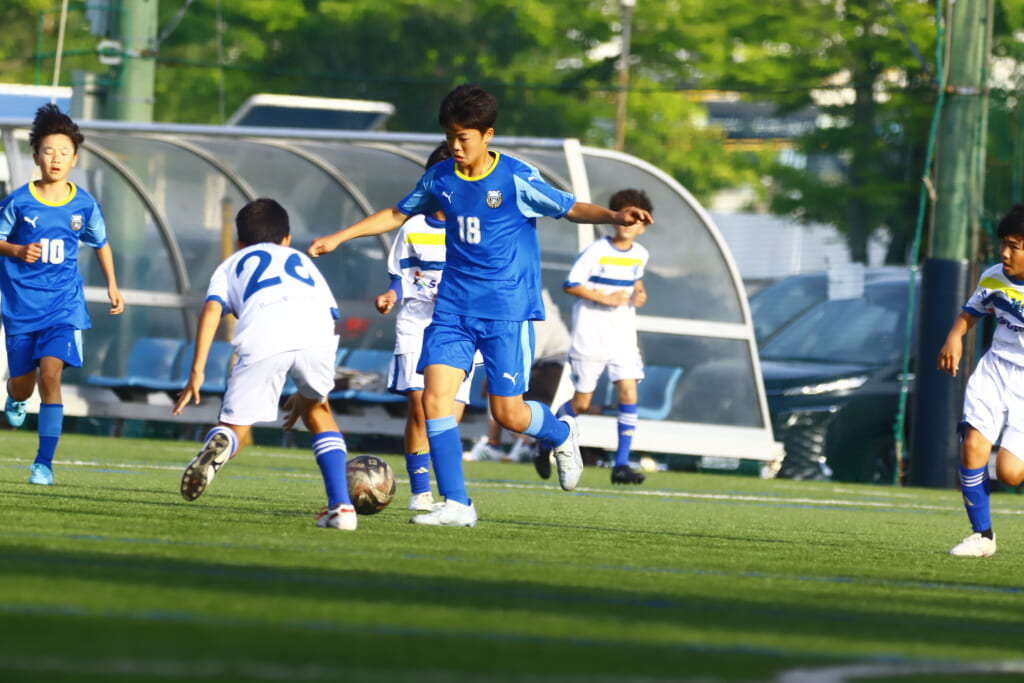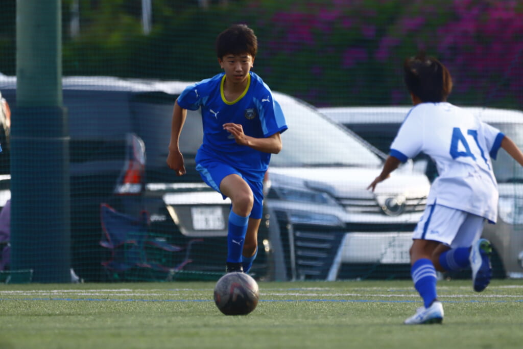 5分には、左サイドでのスローインの流れから鈴木が正面への仕掛け。アスミジュニアユースが対応したところ、さらにボールをつないでいくフロンターレ等々力、