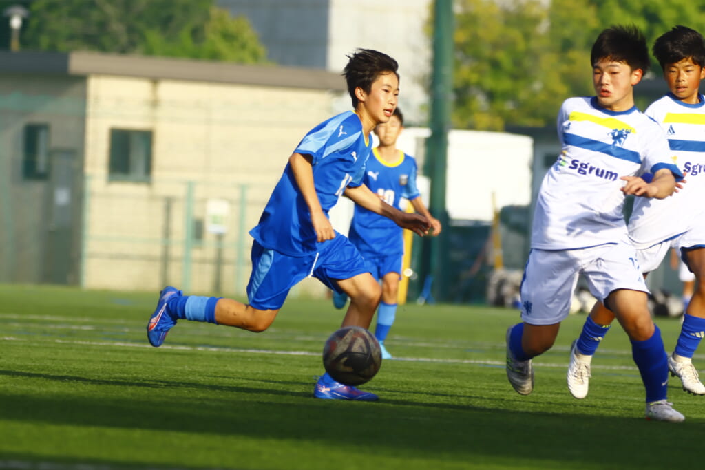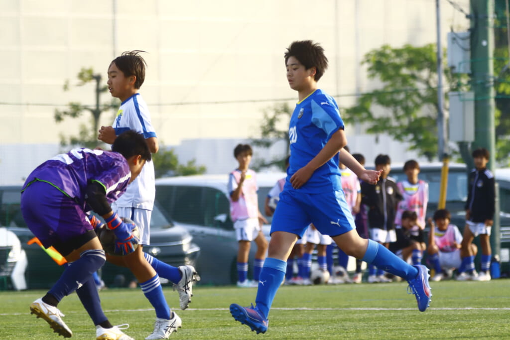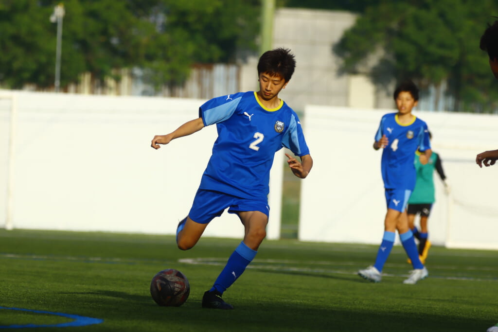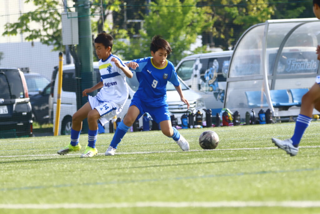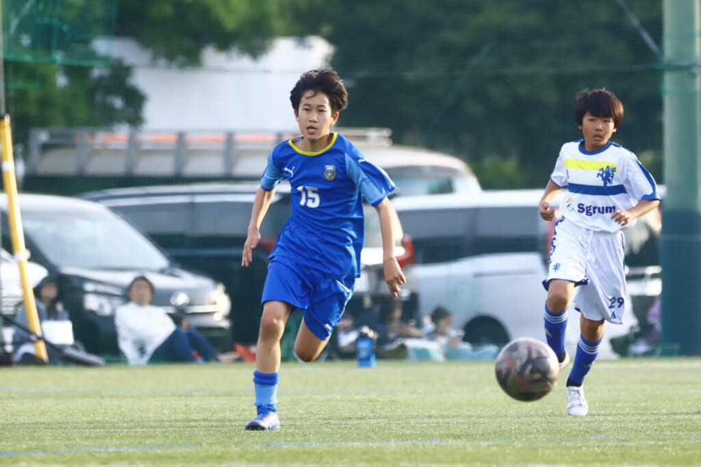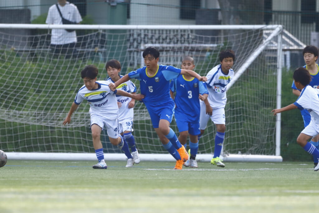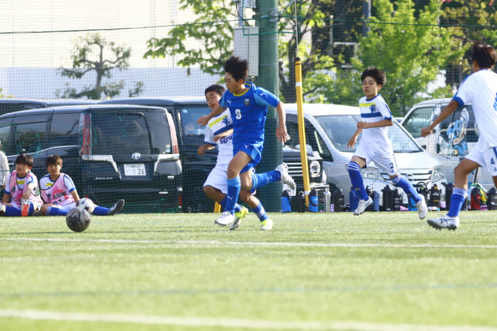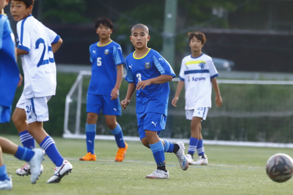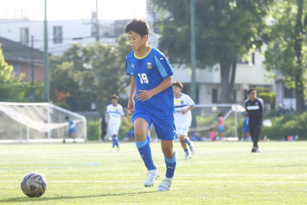 5分には、左サイドでのスローインの流れから鈴木が正面への仕掛け。アスミジュニアユースが対応したところ、さらにボールをつないでいくフロンターレ等々力、