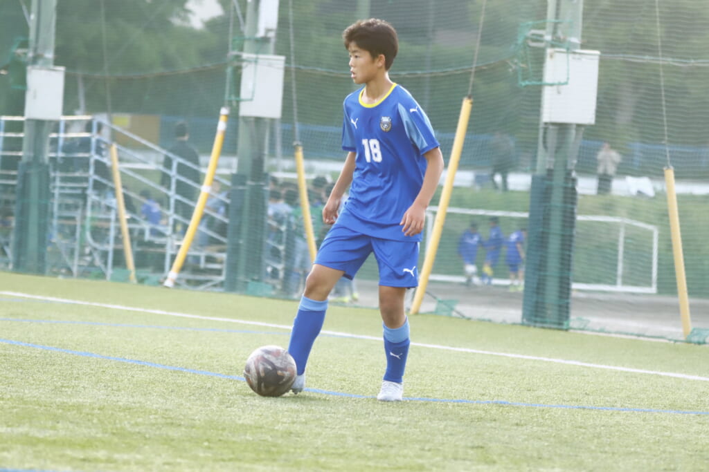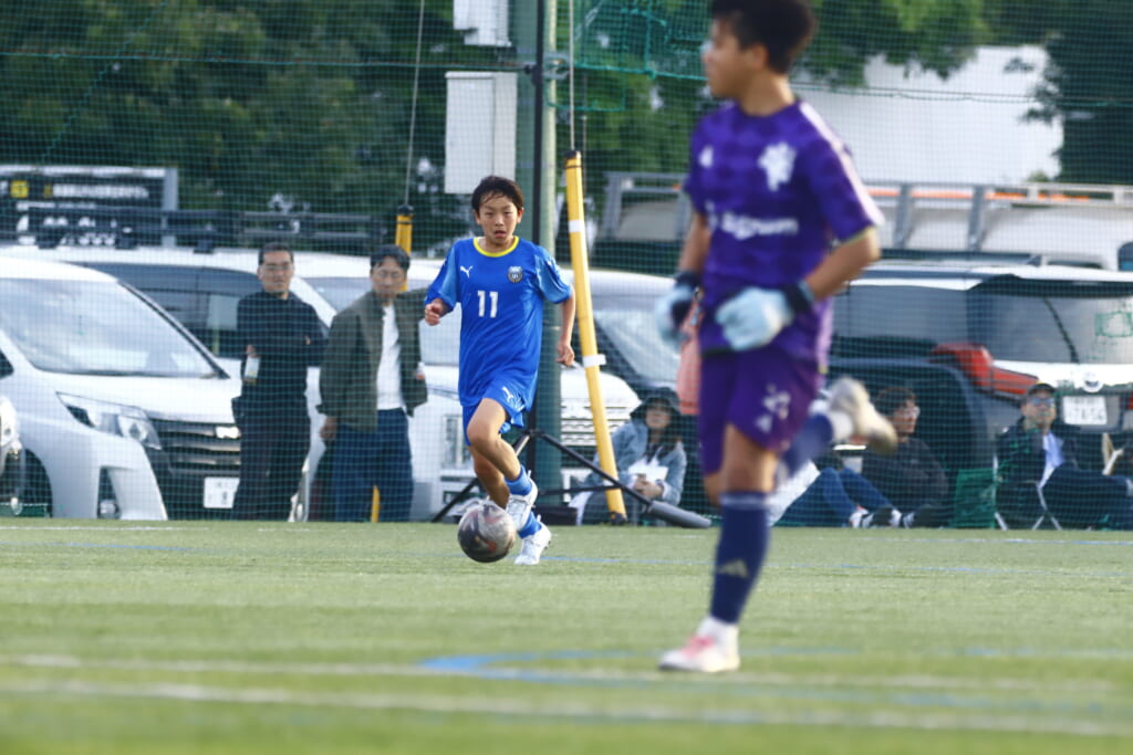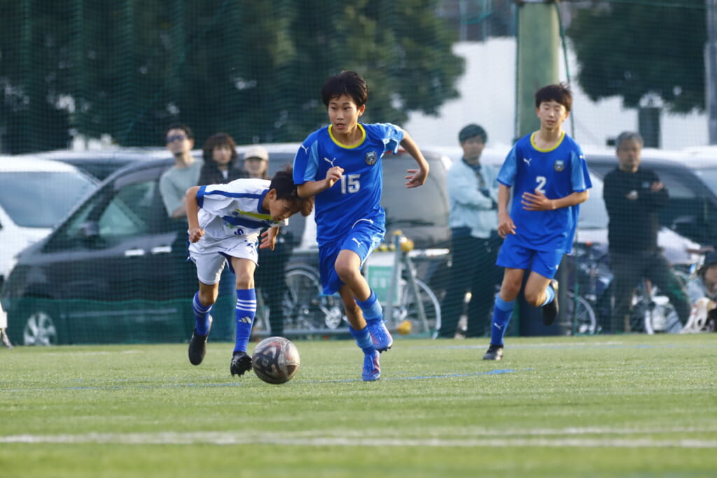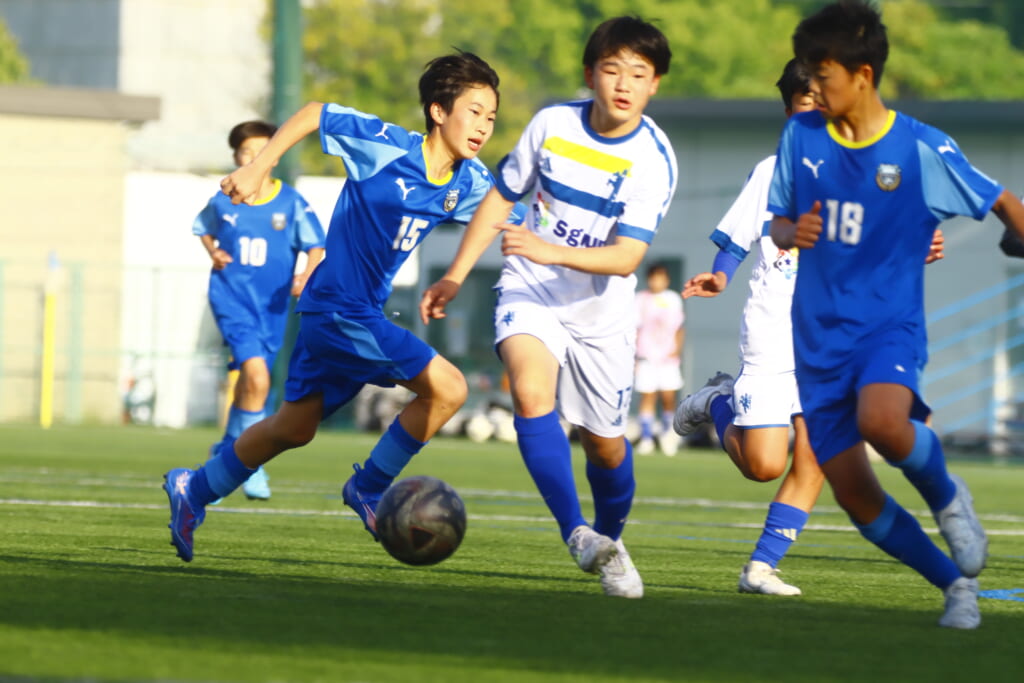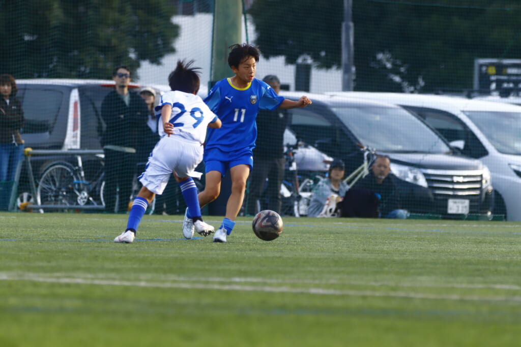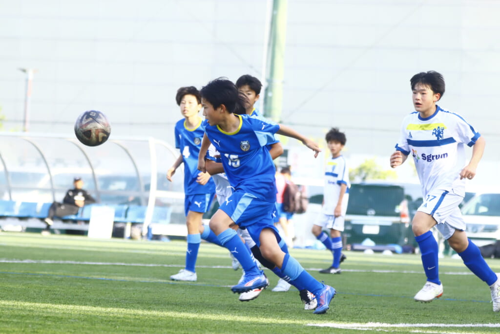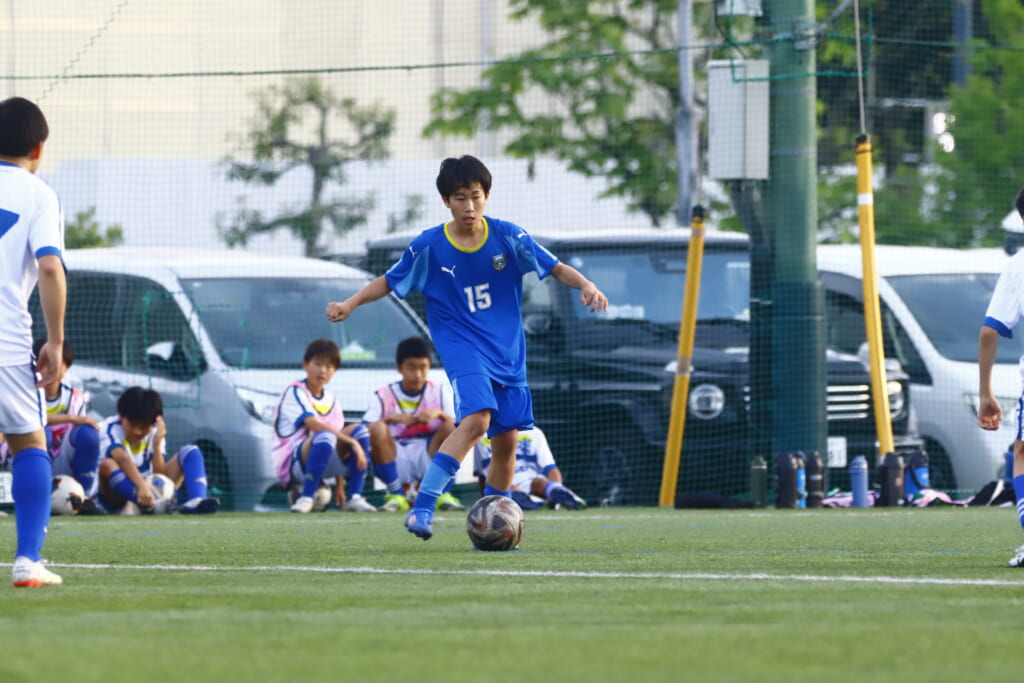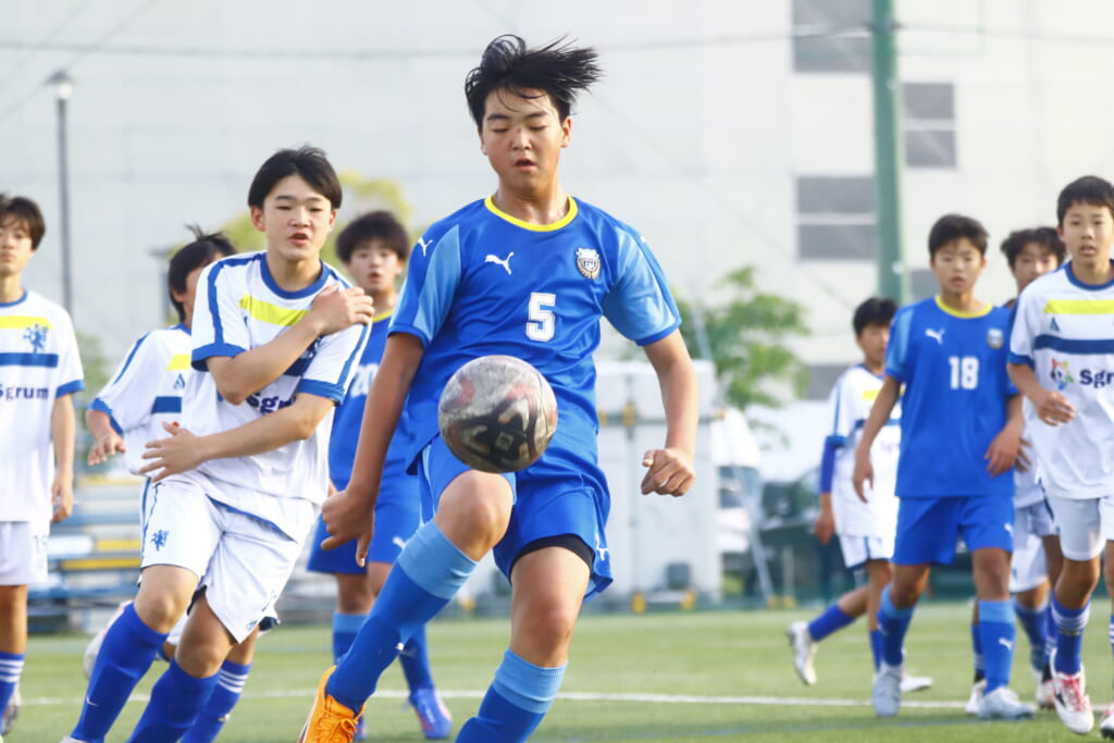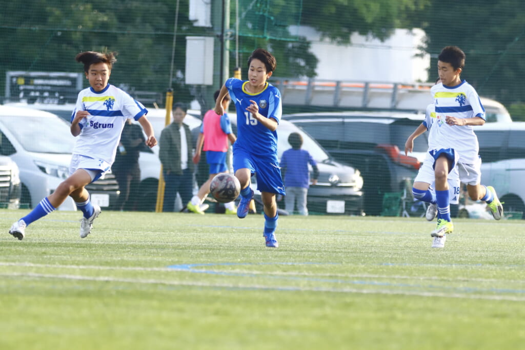 5分には、左サイドでのスローインの流れから鈴木が正面への仕掛け。アスミジュニアユースが対応したところ、さらにボールをつないでいくフロンターレ等々力、