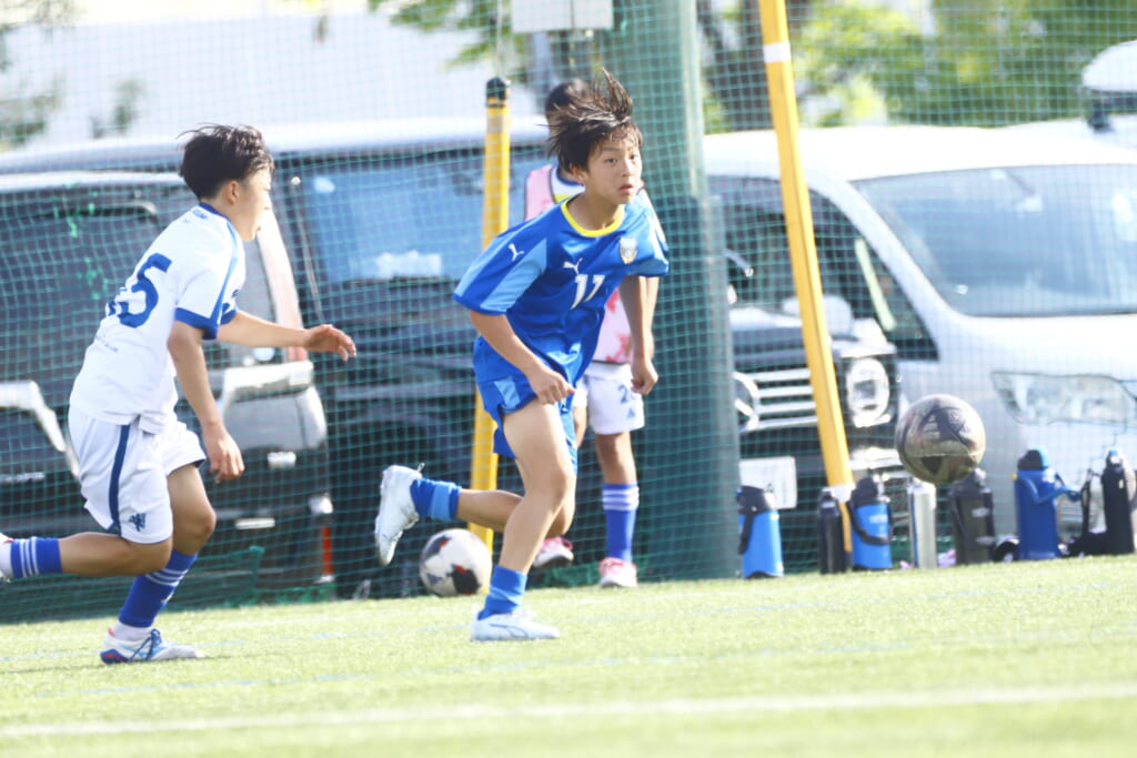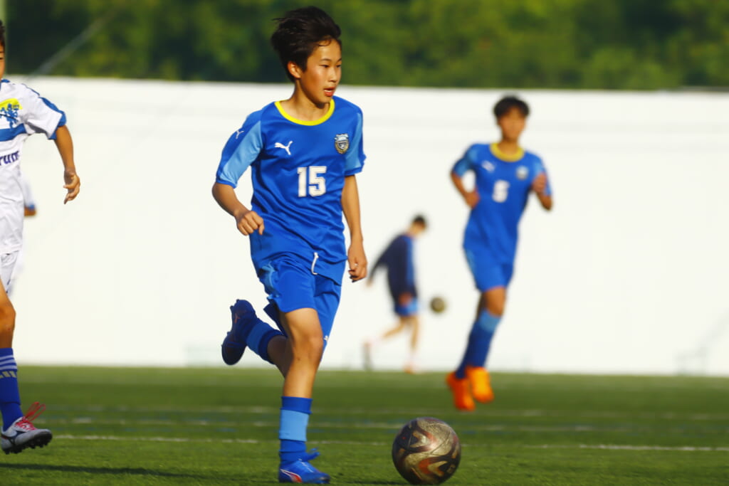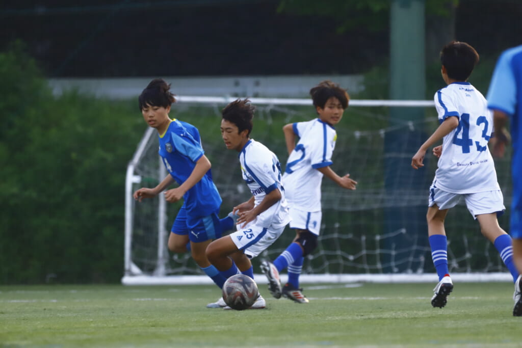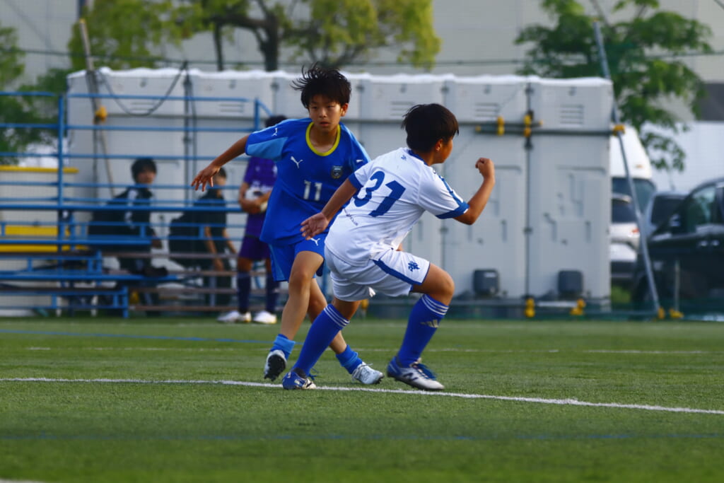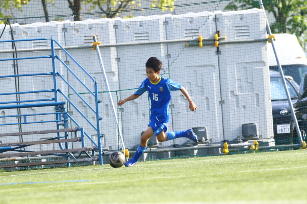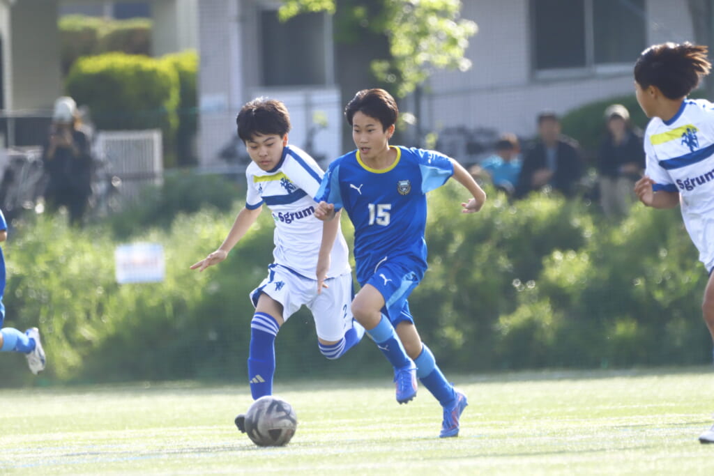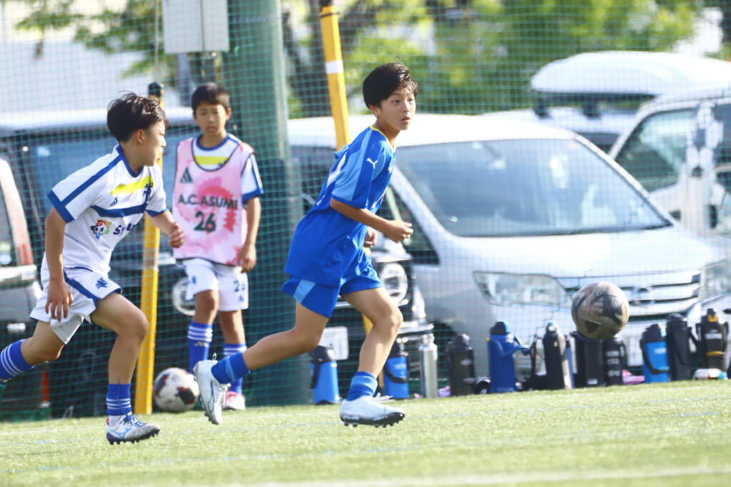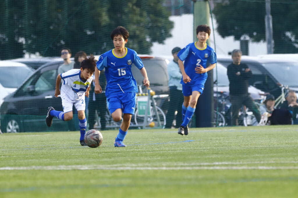 5分には、左サイドでのスローインの流れから鈴木が正面への仕掛け。アスミジュニアユースが対応したところ、さらにボールをつないでいくフロンターレ等々力、