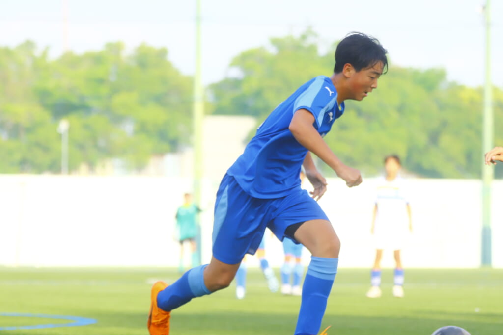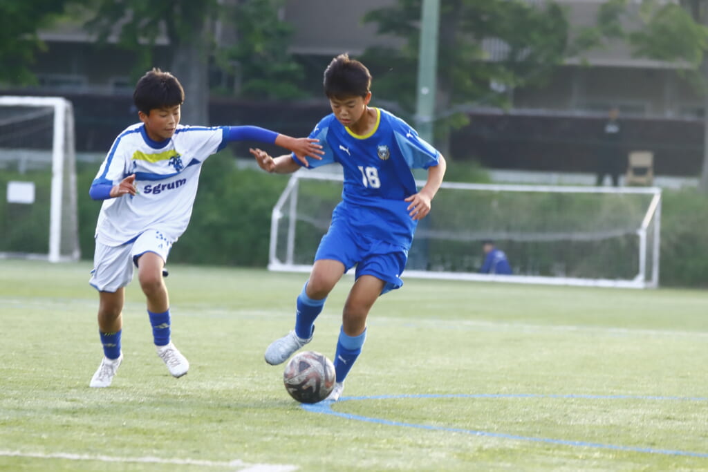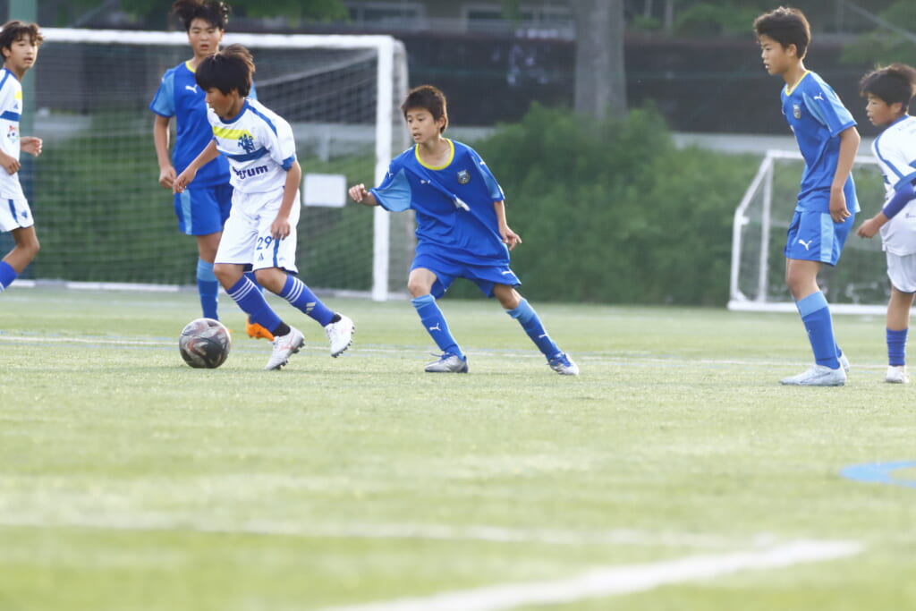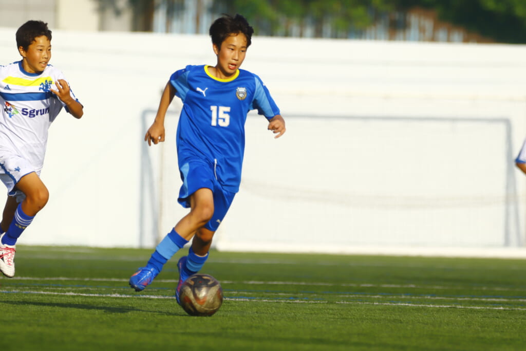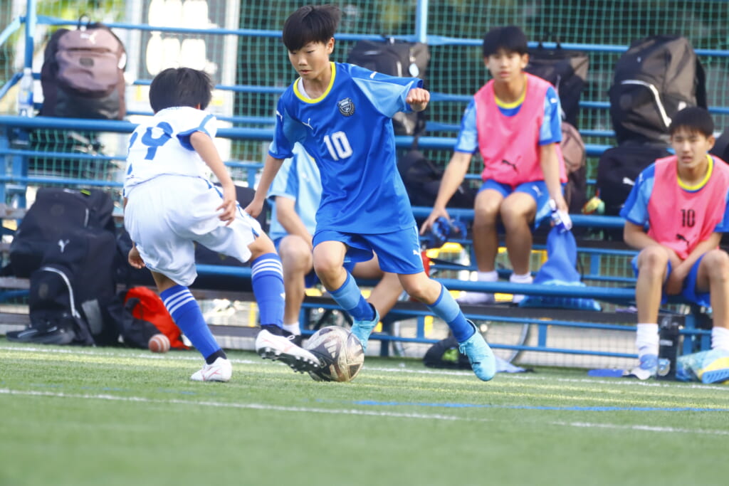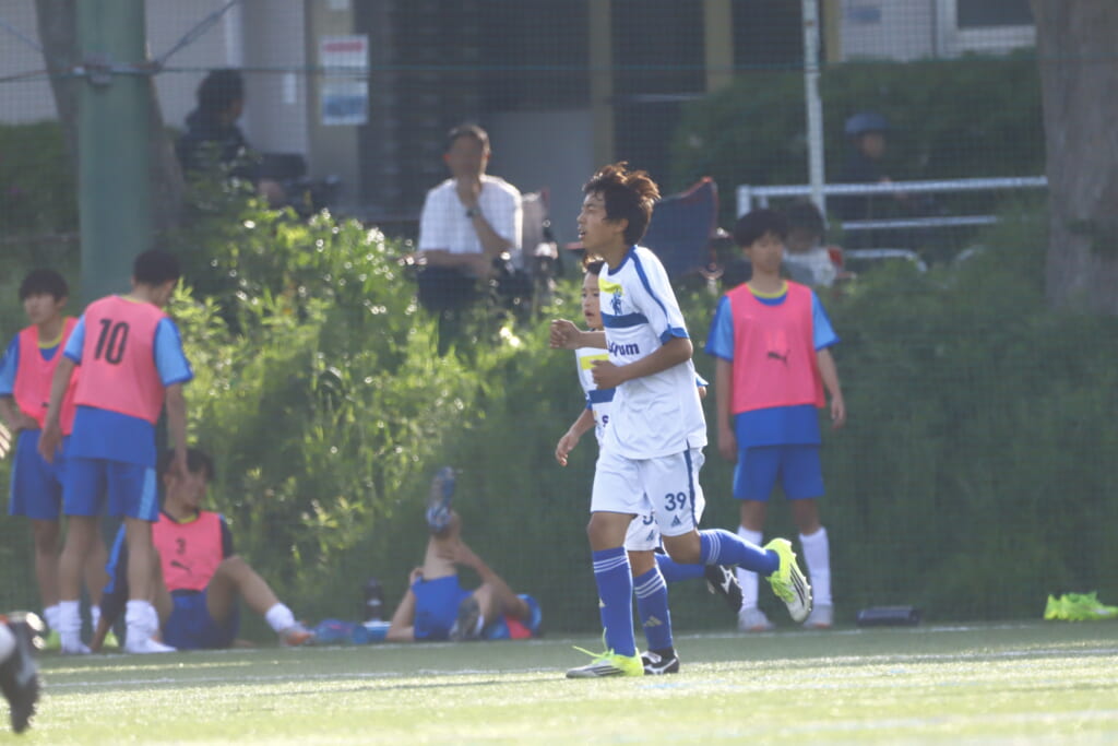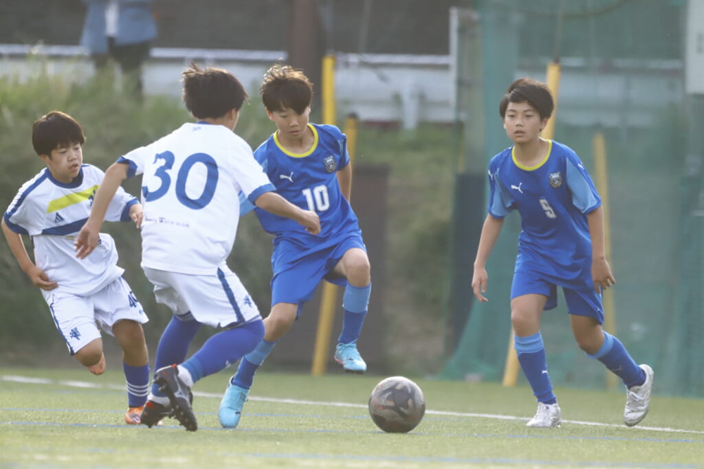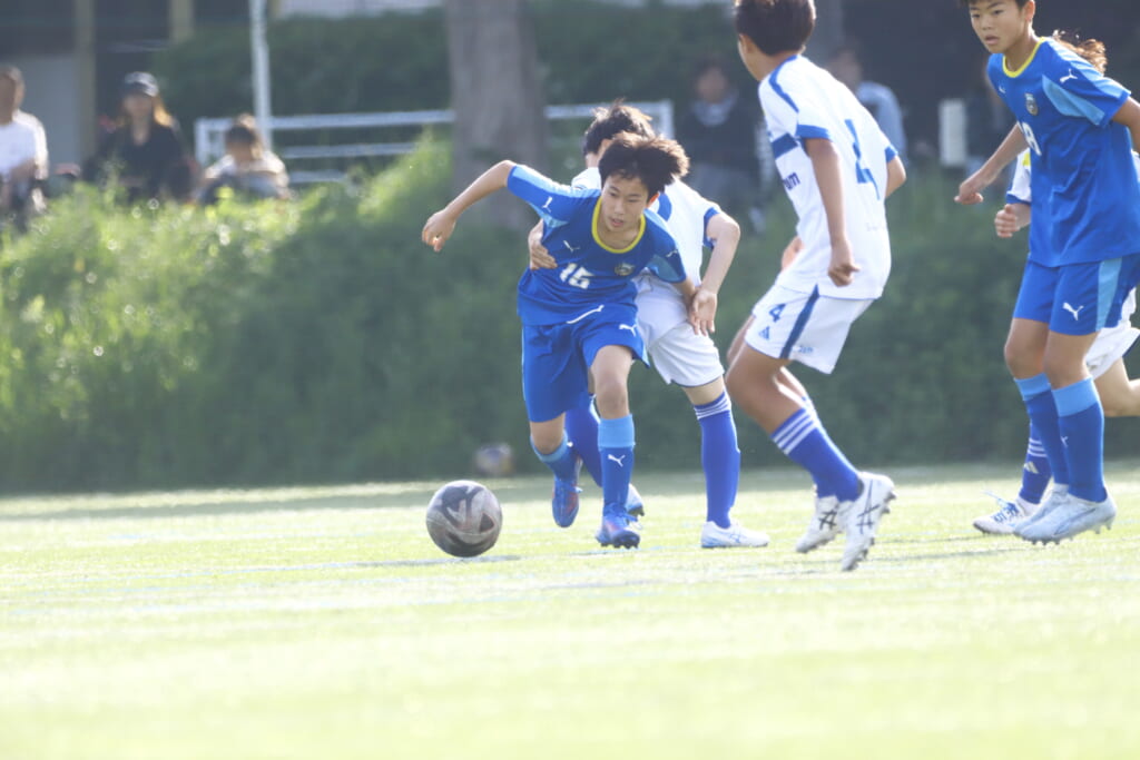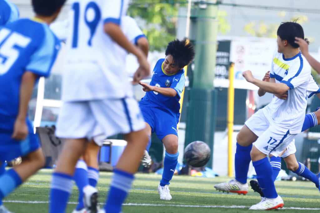 5分には、左サイドでのスローインの流れから鈴木が正面への仕掛け。アスミジュニアユースが対応したところ、さらにボールをつないでいくフロンターレ等々力、