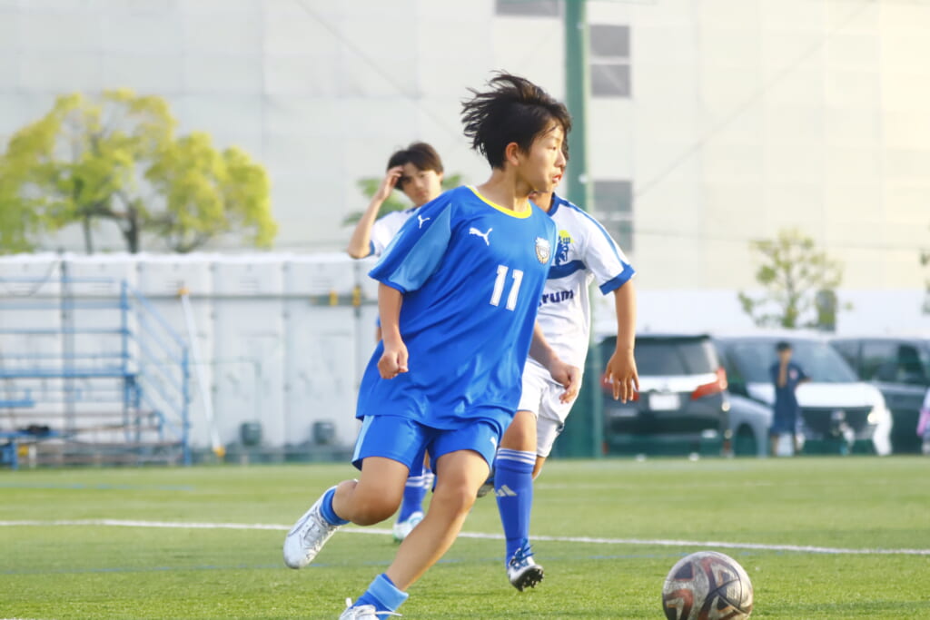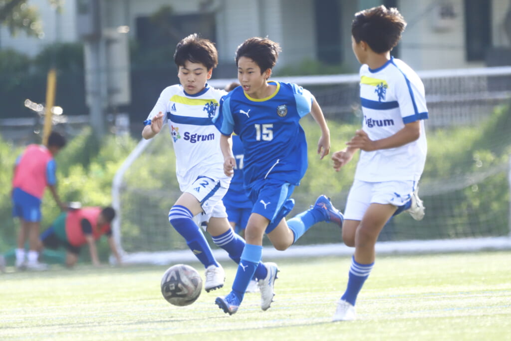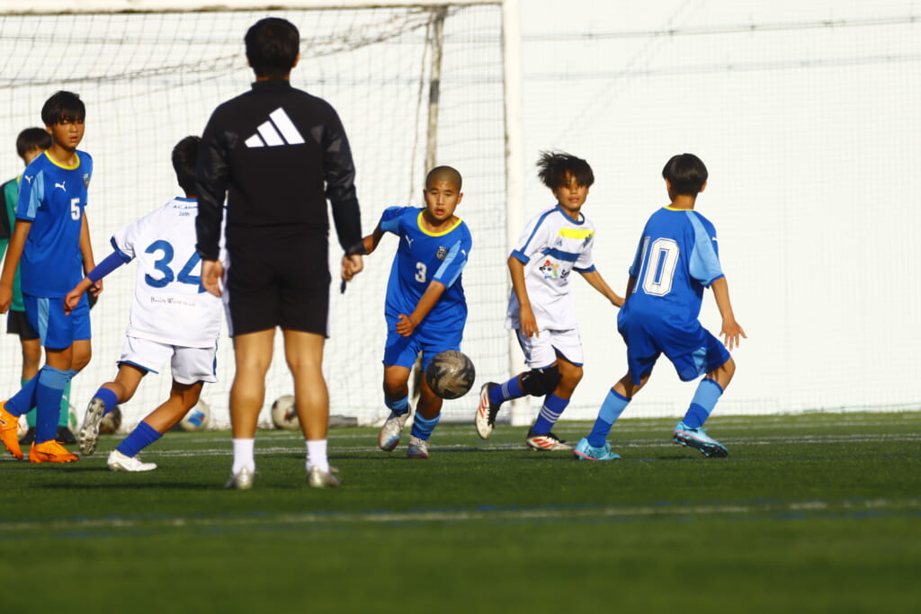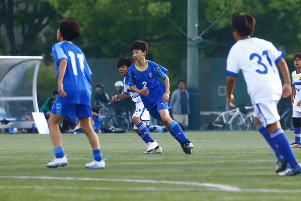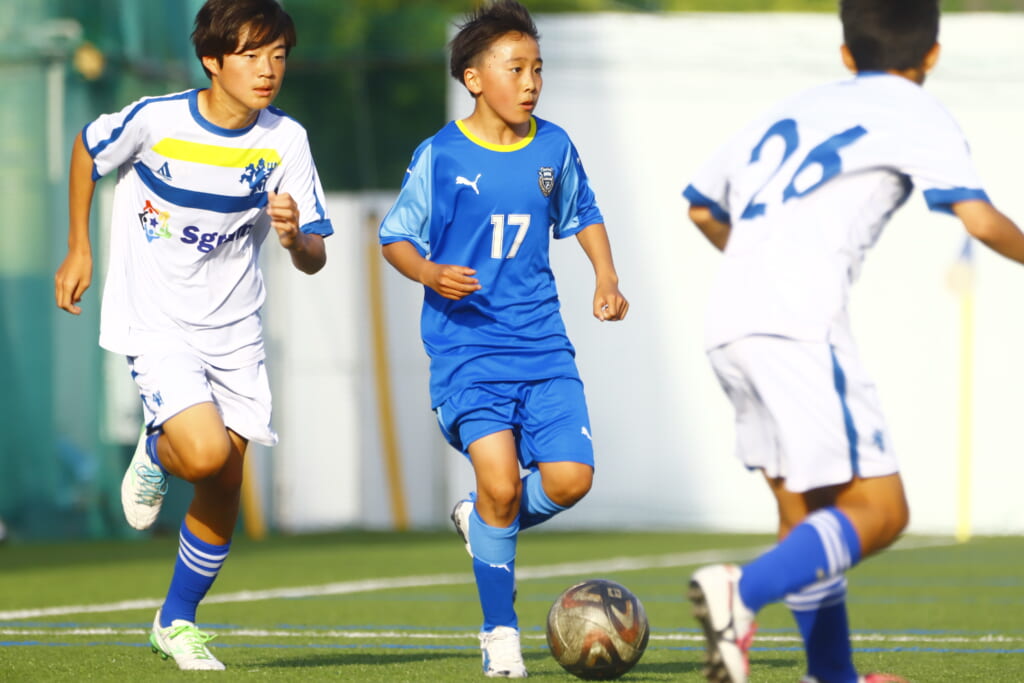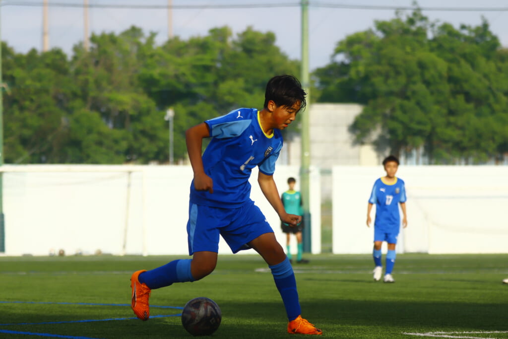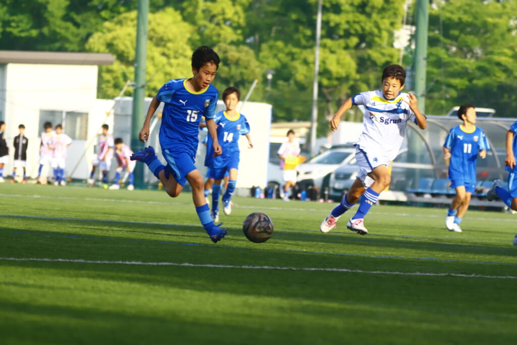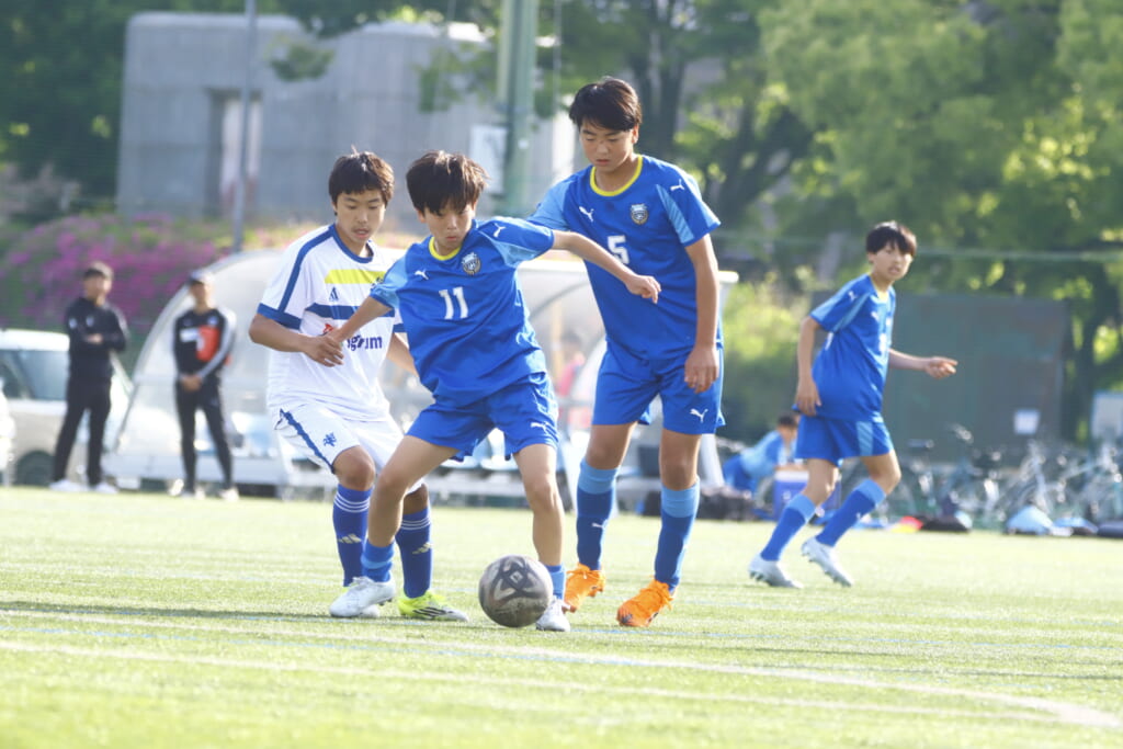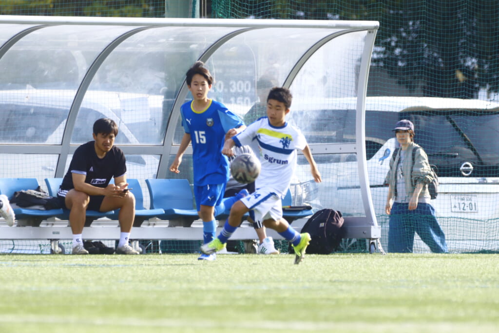 5分には、左サイドでのスローインの流れから鈴木が正面への仕掛け。アスミジュニアユースが対応したところ、さらにボールをつないでいくフロンターレ等々力、