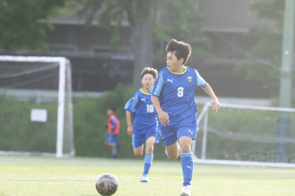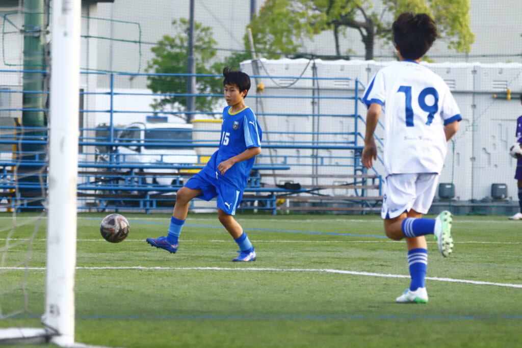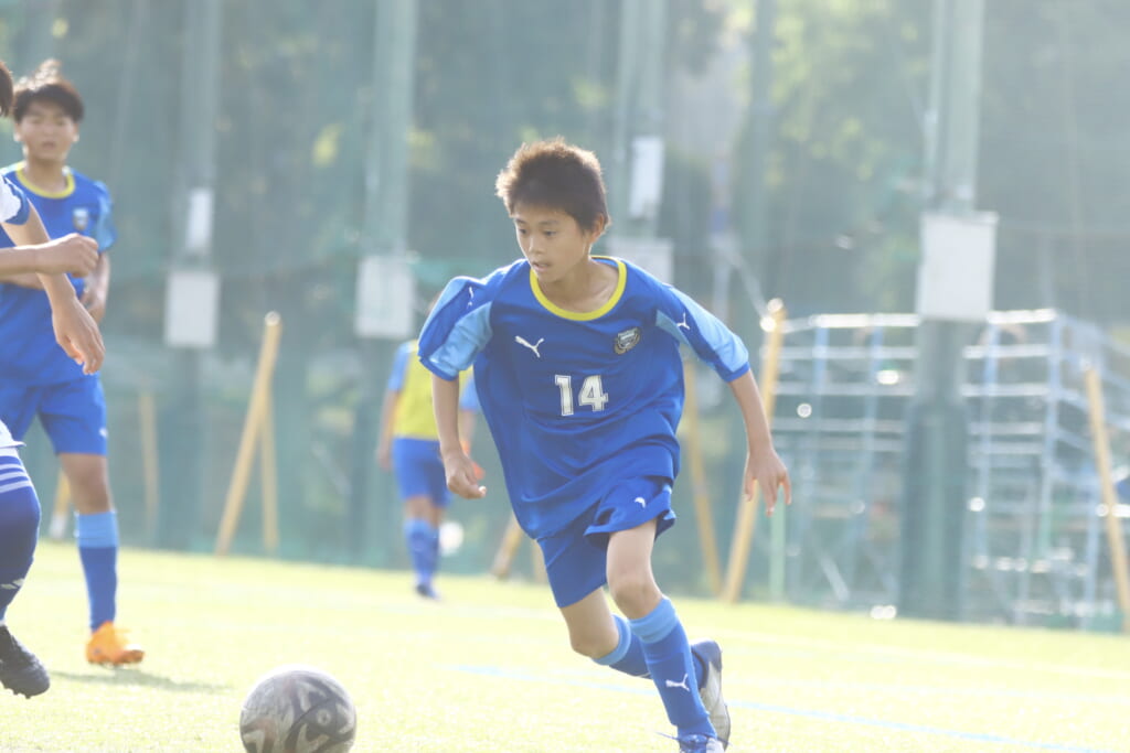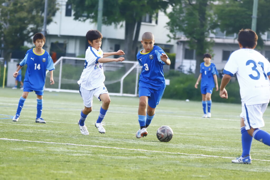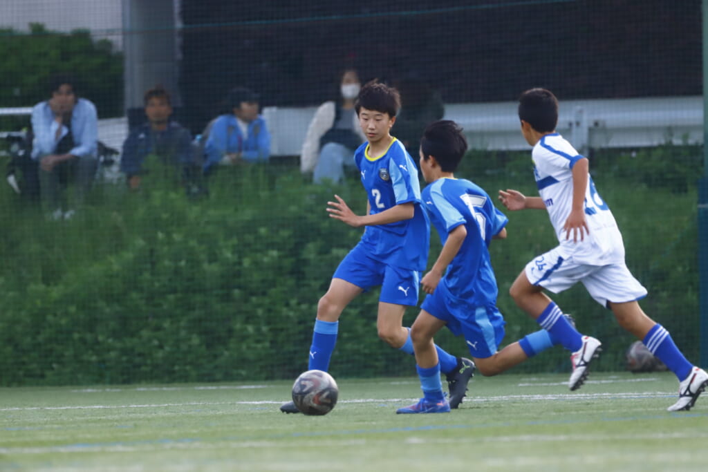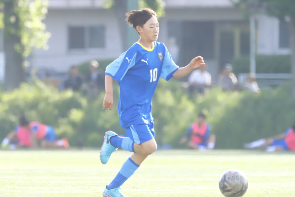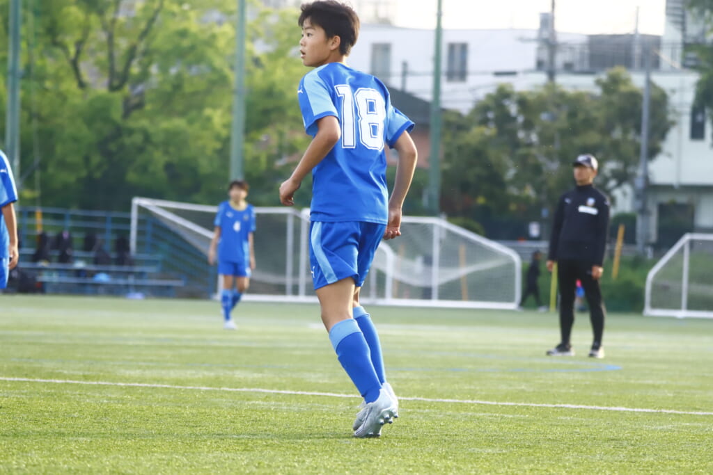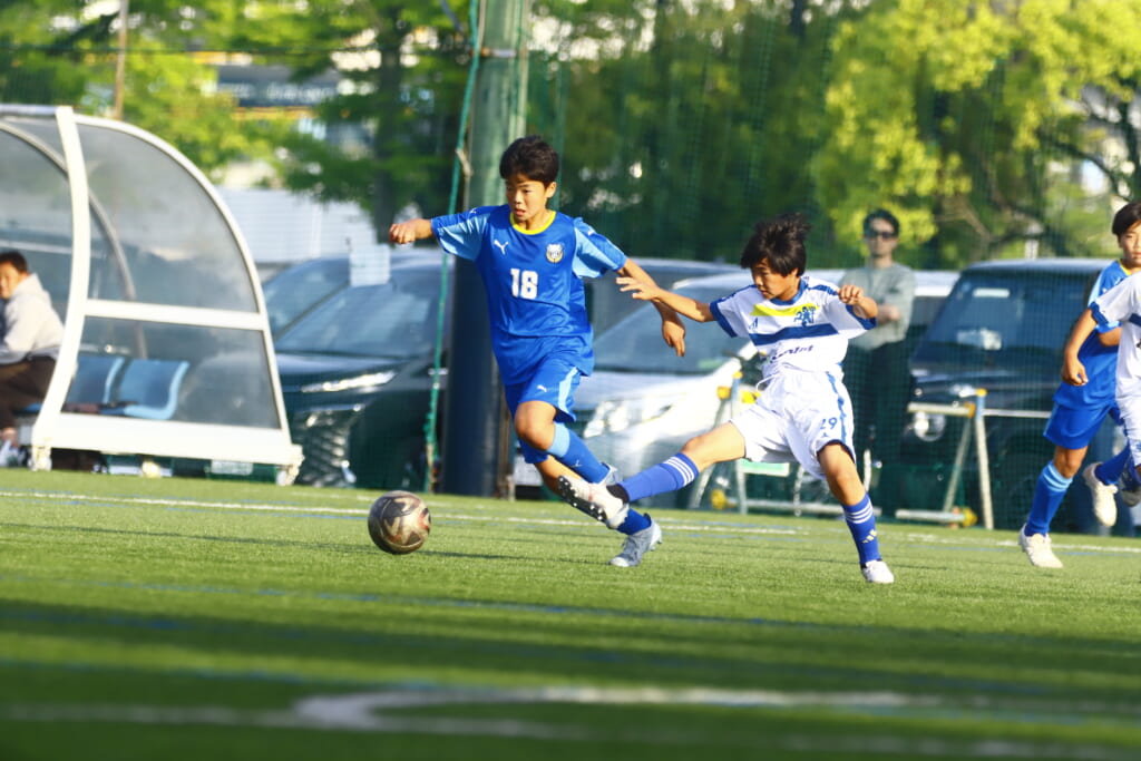 5分には、左サイドでのスローインの流れから鈴木が正面への仕掛け。アスミジュニアユースが対応したところ、さらにボールをつないでいくフロンターレ等々力、