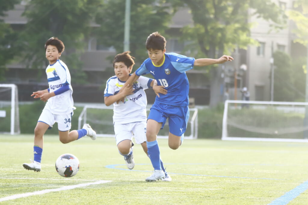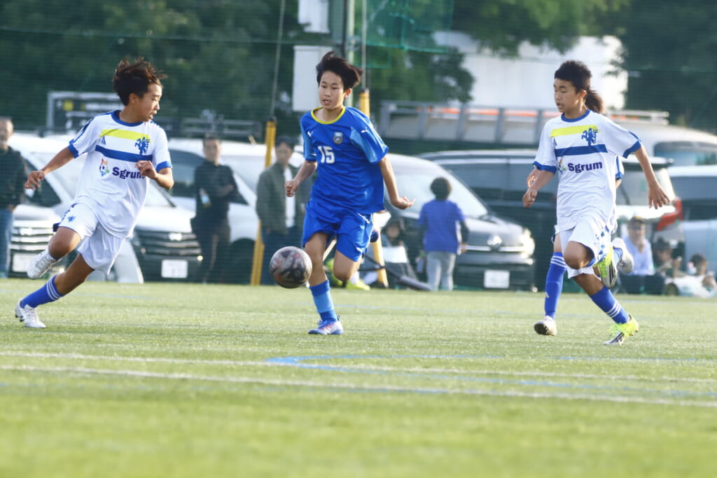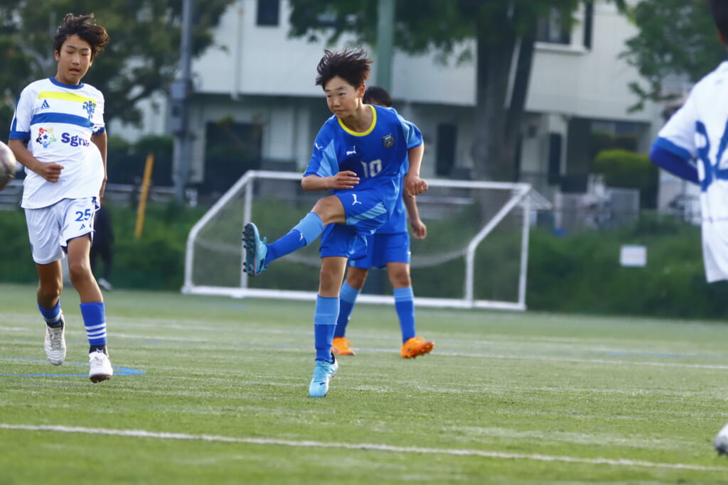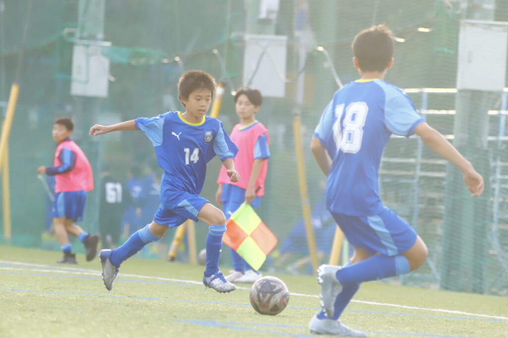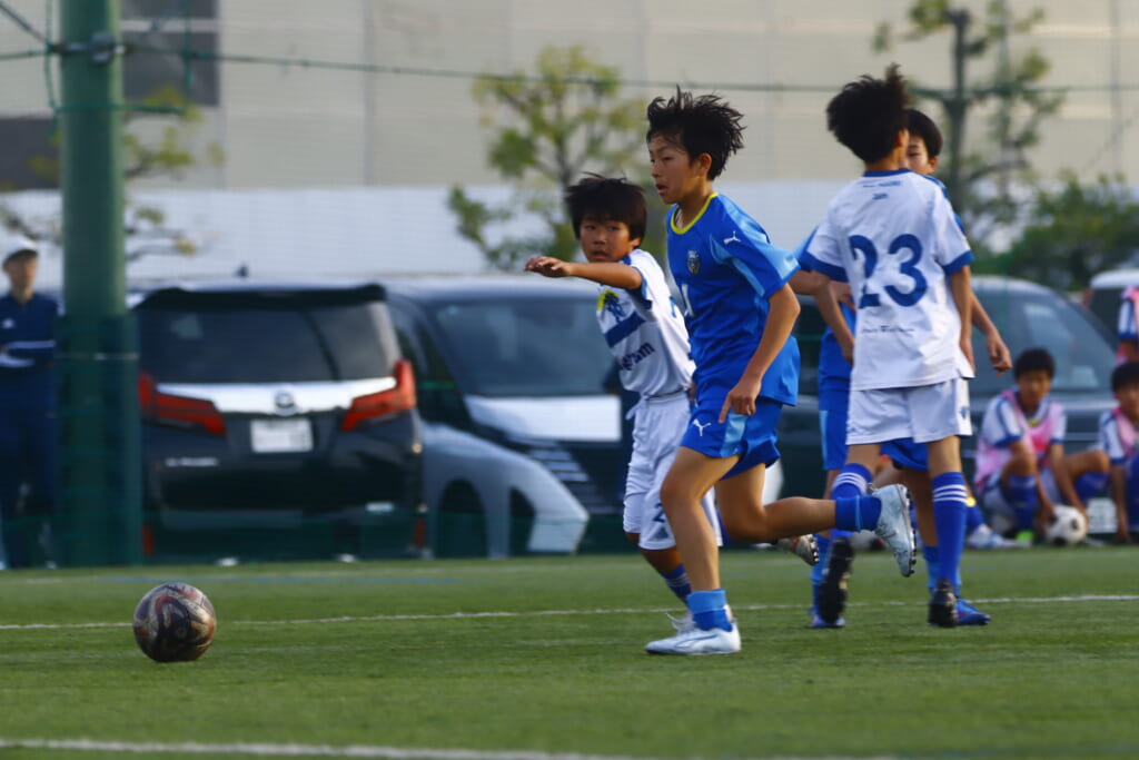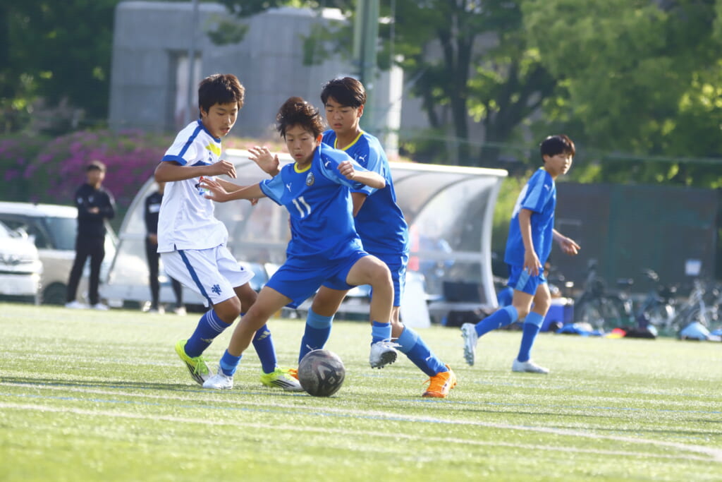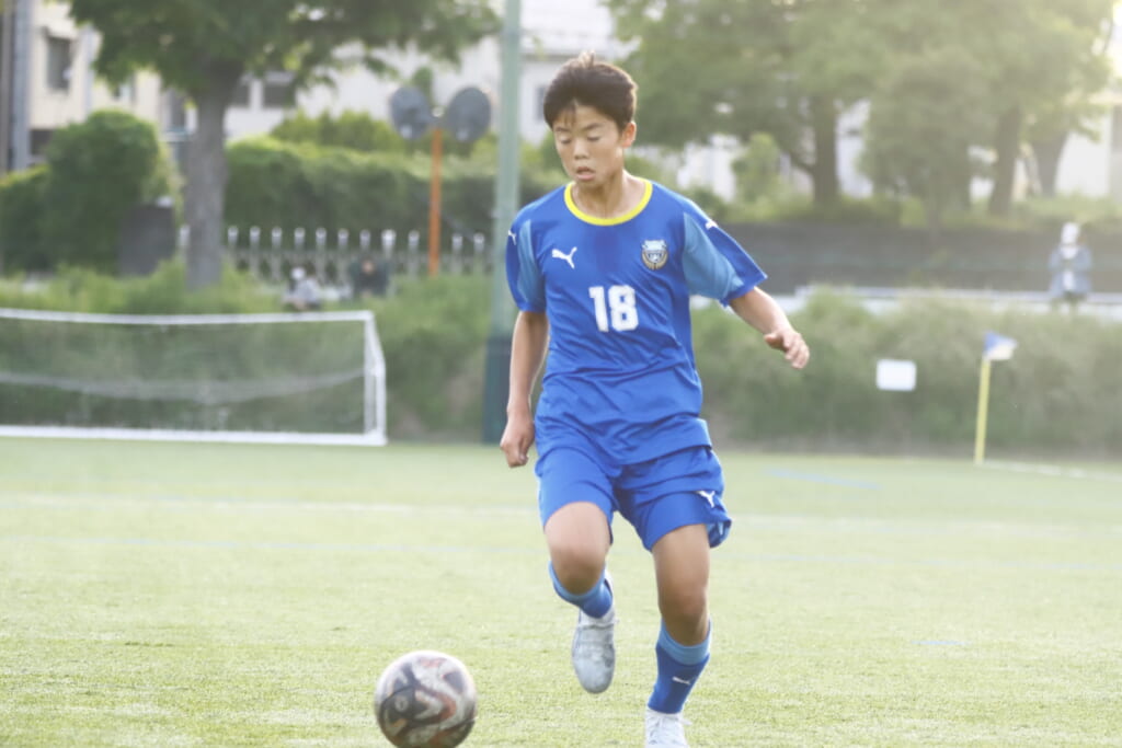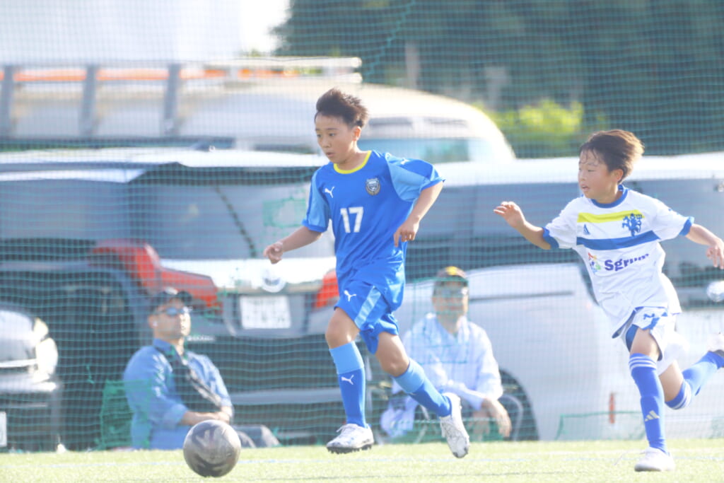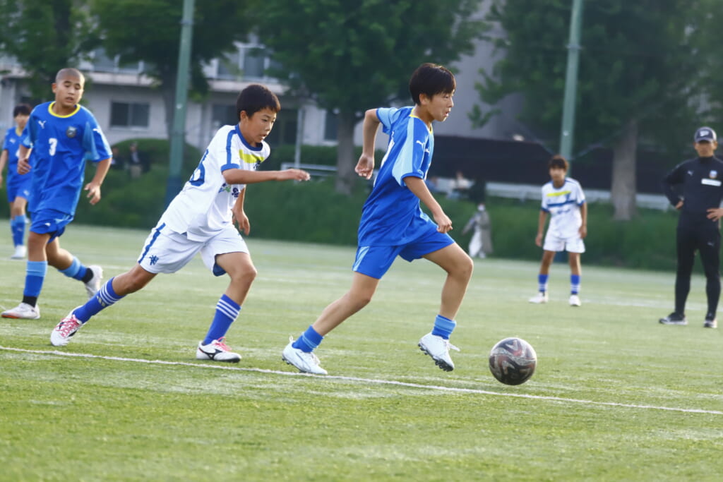 5分には、左サイドでのスローインの流れから鈴木が正面への仕掛け。アスミジュニアユースが対応したところ、さらにボールをつないでいくフロンターレ等々力、