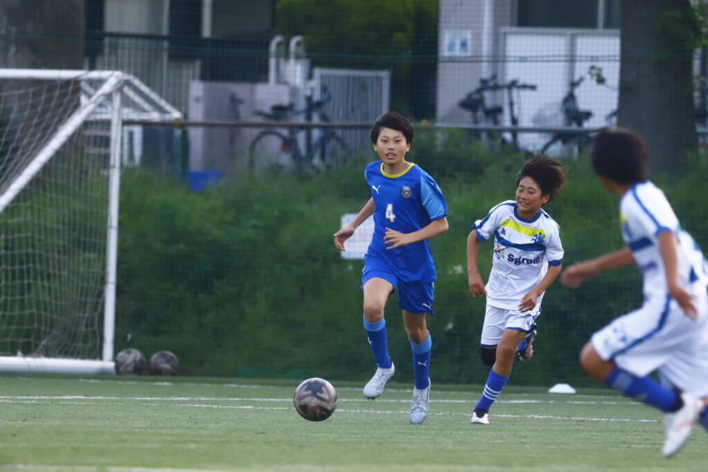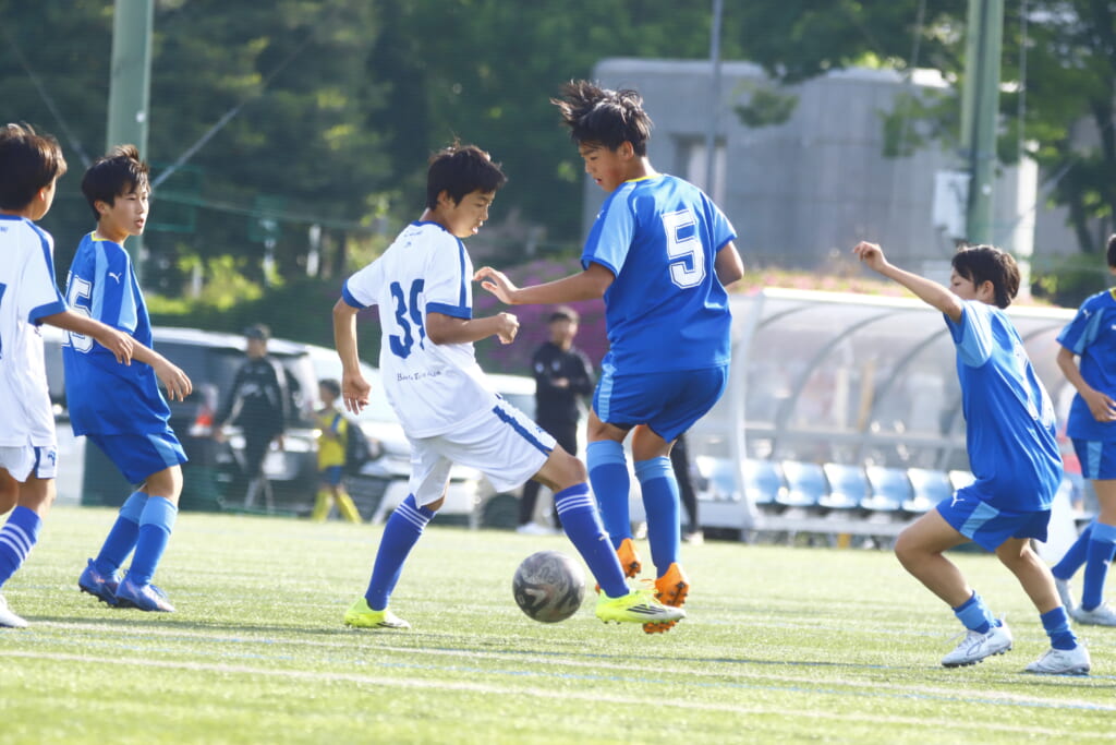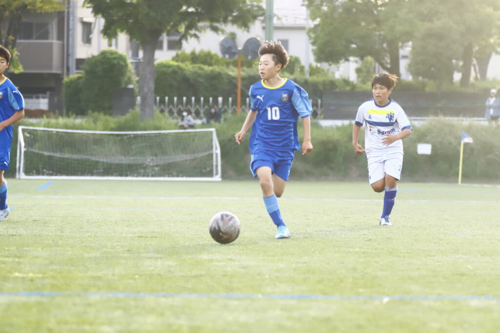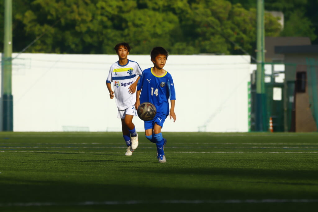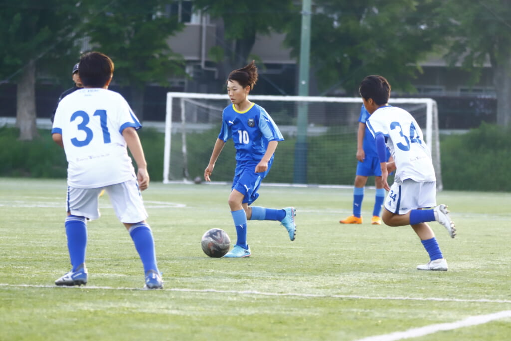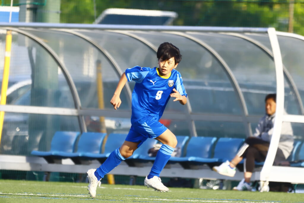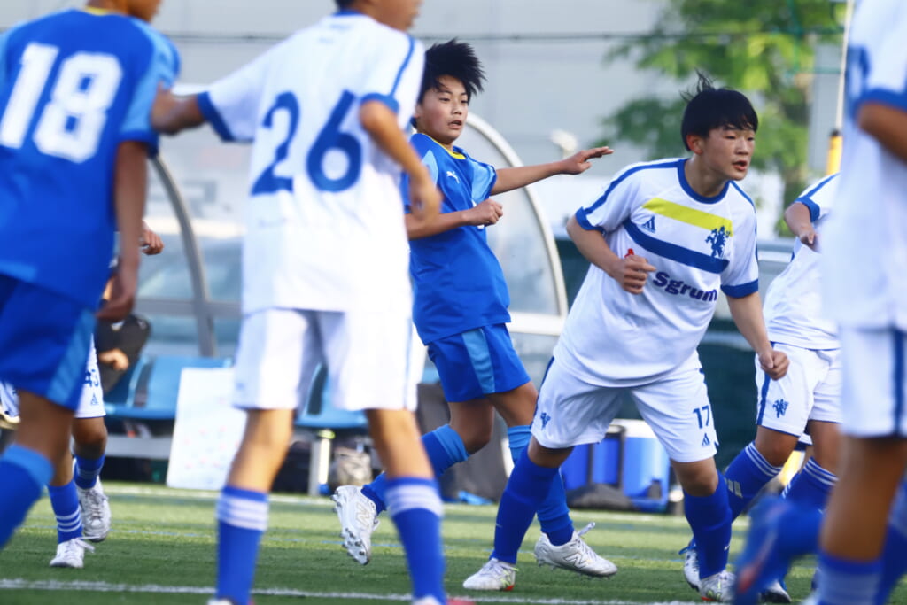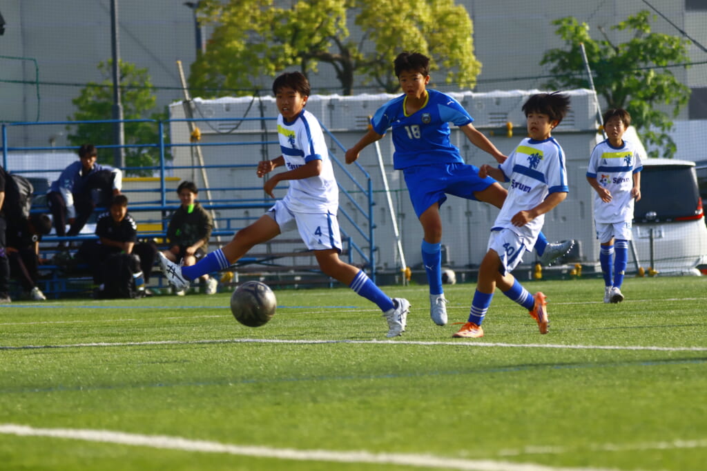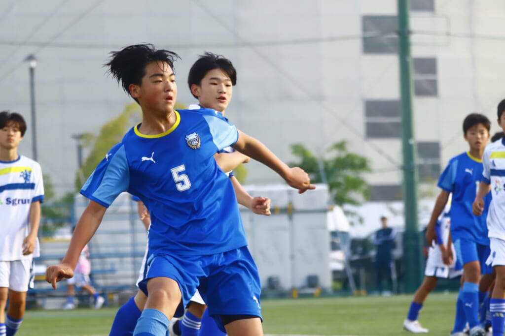 5分には、左サイドでのスローインの流れから鈴木が正面への仕掛け。アスミジュニアユースが対応したところ、さらにボールをつないでいくフロンターレ等々力、