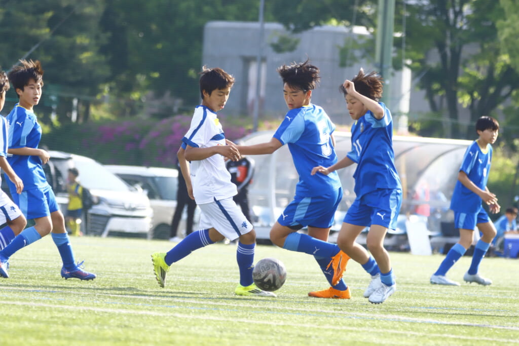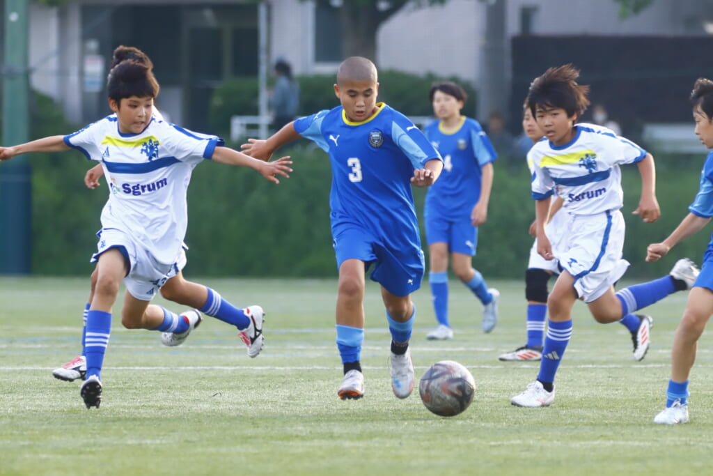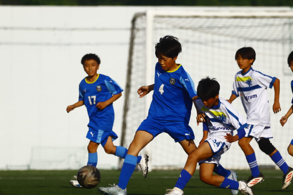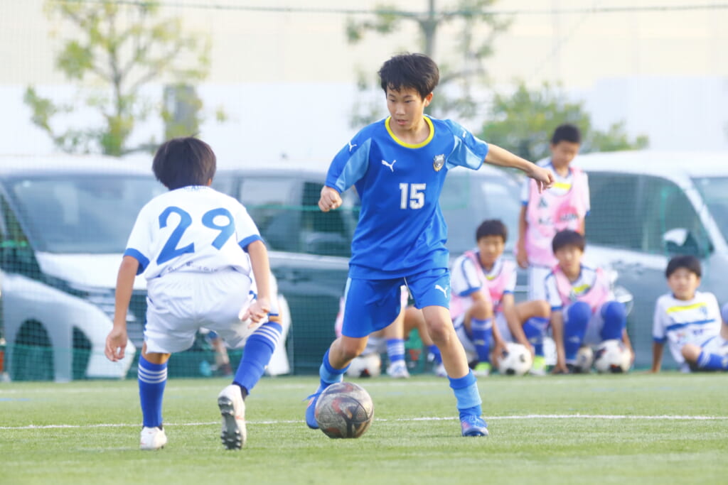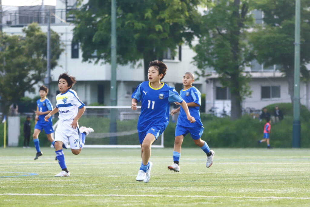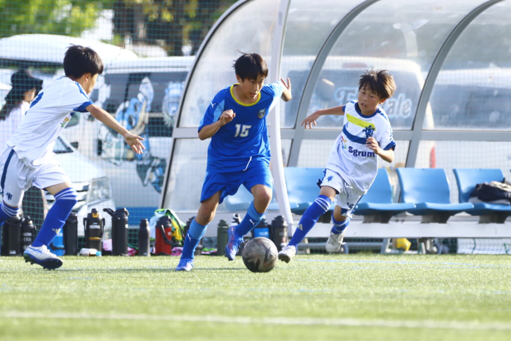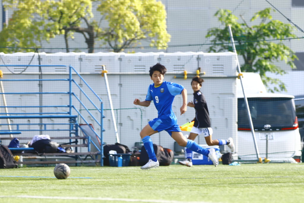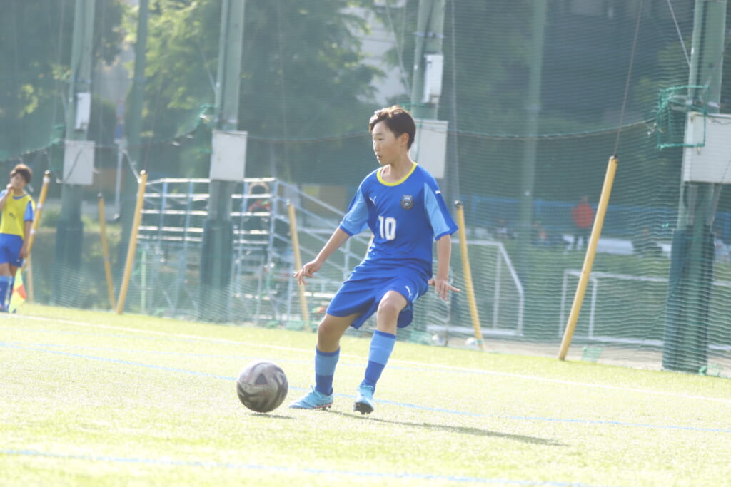 5分には、左サイドでのスローインの流れから鈴木が正面への仕掛け。アスミジュニアユースが対応したところ、さらにボールをつないでいくフロンターレ等々力、