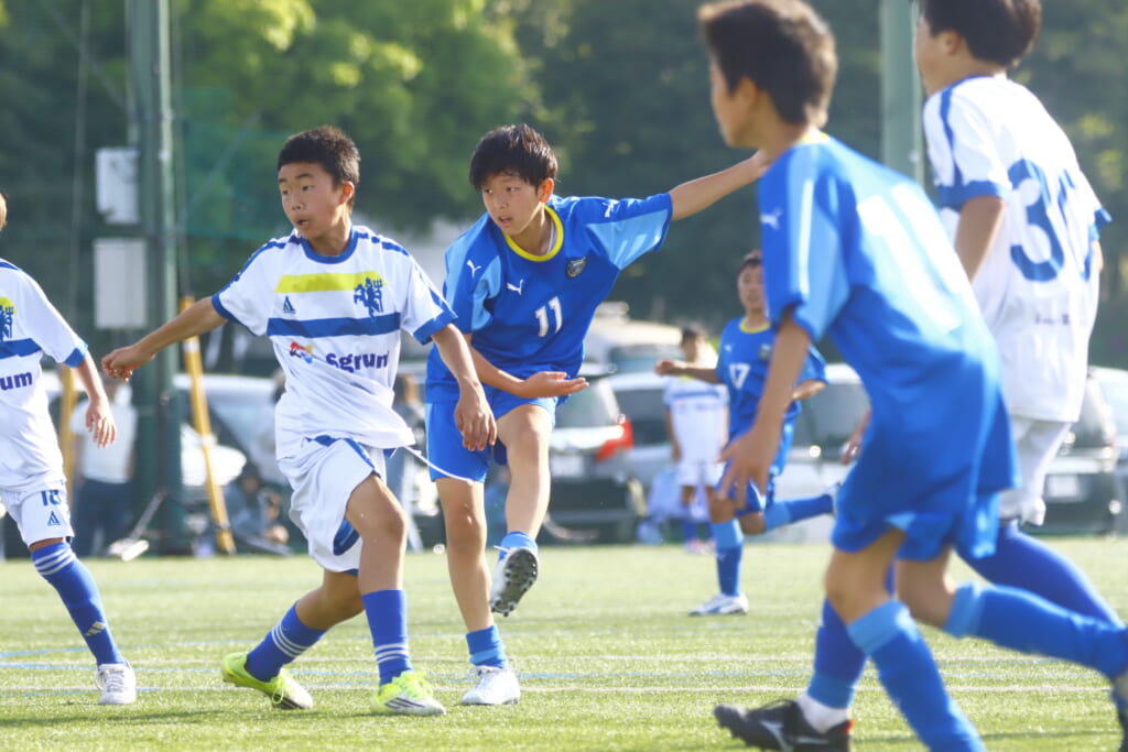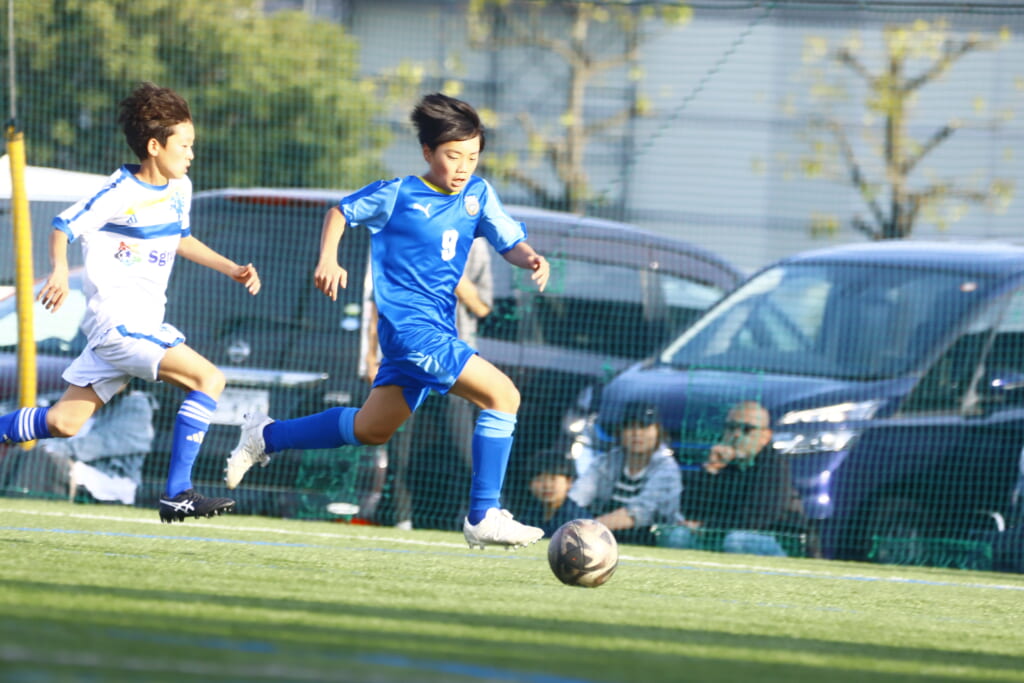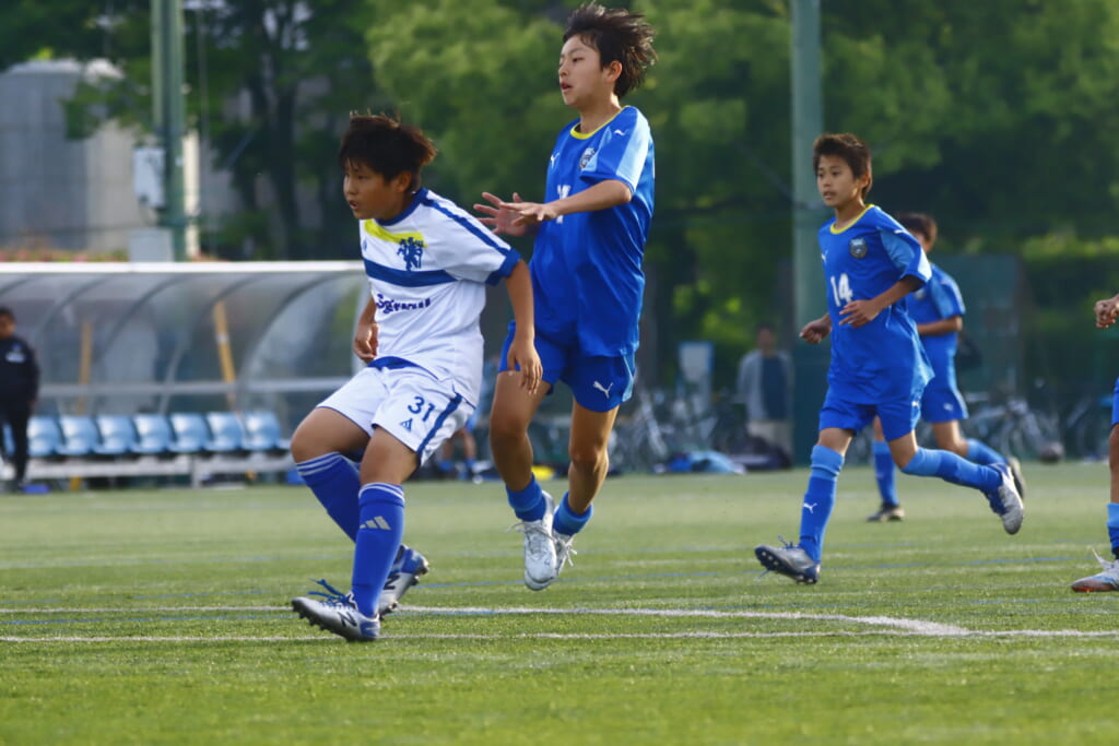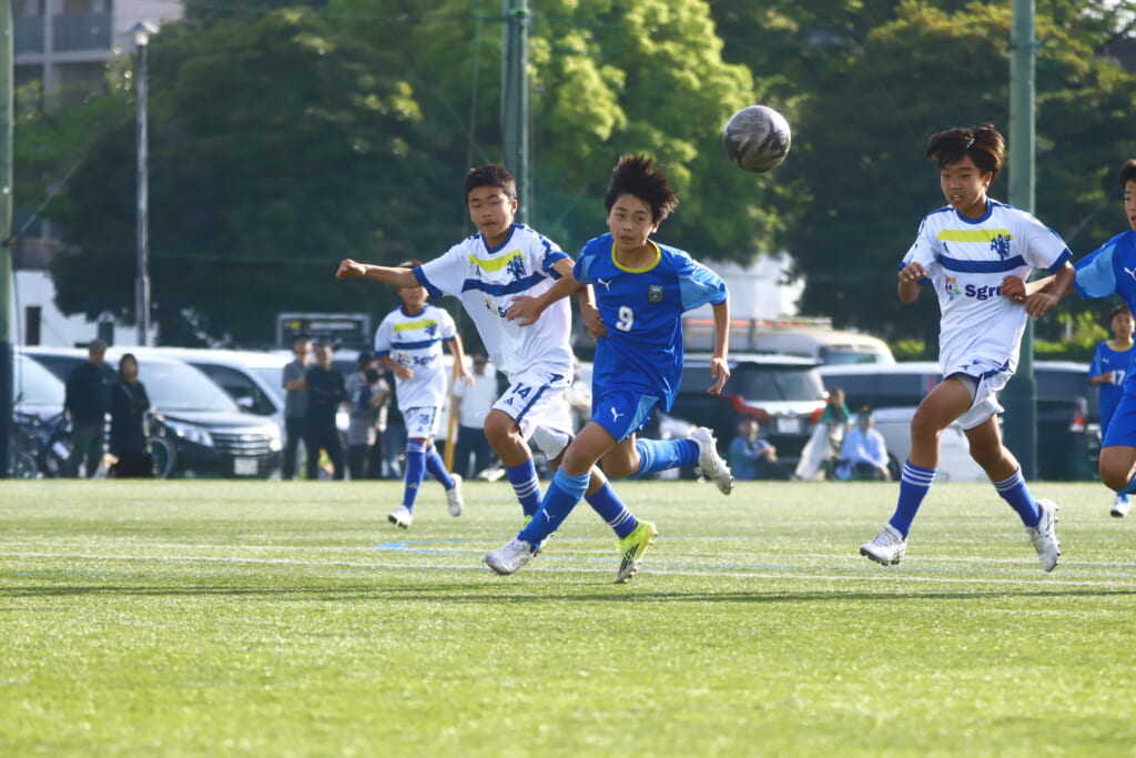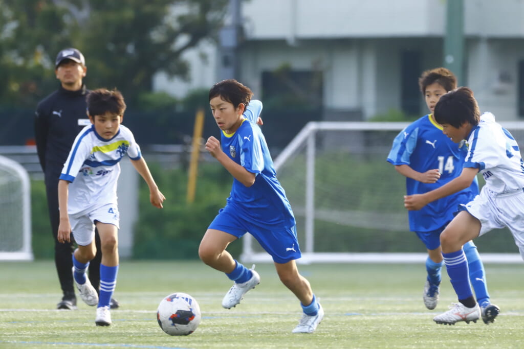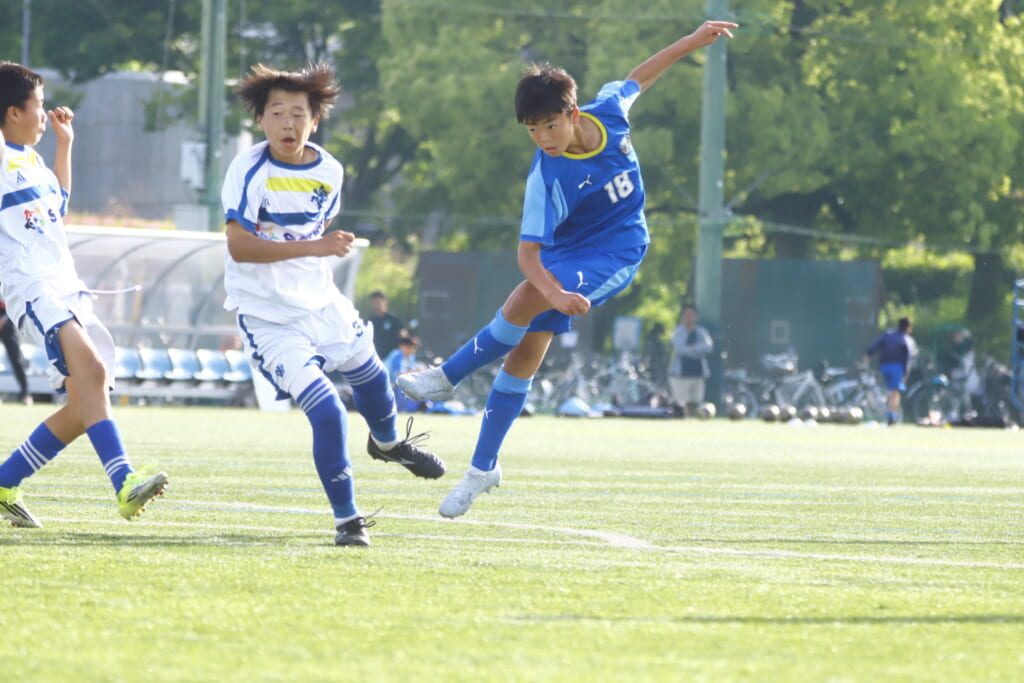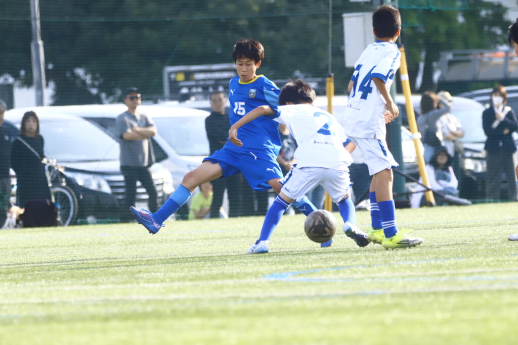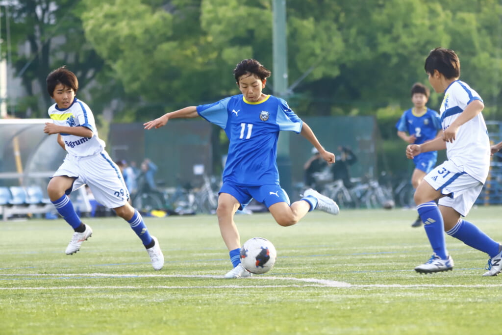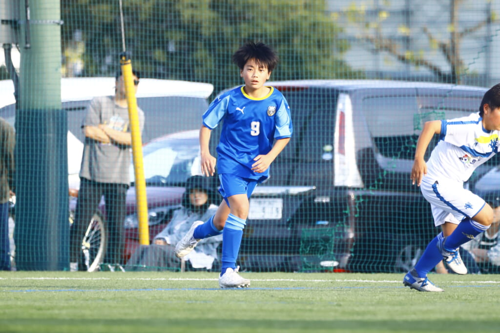 5分には、左サイドでのスローインの流れから鈴木が正面への仕掛け。アスミジュニアユースが対応したところ、さらにボールをつないでいくフロンターレ等々力、