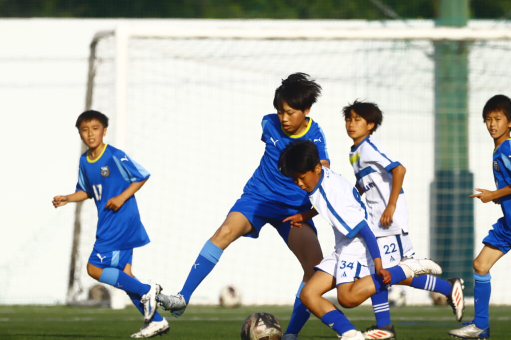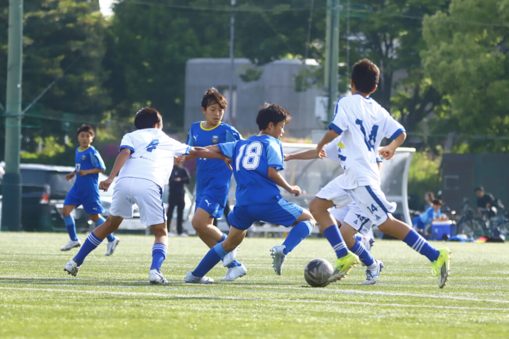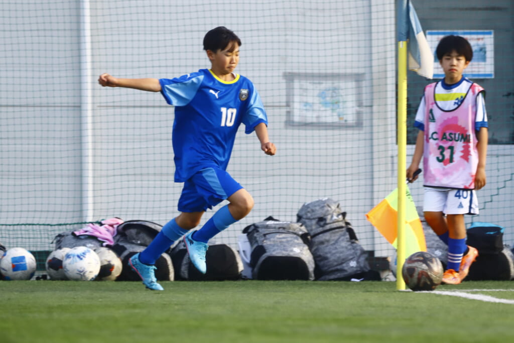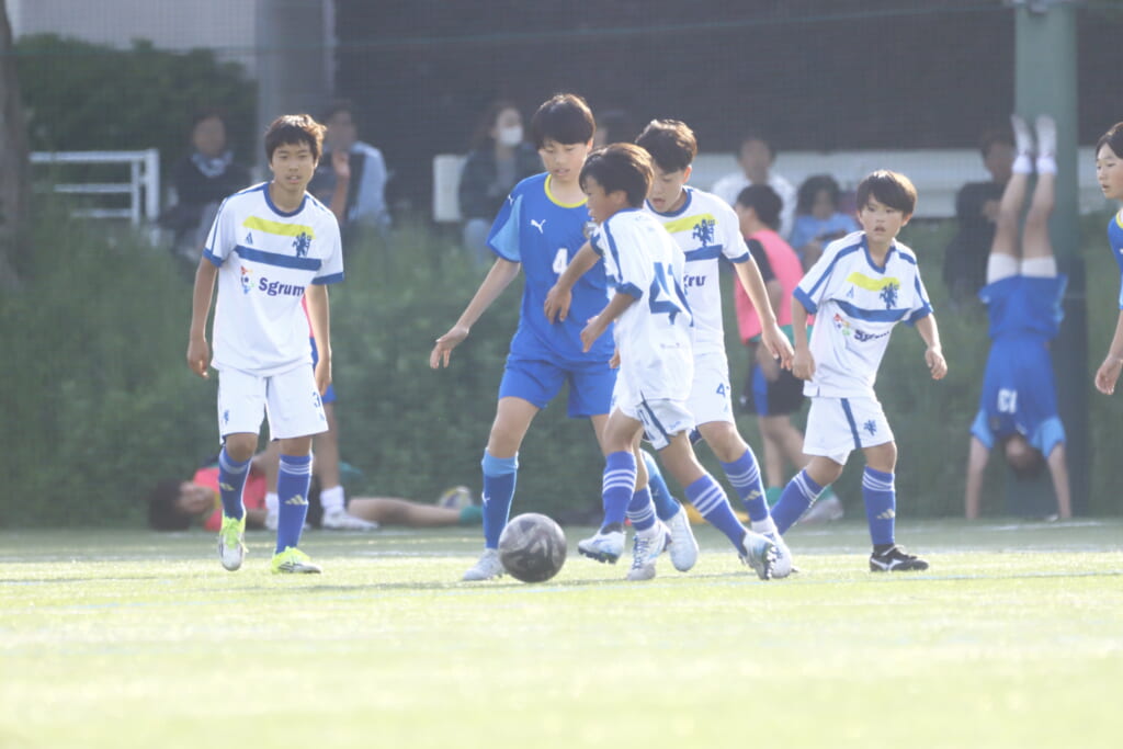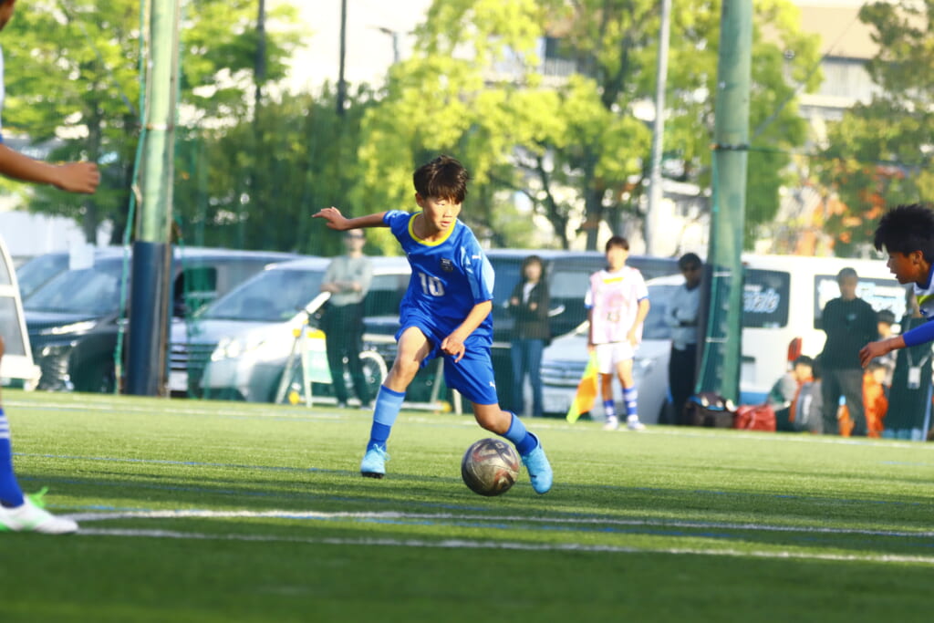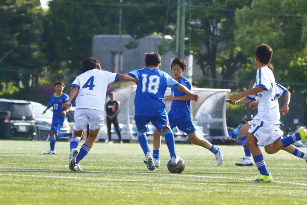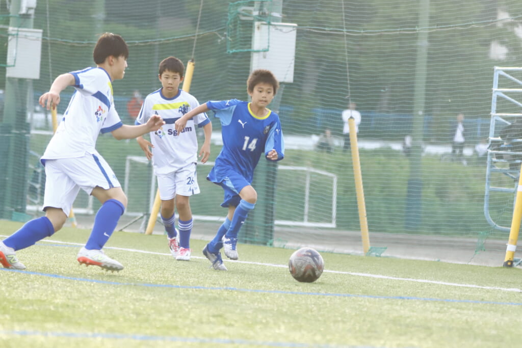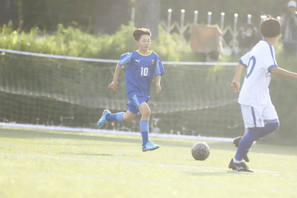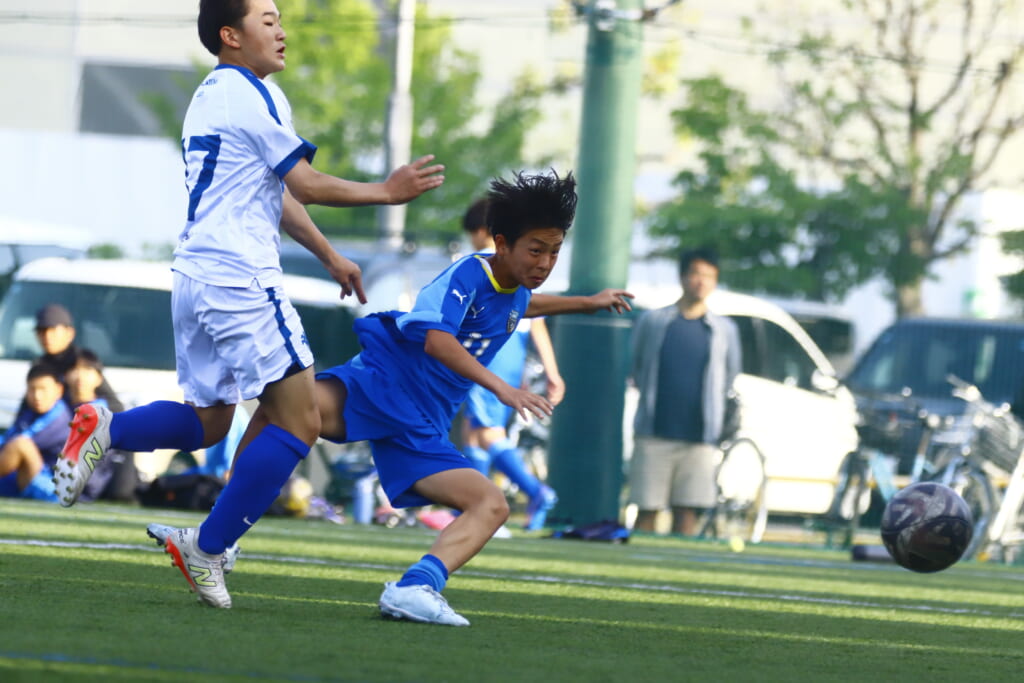 5分には、左サイドでのスローインの流れから鈴木が正面への仕掛け。アスミジュニアユースが対応したところ、さらにボールをつないでいくフロンターレ等々力、