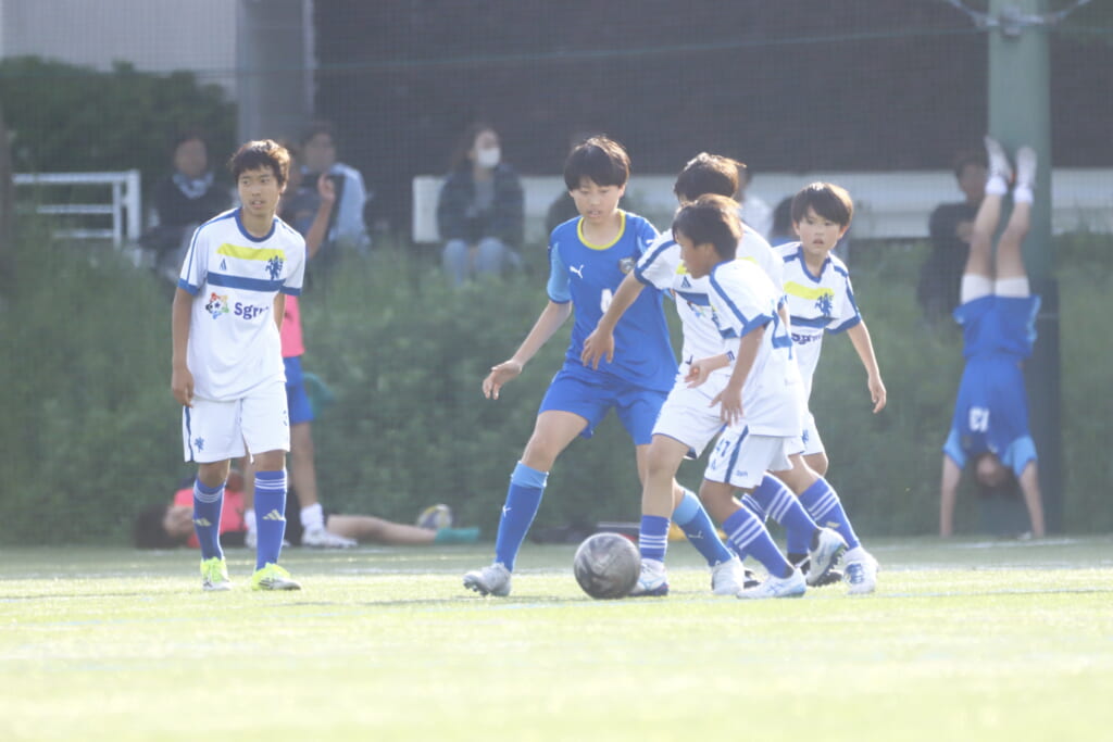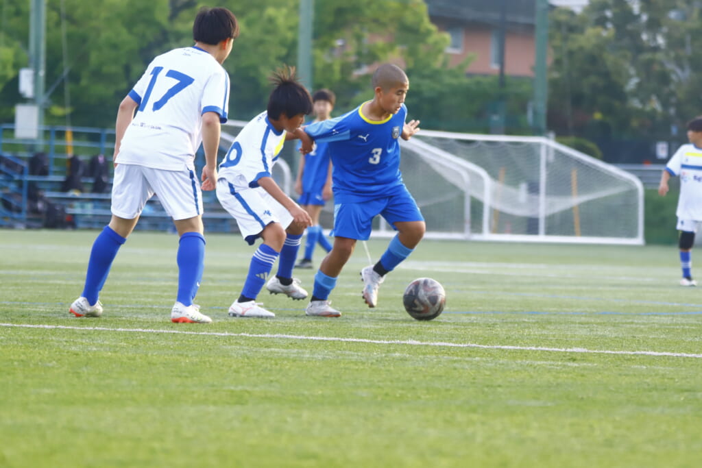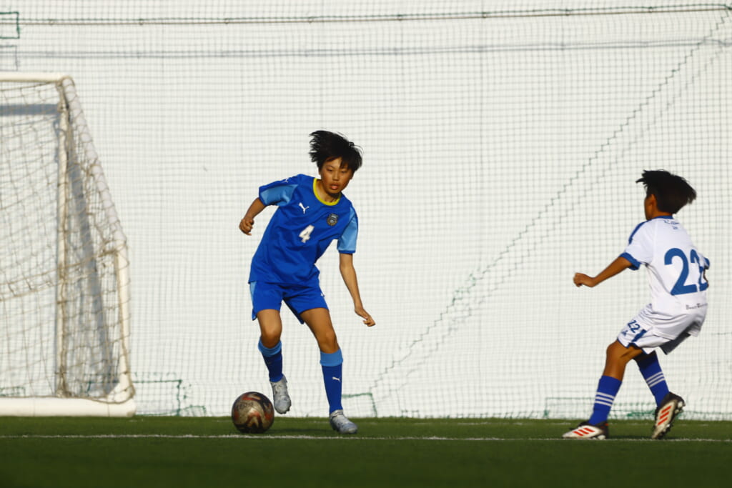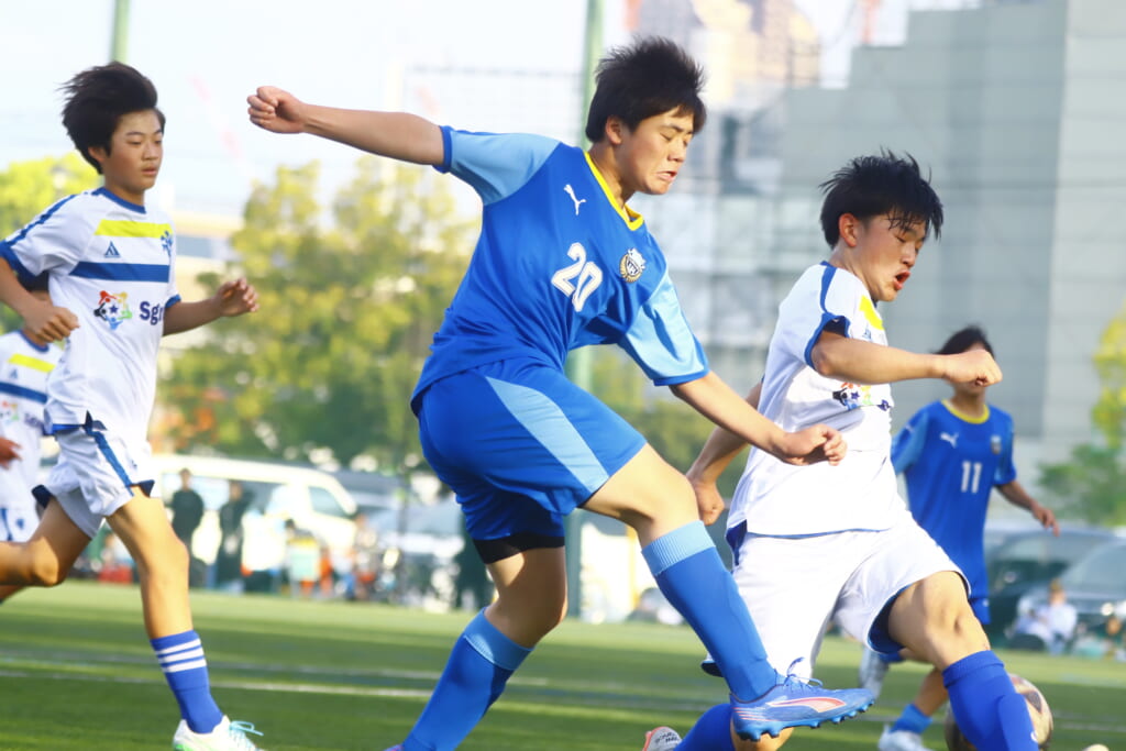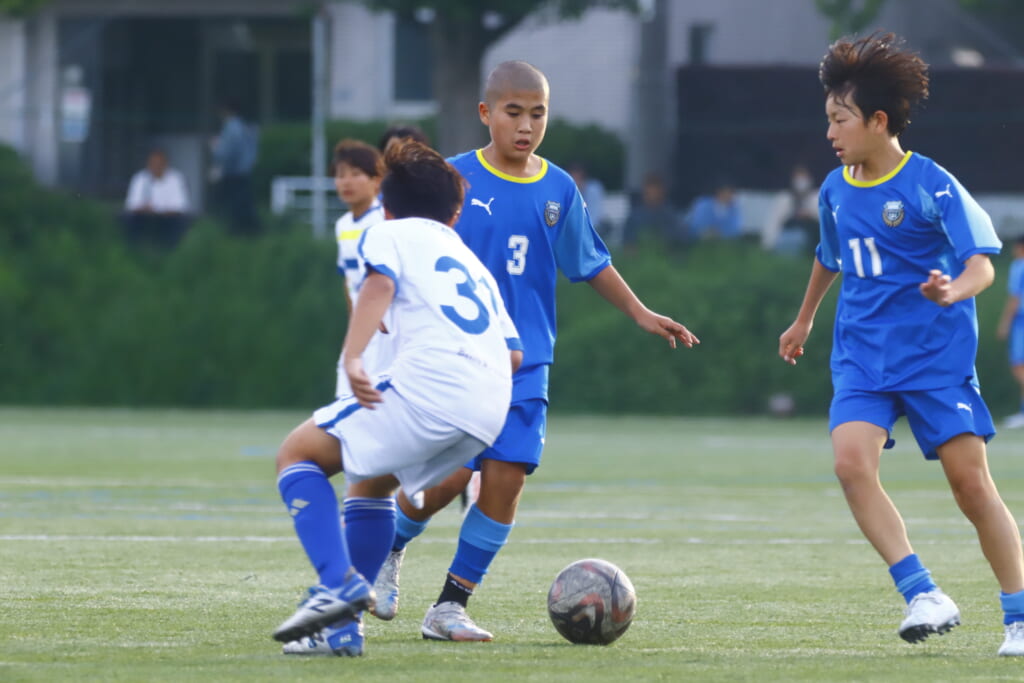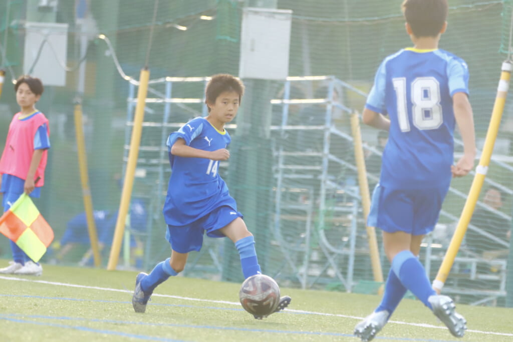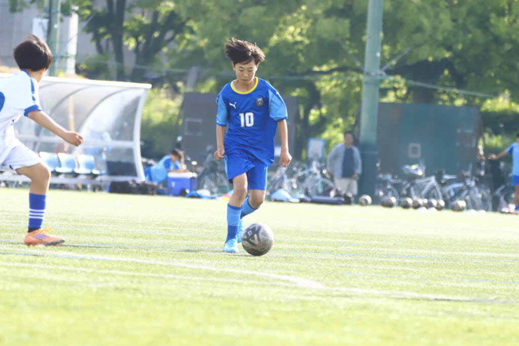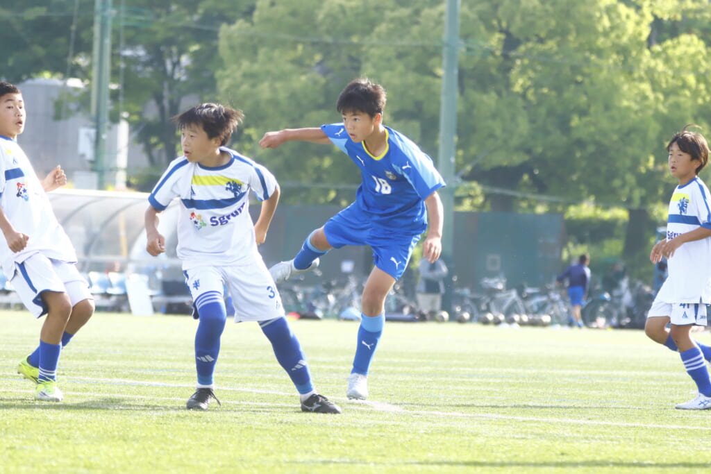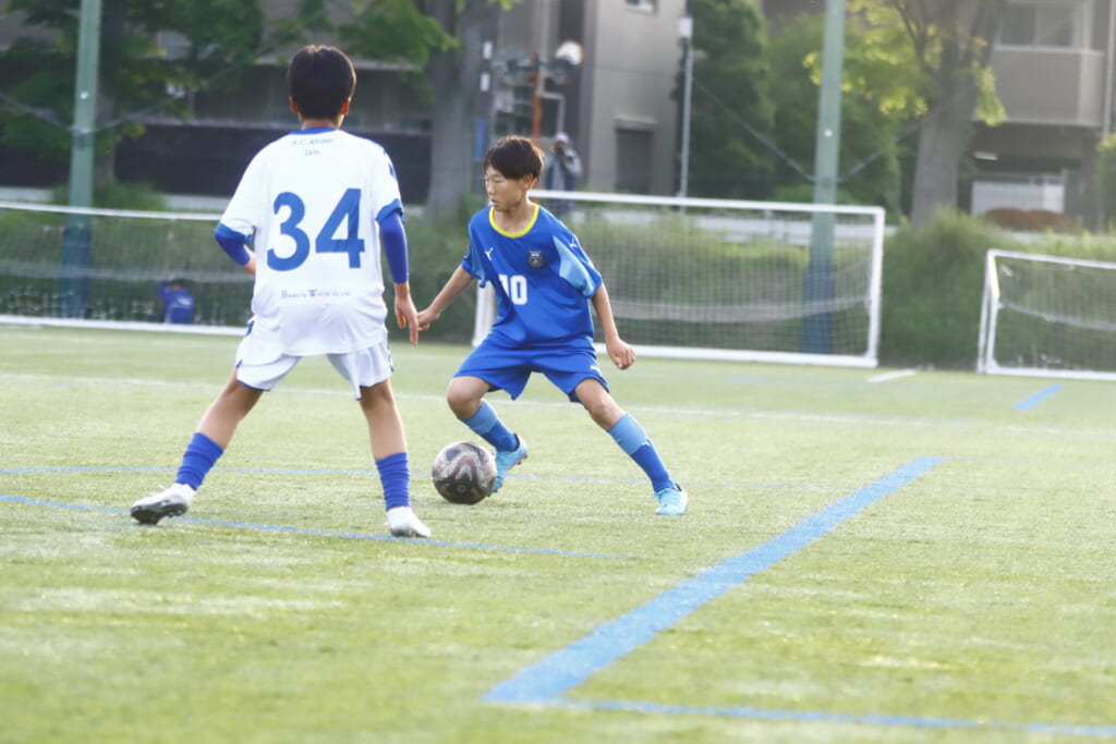 5分には、左サイドでのスローインの流れから鈴木が正面への仕掛け。アスミジュニアユースが対応したところ、さらにボールをつないでいくフロンターレ等々力、