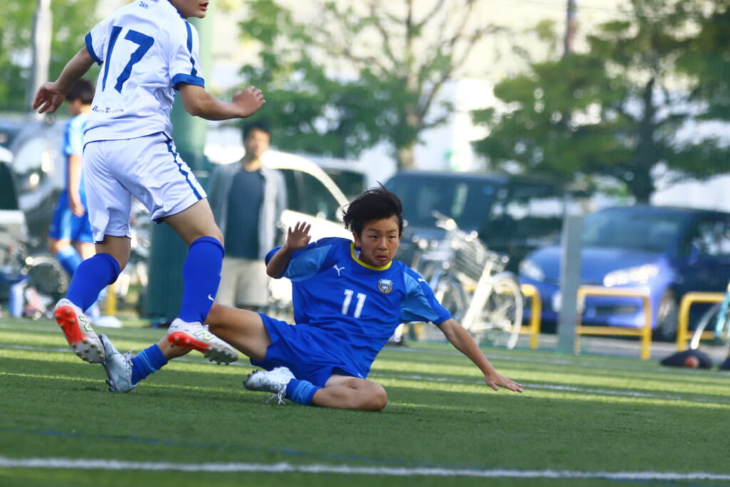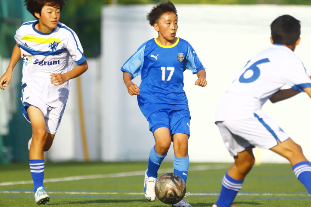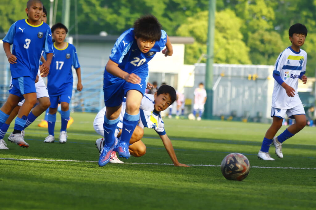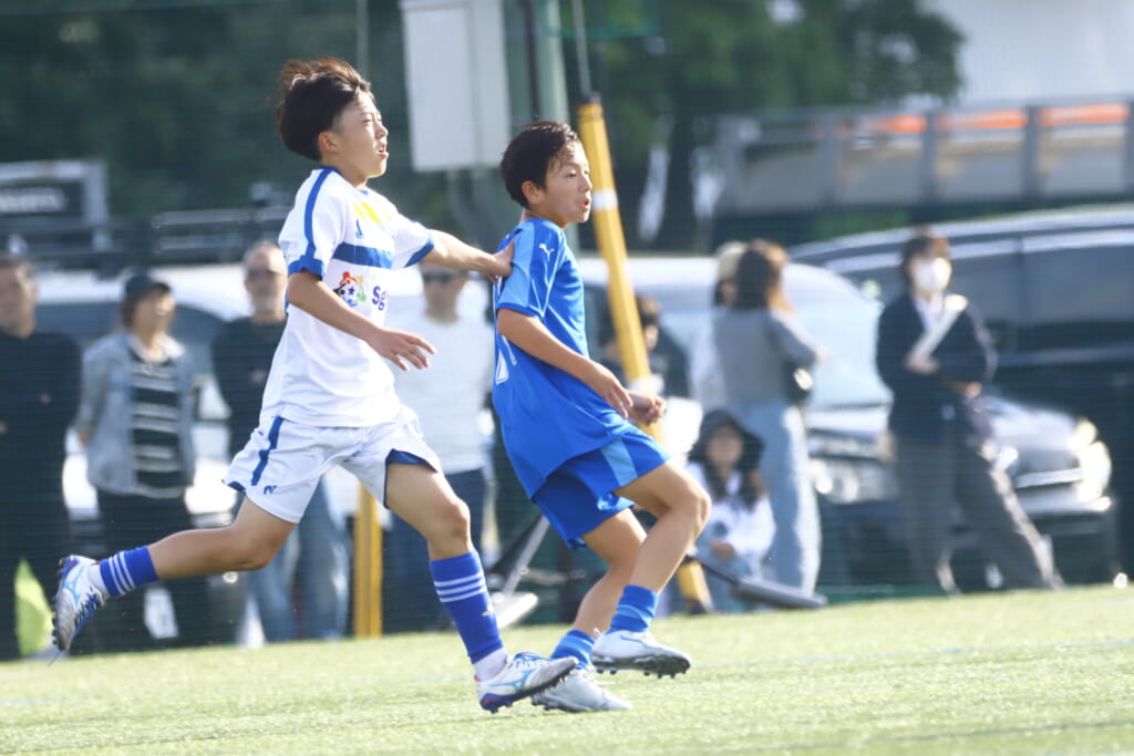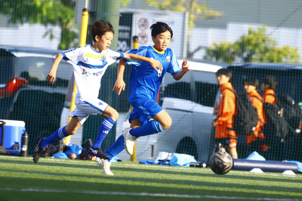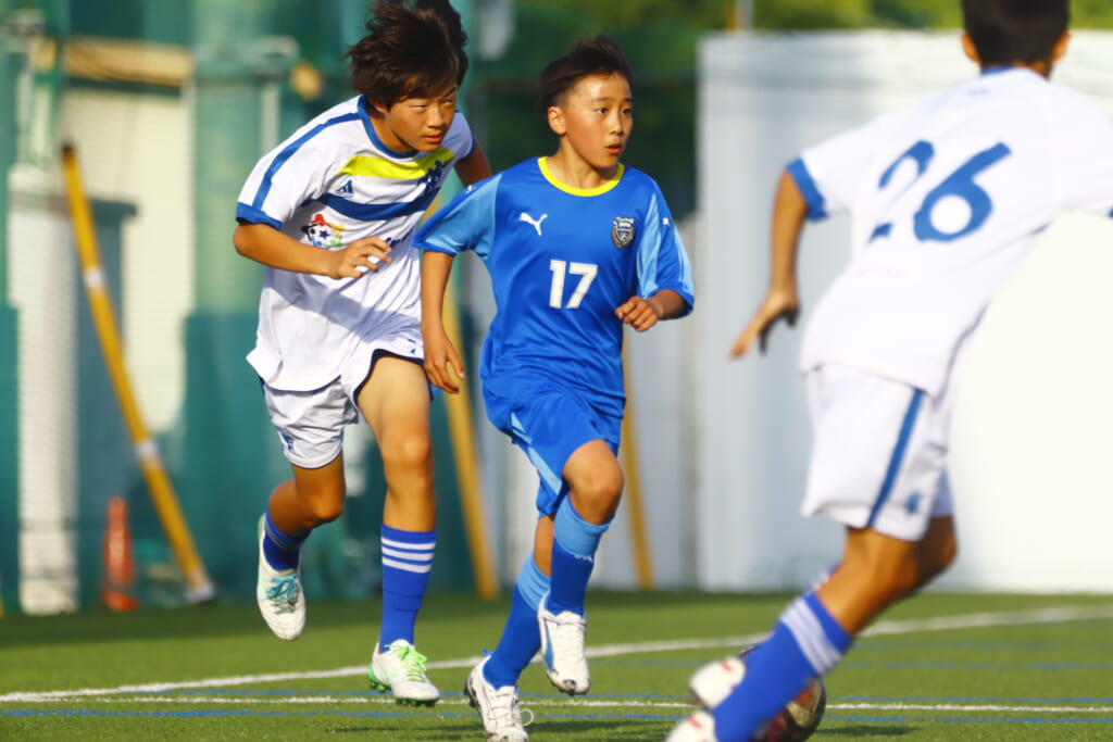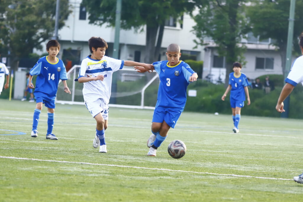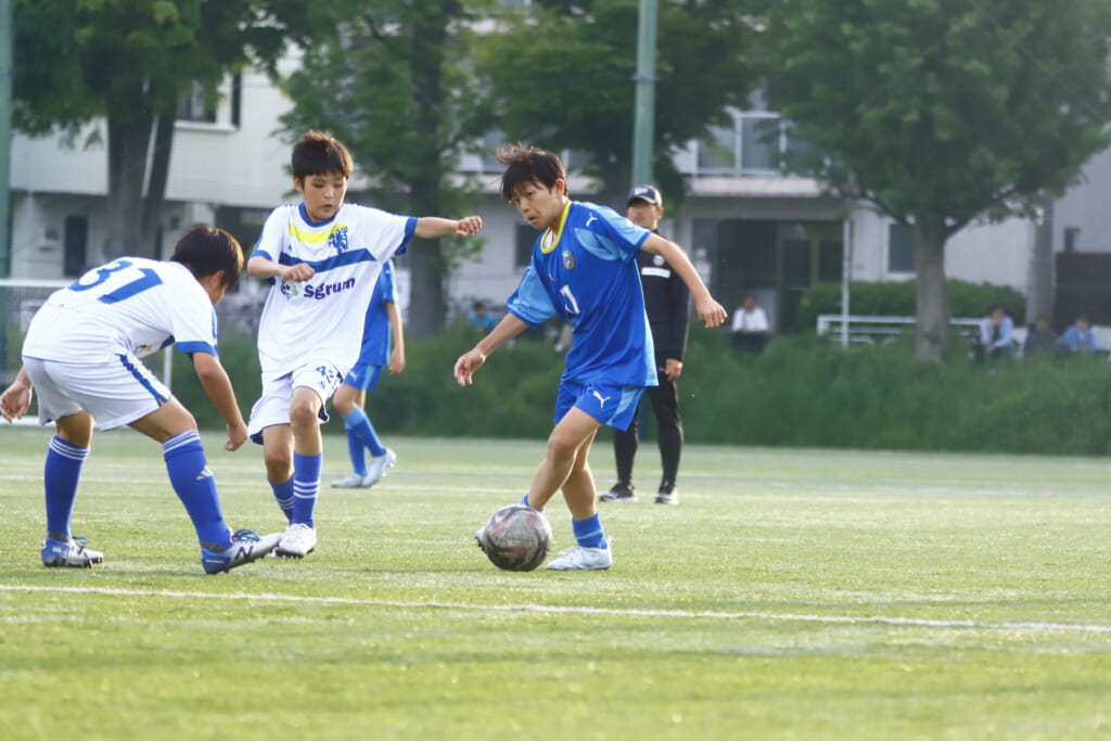 5分には、左サイドでのスローインの流れから鈴木が正面への仕掛け。アスミジュニアユースが対応したところ、さらにボールをつないでいくフロンターレ等々力、