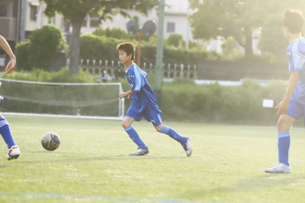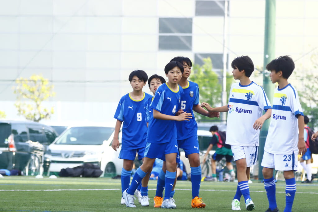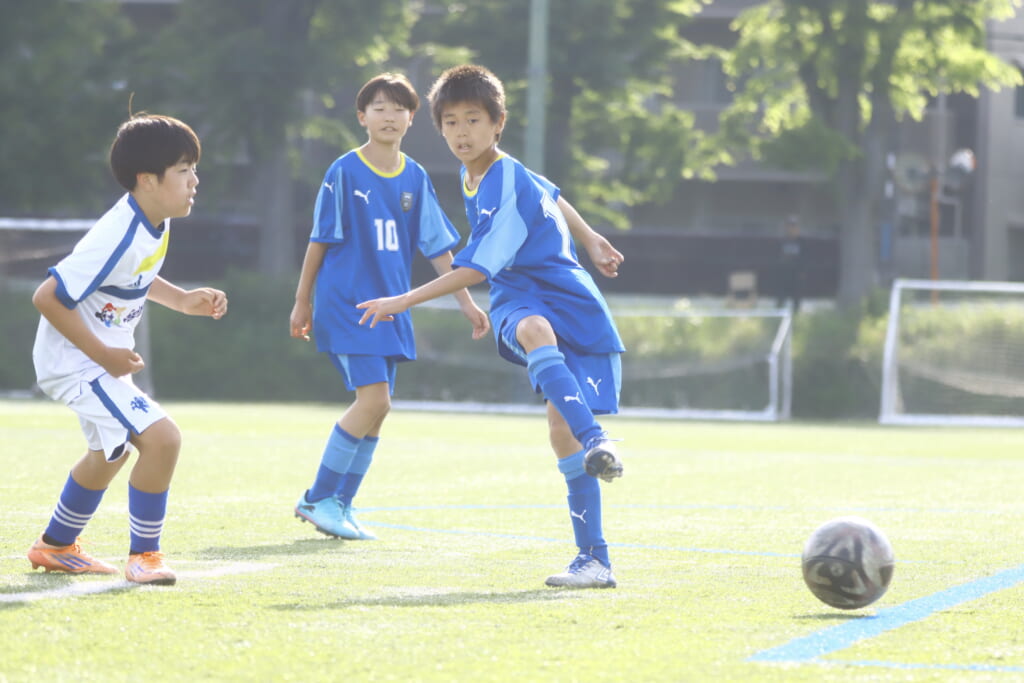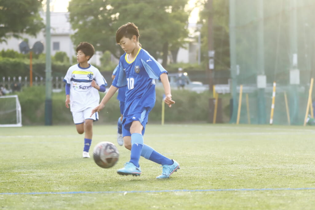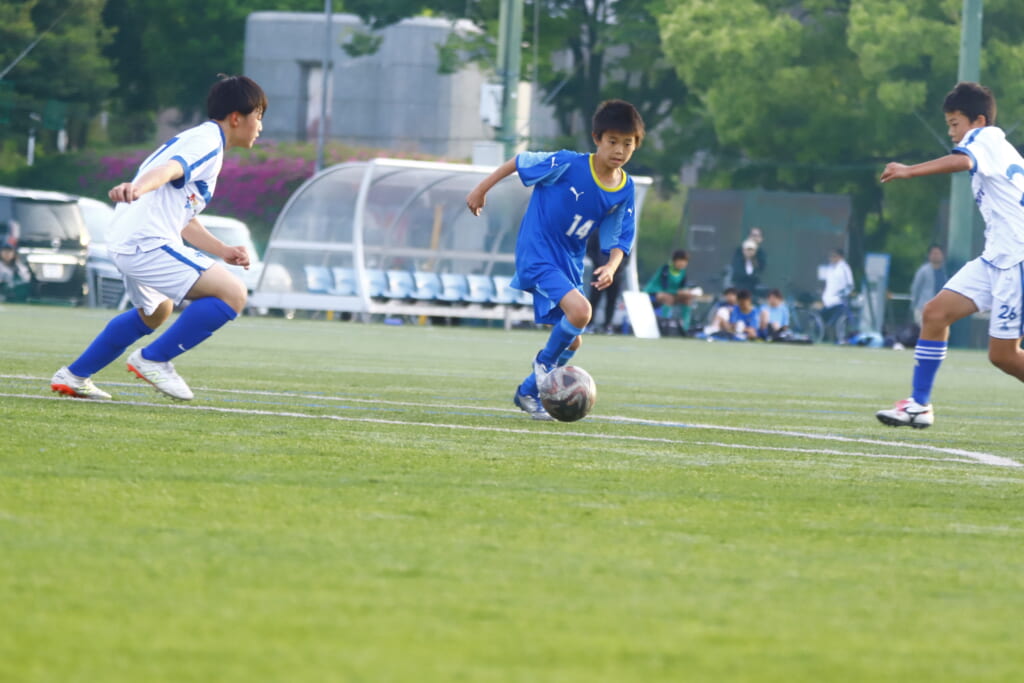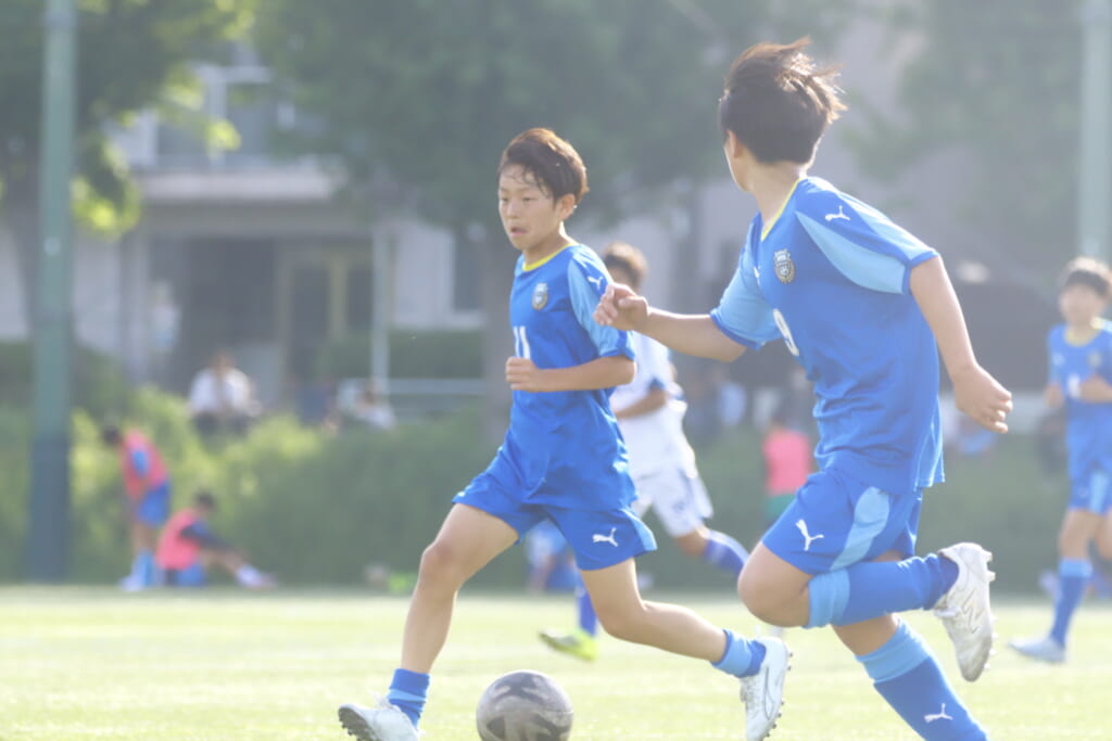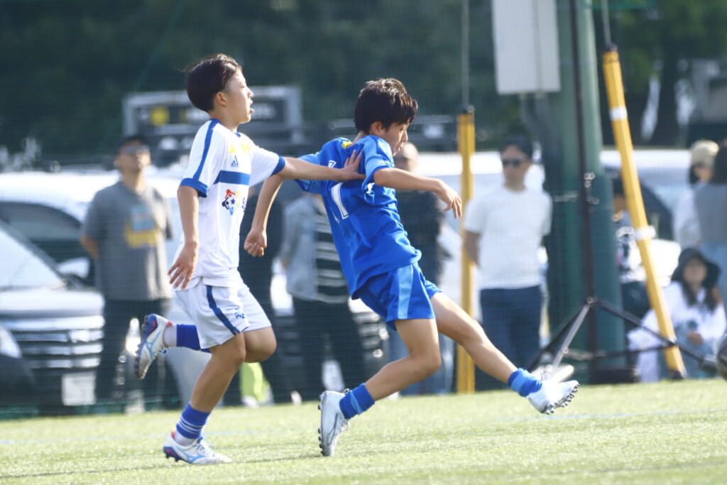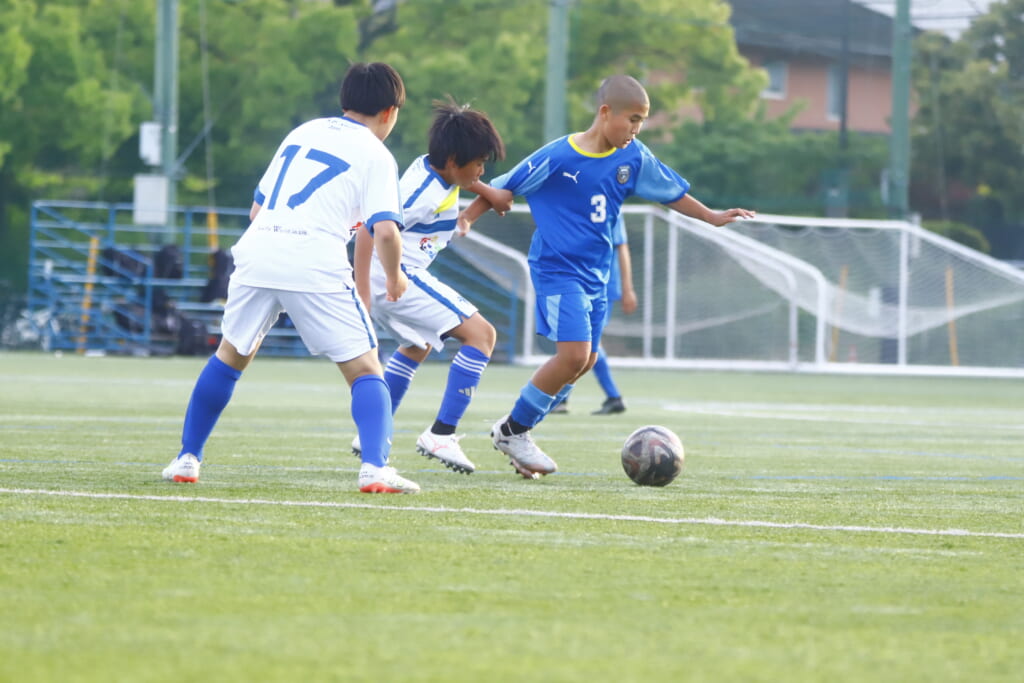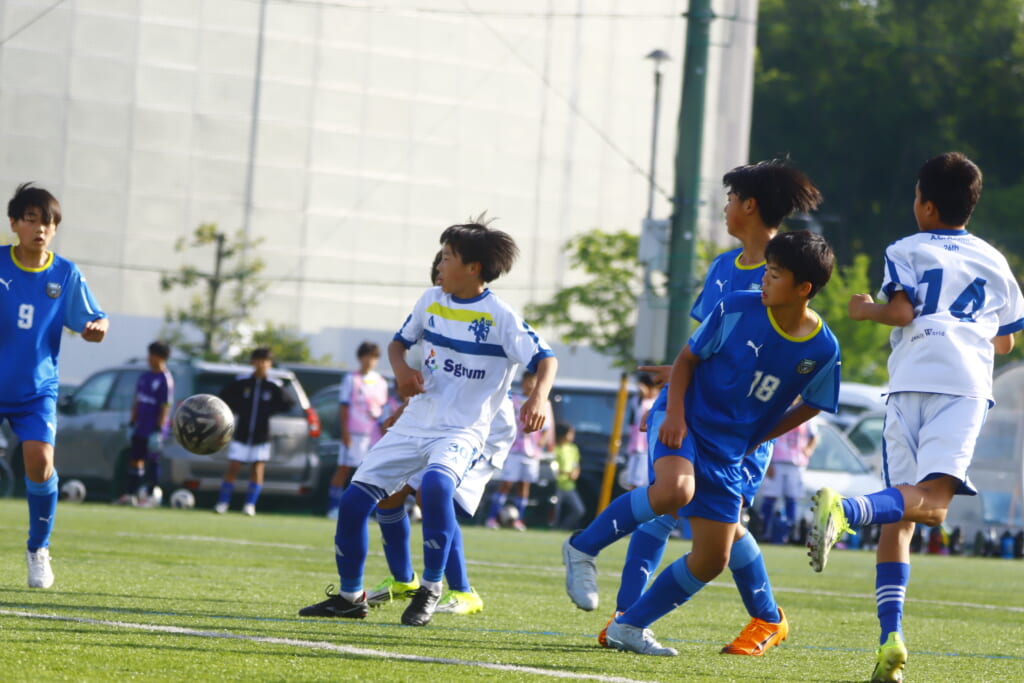 5分には、左サイドでのスローインの流れから鈴木が正面への仕掛け。アスミジュニアユースが対応したところ、さらにボールをつないでいくフロンターレ等々力、