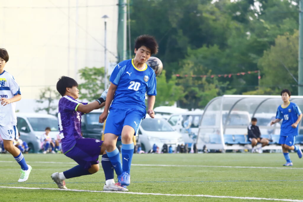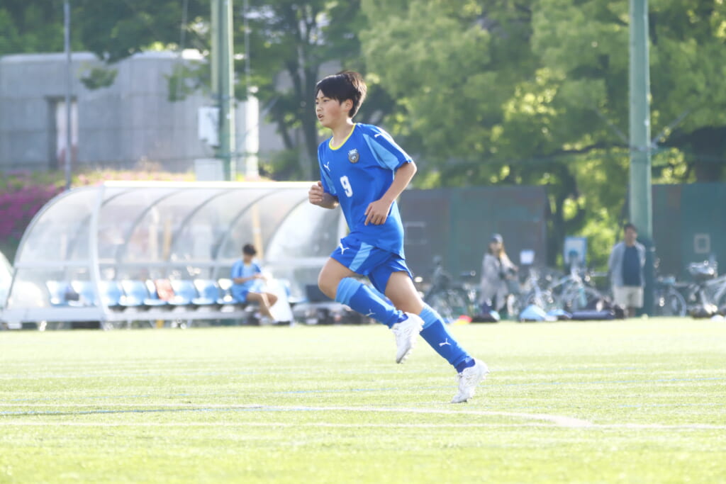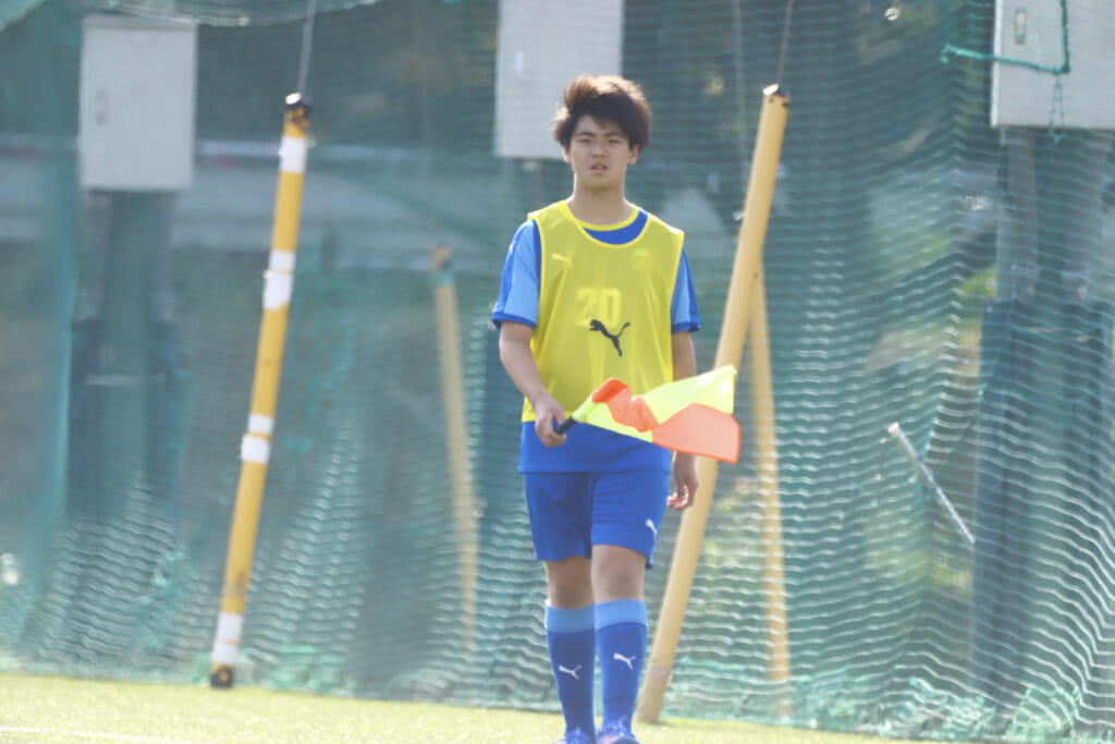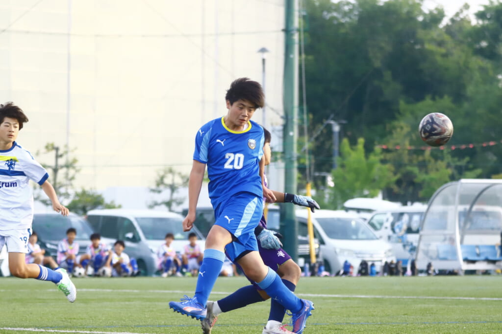 23分には、森瀬が高い位置でプレス。右サイド、田上へ預けるとエリア右で受け直した森瀬はシュート。しかしアスミジュニアユースはブロック。フロンターレ等々力の右コーナーキックに。