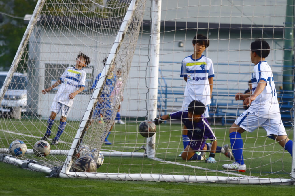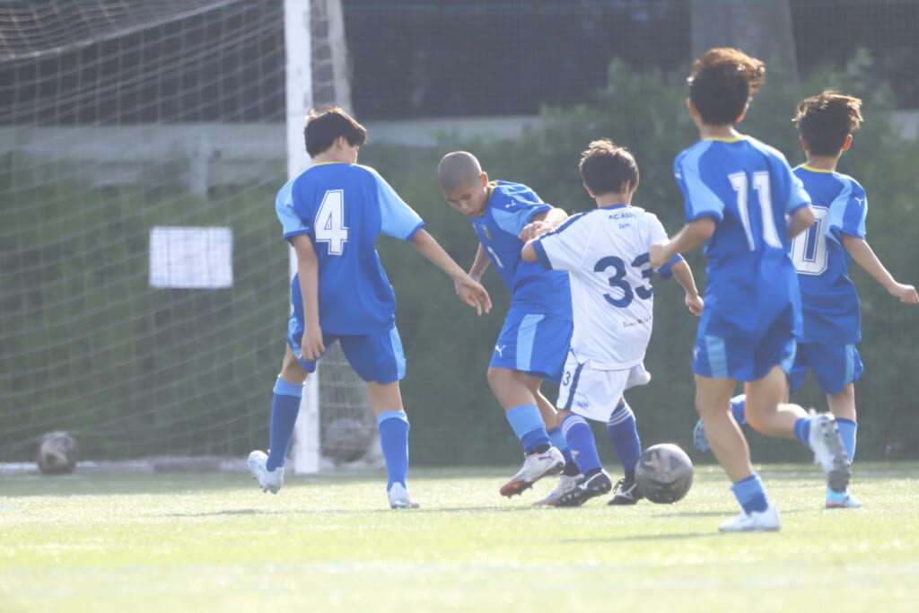 シュートはアスミジュニアユースがブロック。