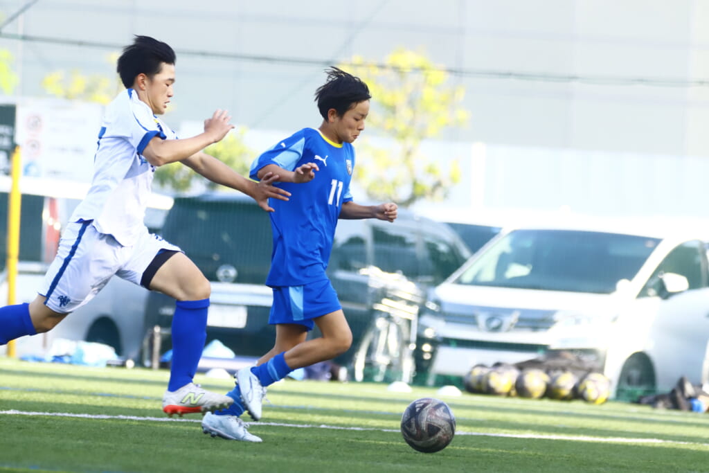 立ち上がりにはフロンターレ等々力、三浦夢斗のフィードを鈴木がおさめ、そこから中央の角市へ。角市から岡西へつながり、岡西から左サイド、久保田へ、