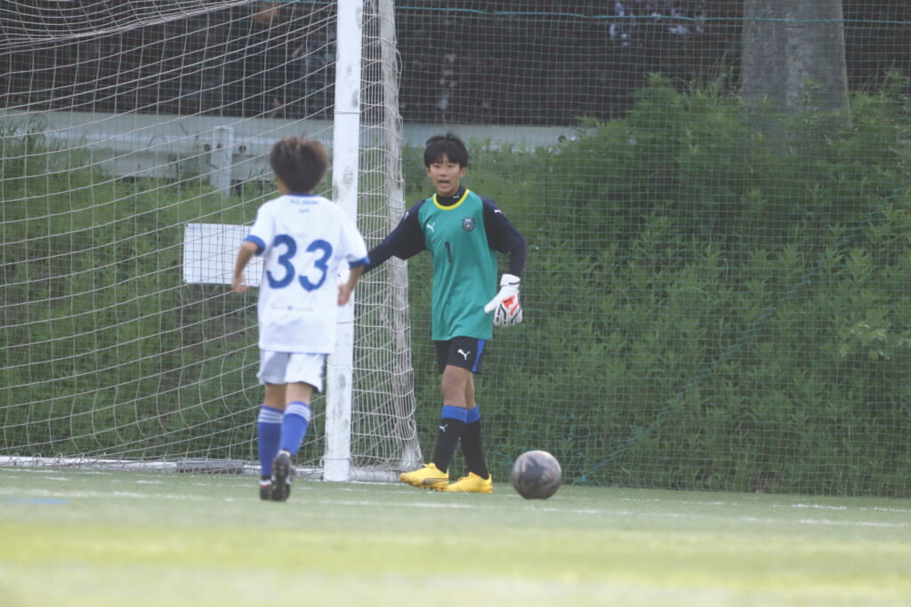 5分には、中央で横矢がカット。そのパスに森瀬がエリア内へ。しかし、アスミジュニアユース、4がカバー。最後はGK12がセーブ。