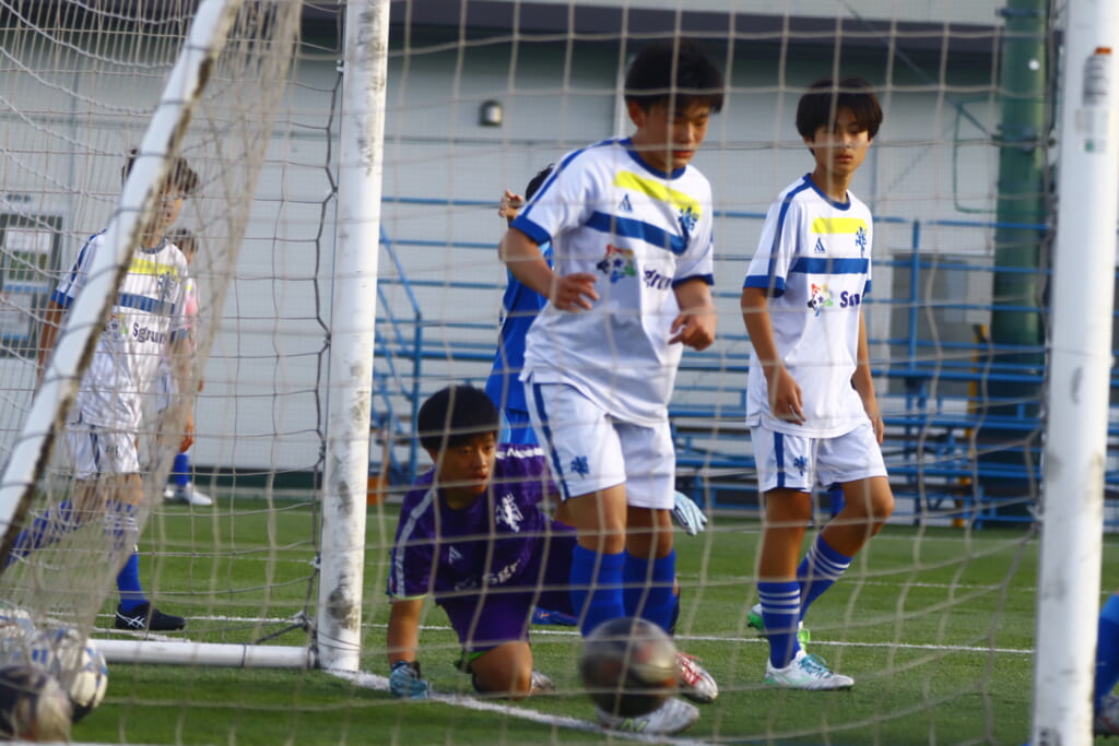 ここはアスミジュニアユースもしっかり守り、ゴールキックに。