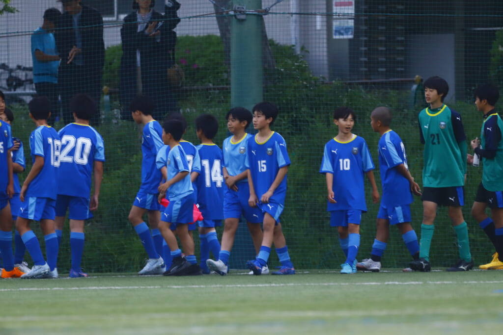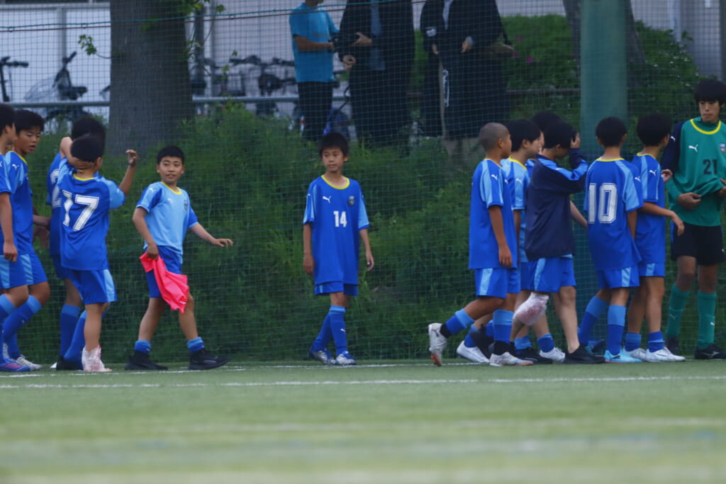 1本目、フロンターレ等々力のメンバーは、GKは2年生の21山田龍青、最終ラインは右から17園田丈琉、4三浦夢斗、5佐野龍与志、3横矢雄大、ボランチは11角市陽哉、10岡西春樹、右MF15田上結翔、左MF14清水創太、前線には9久保田創大、18鈴木健人。